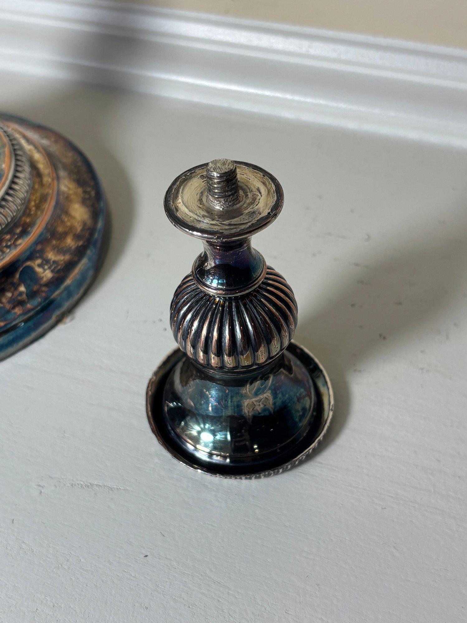 Notes: Large candelabra has damage, top piece does not stay screwed in