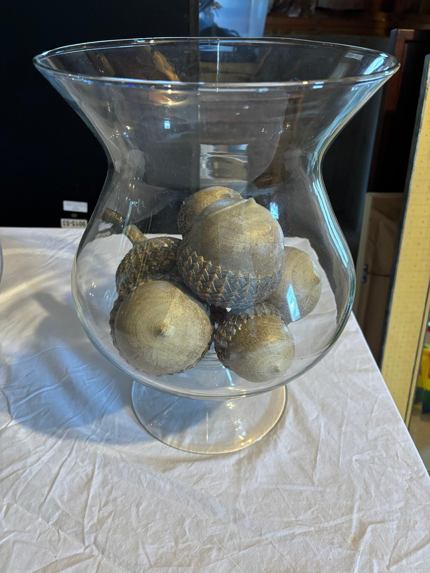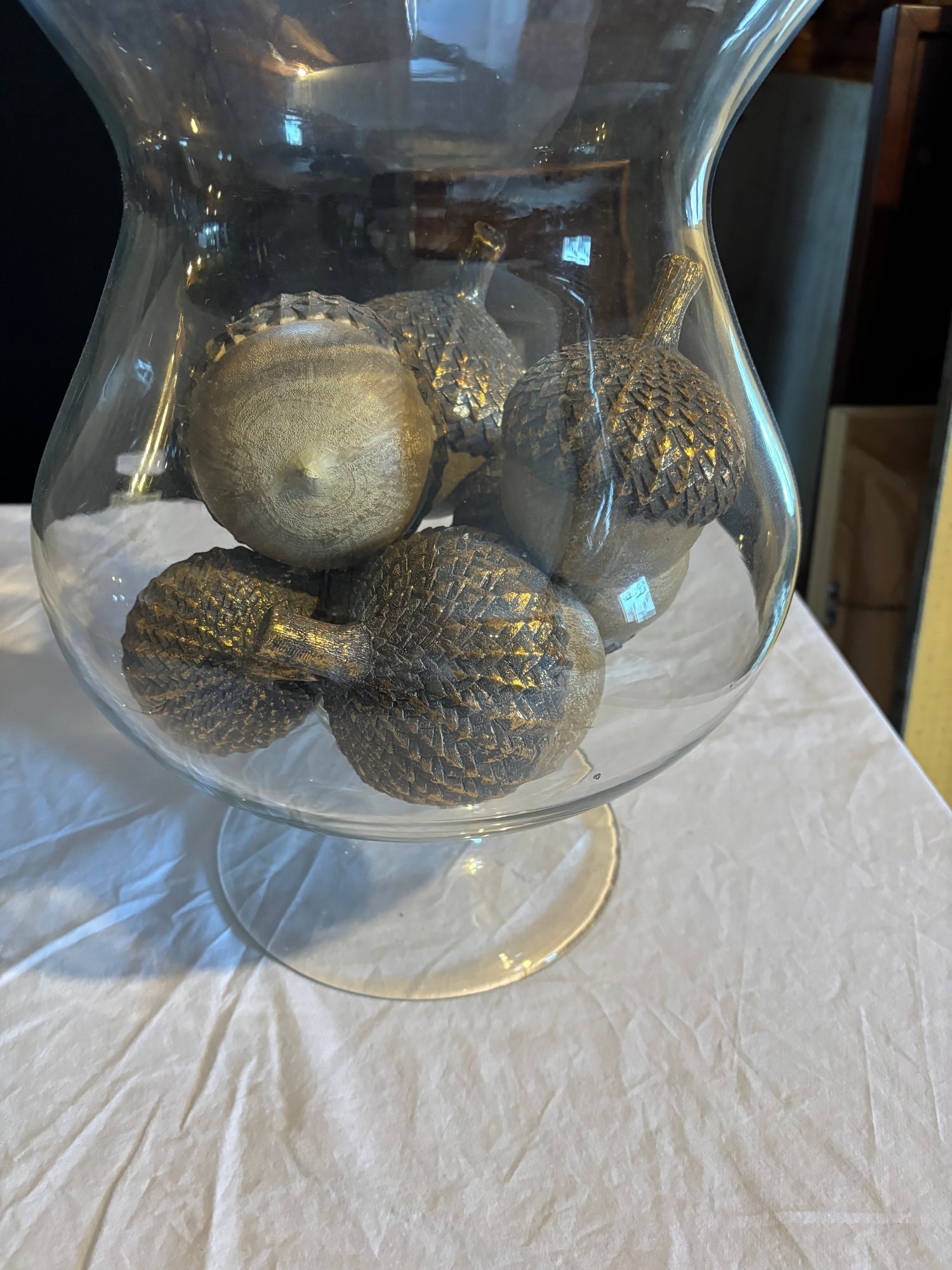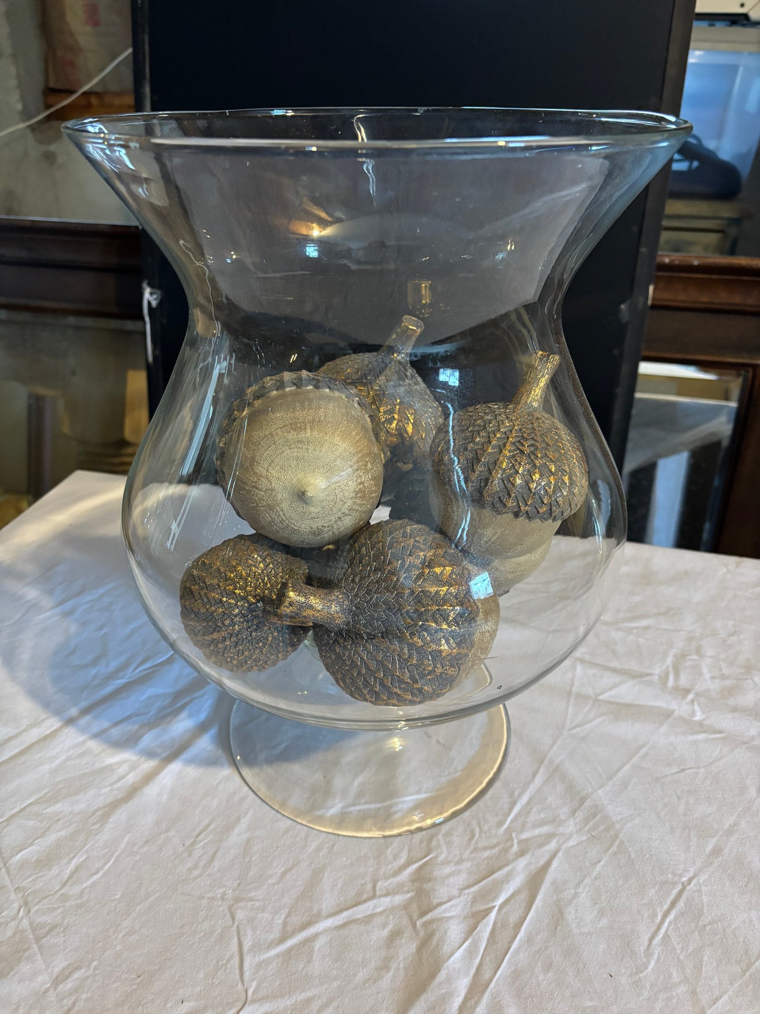 15 x 10 glass vase with 7 decorative acorn ornaments