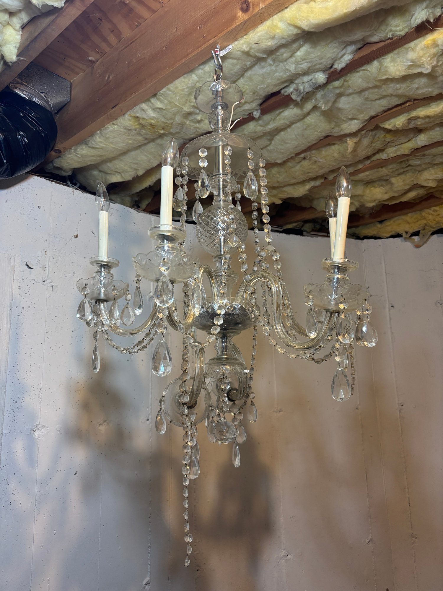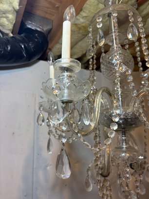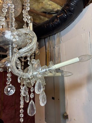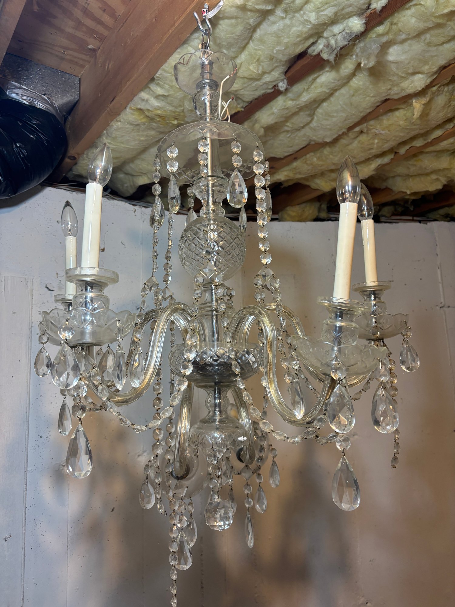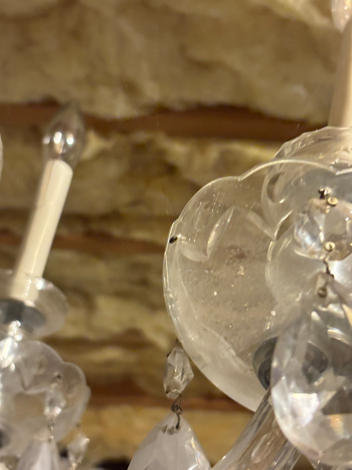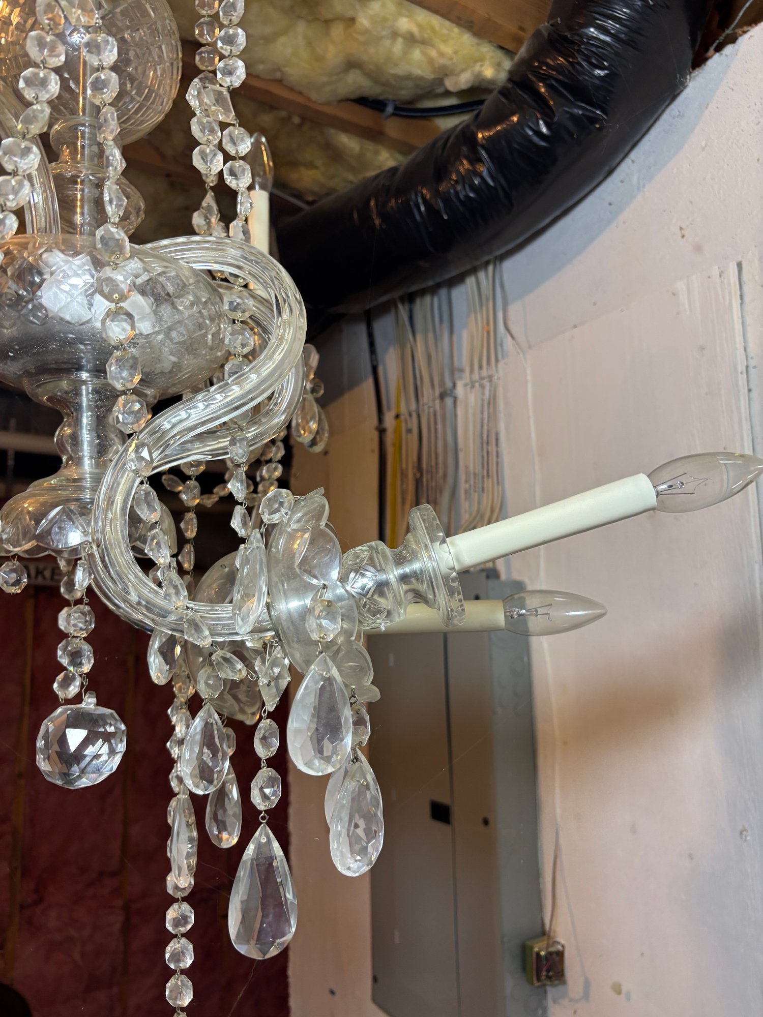 Notes: Two arms are damaged and appear to only be connected by wiring. Also missing many hanging crystal strands. See photos for other damage