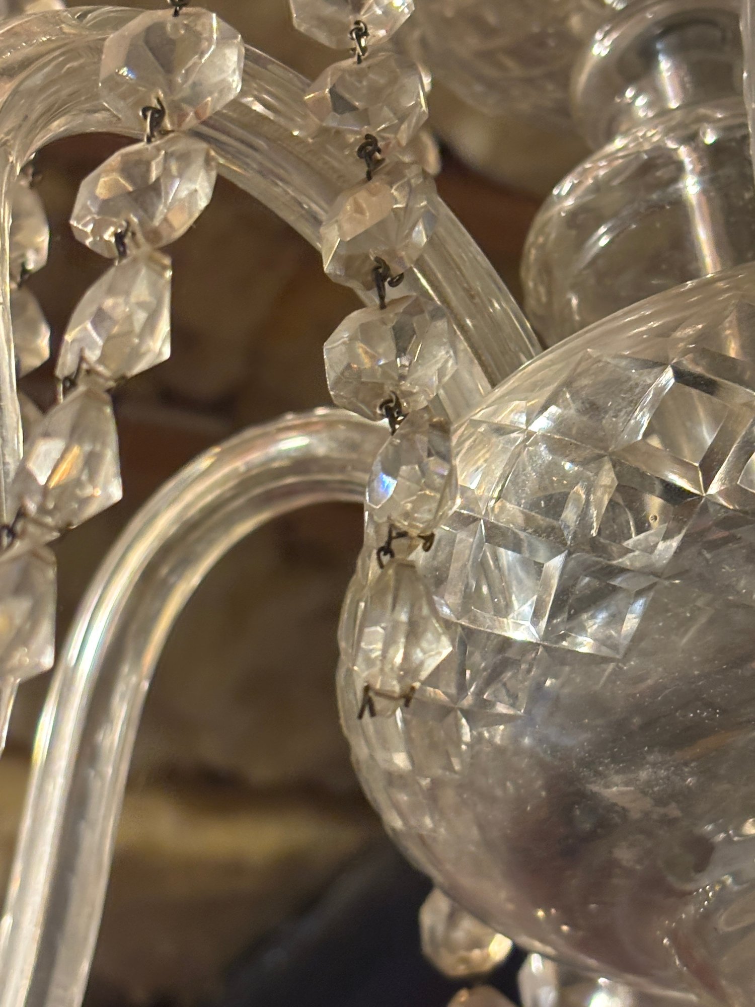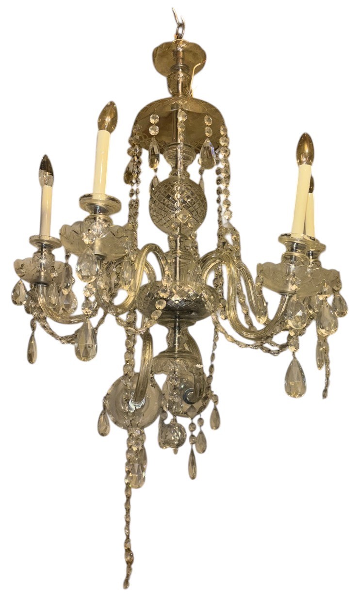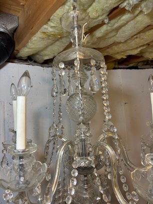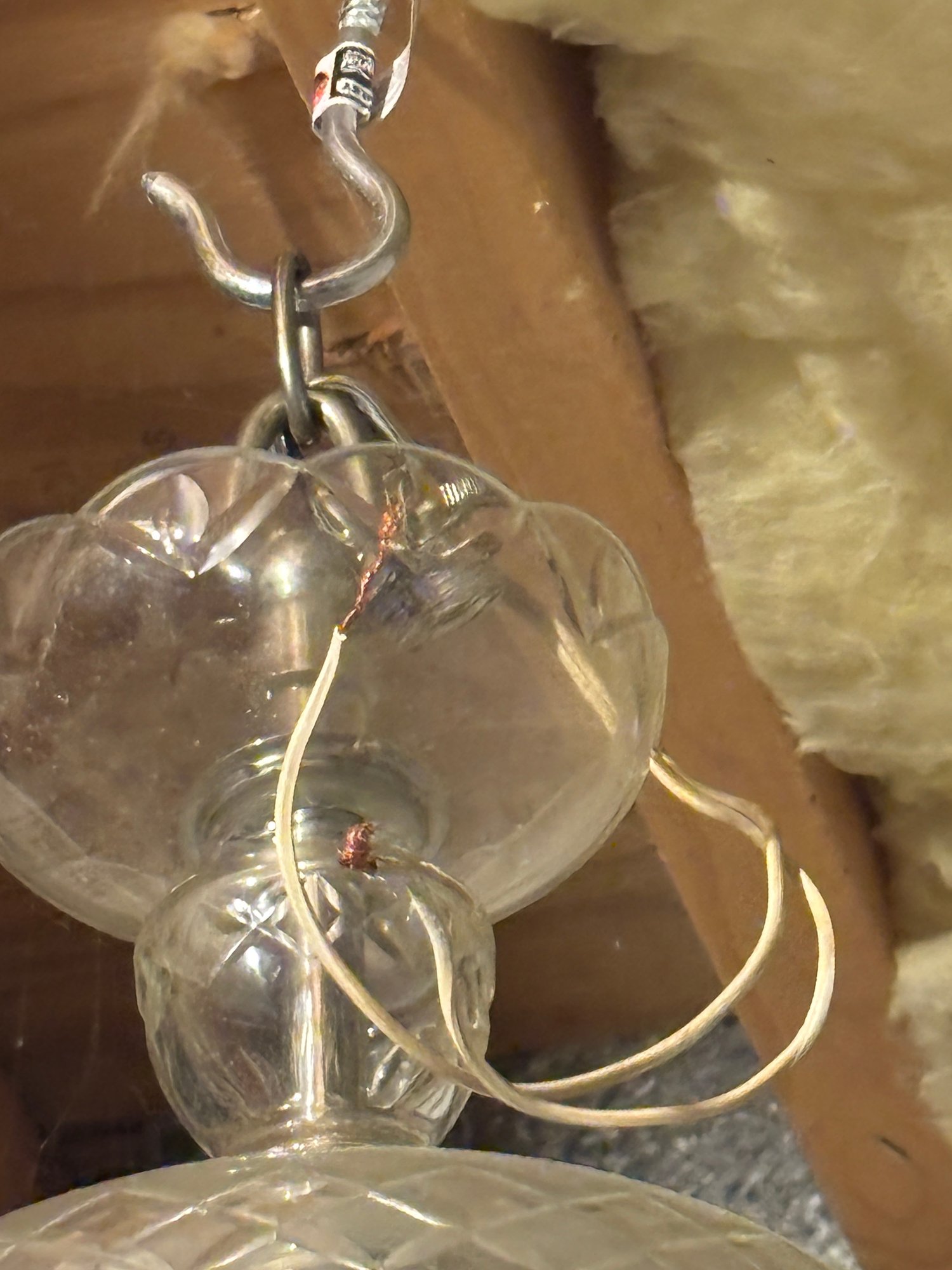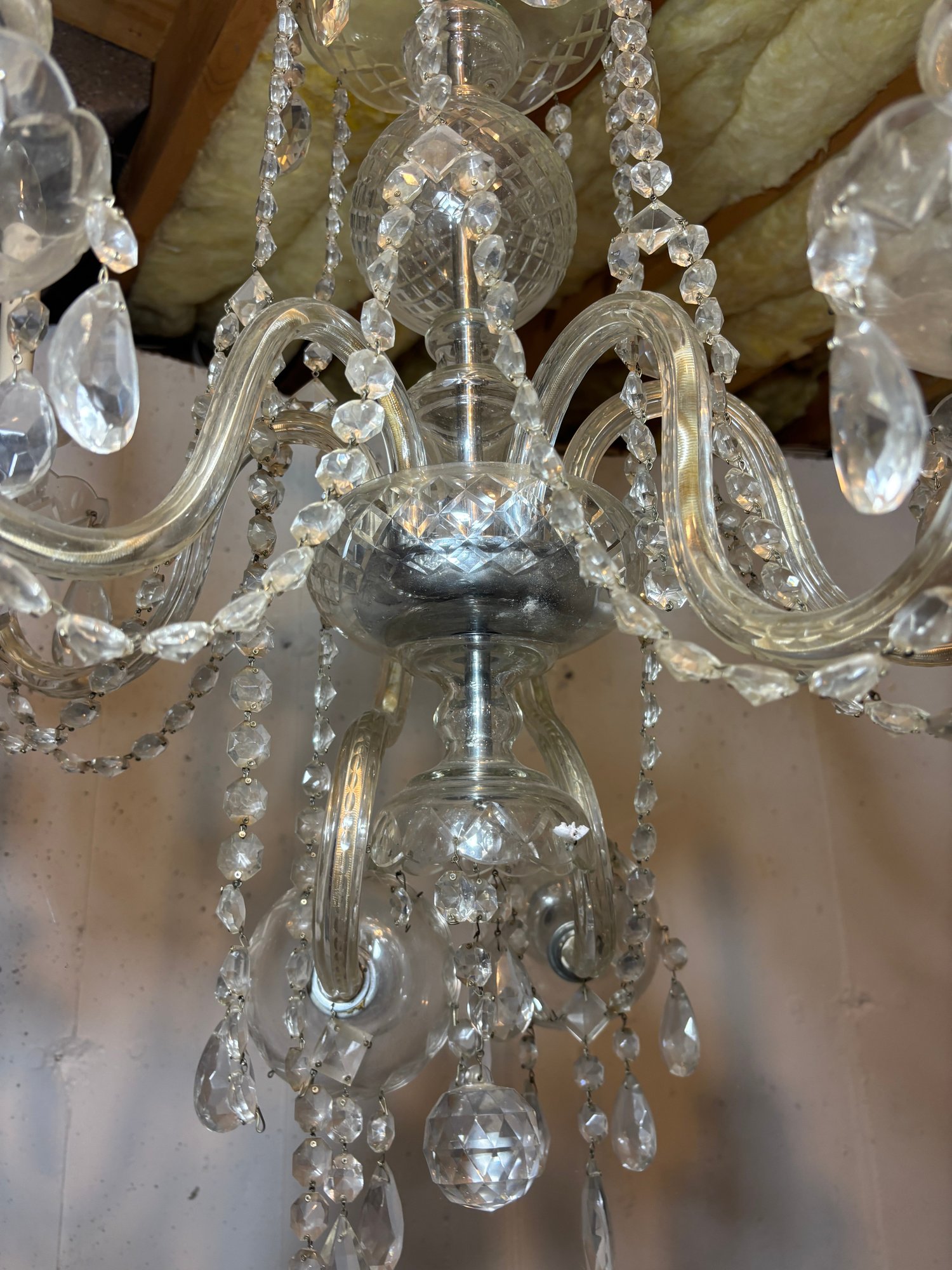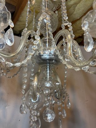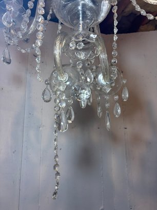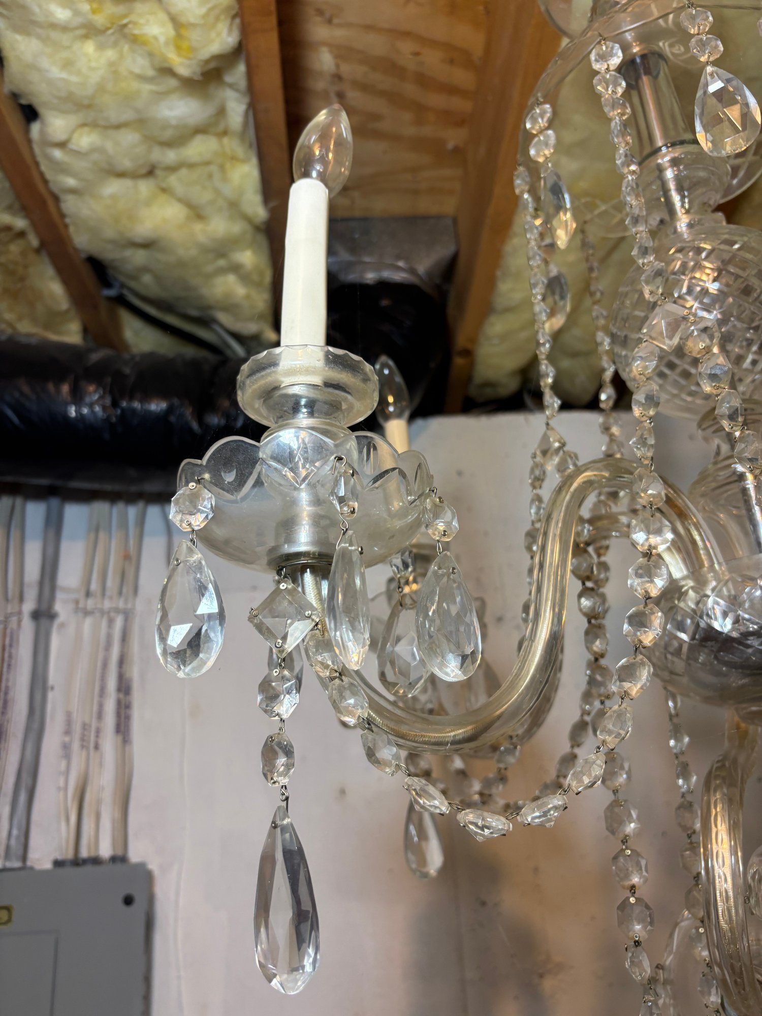 Notes: Two arms are damaged and appear to only be connected by wiring. Also missing many hanging crystal strands. See photos for other damage