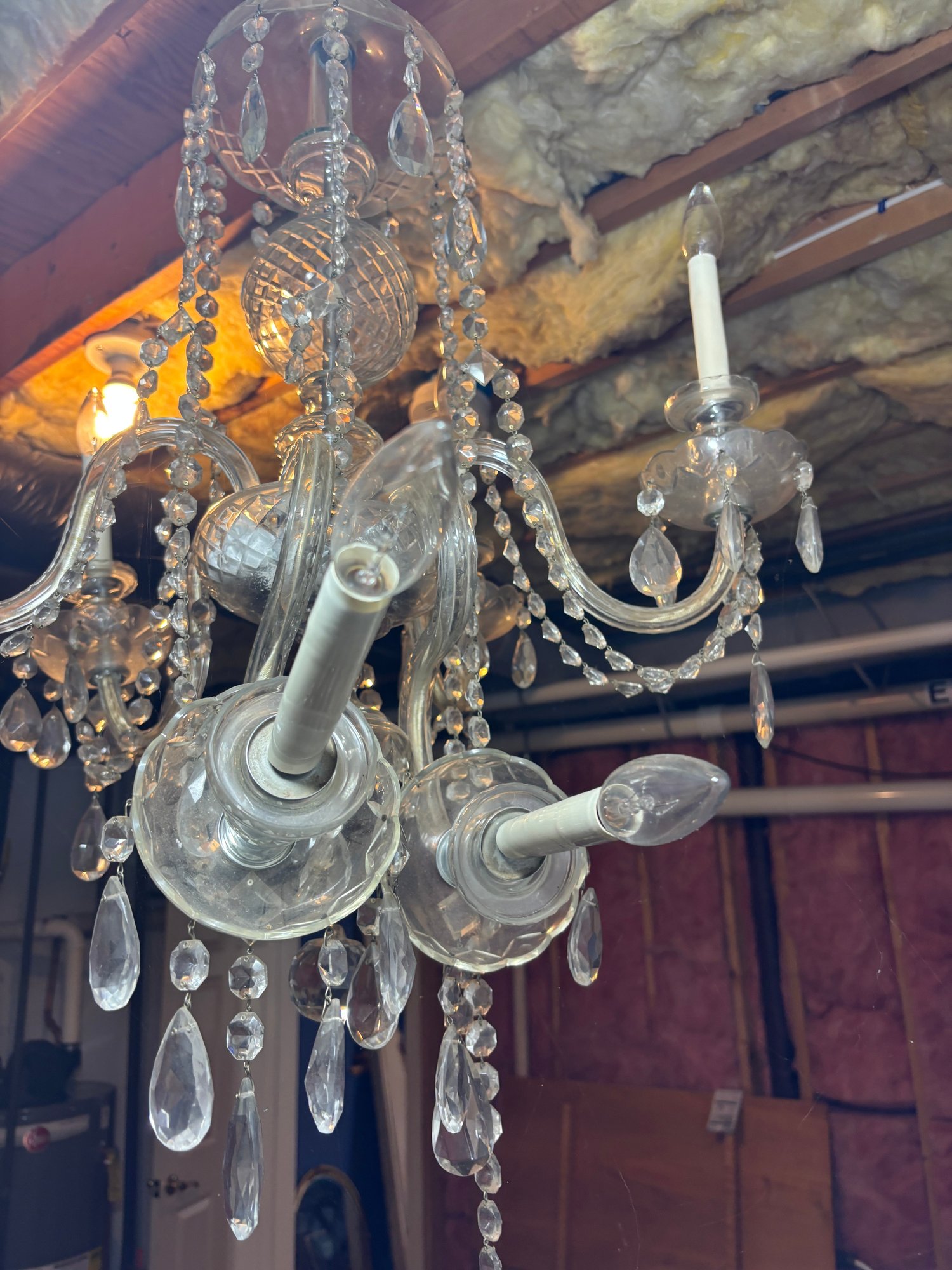 Please bring a step stool on pickup day, the chandelier is hanging 10ft(estimated) off ground.