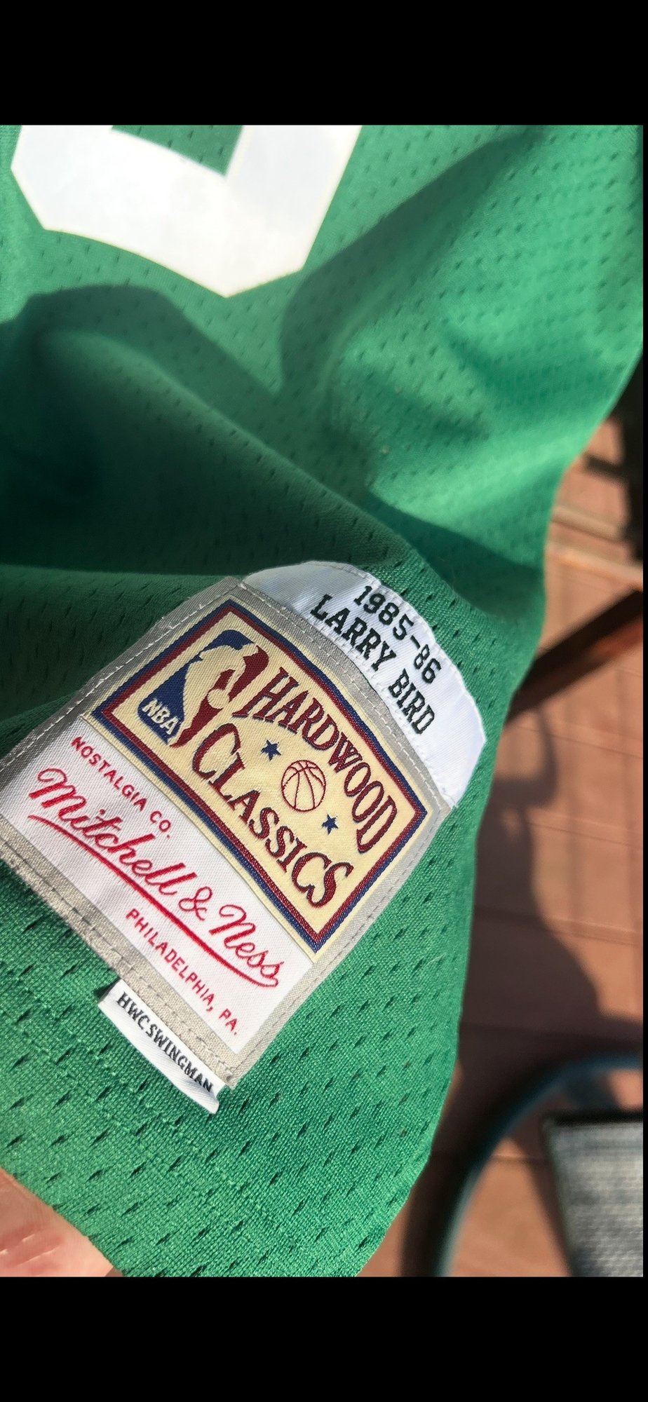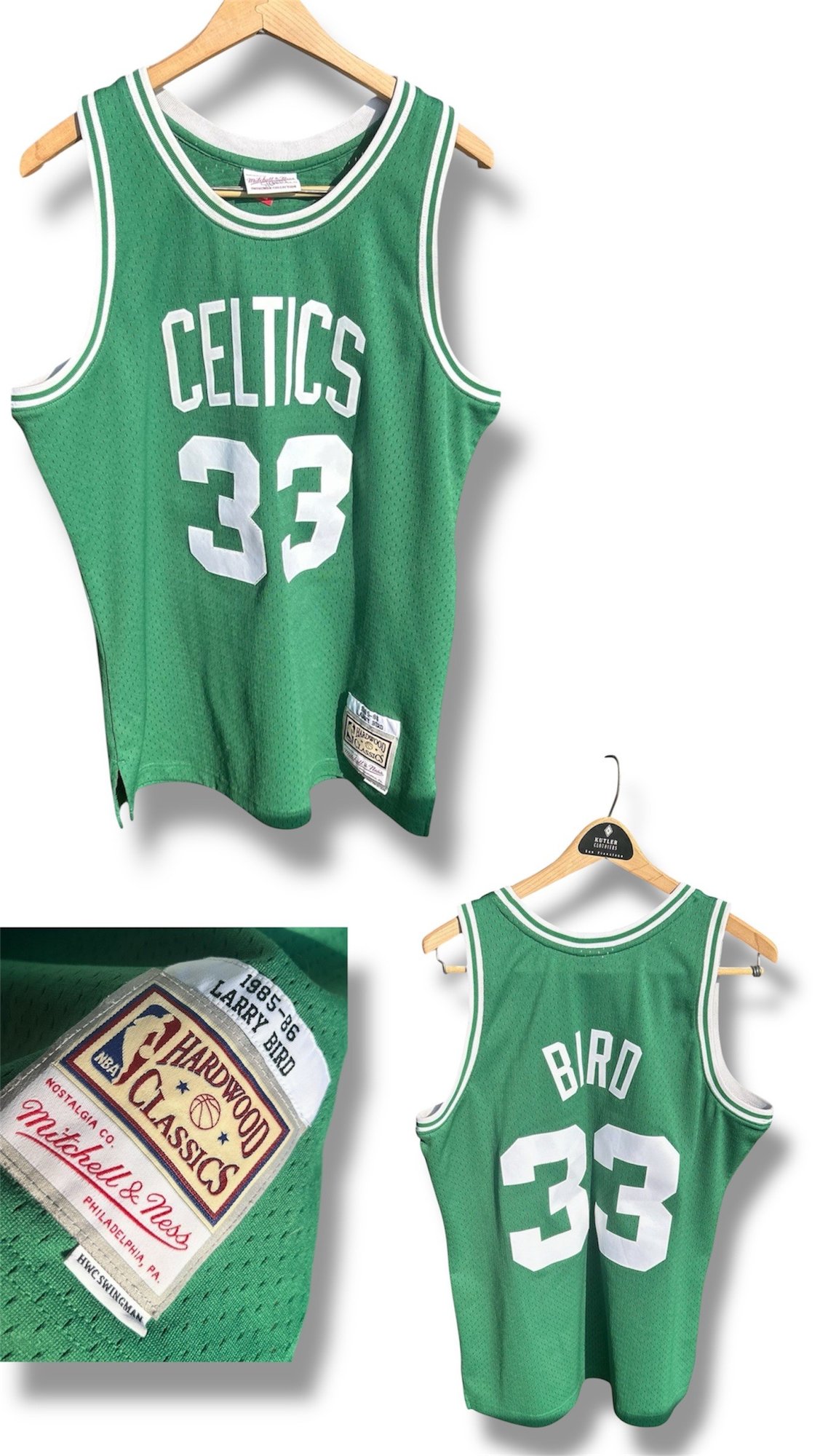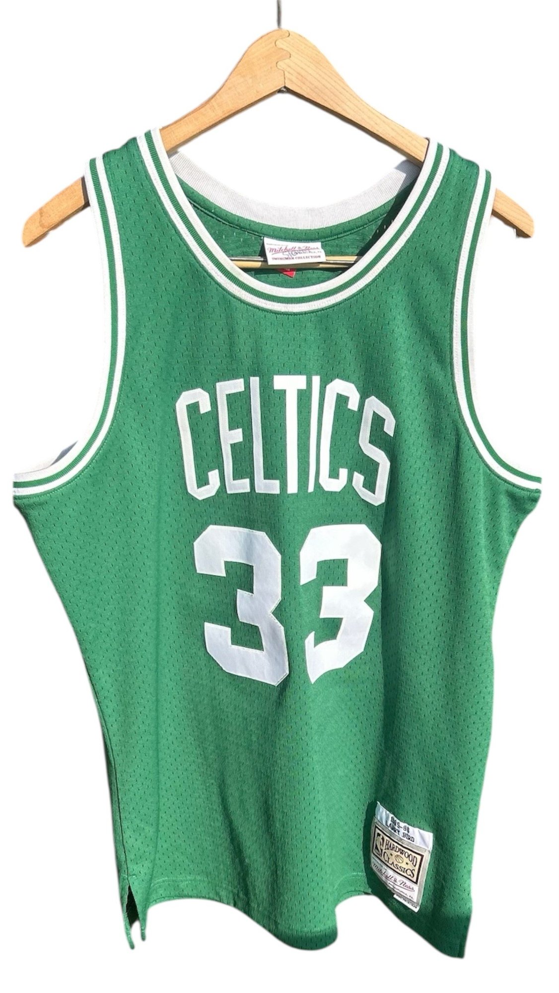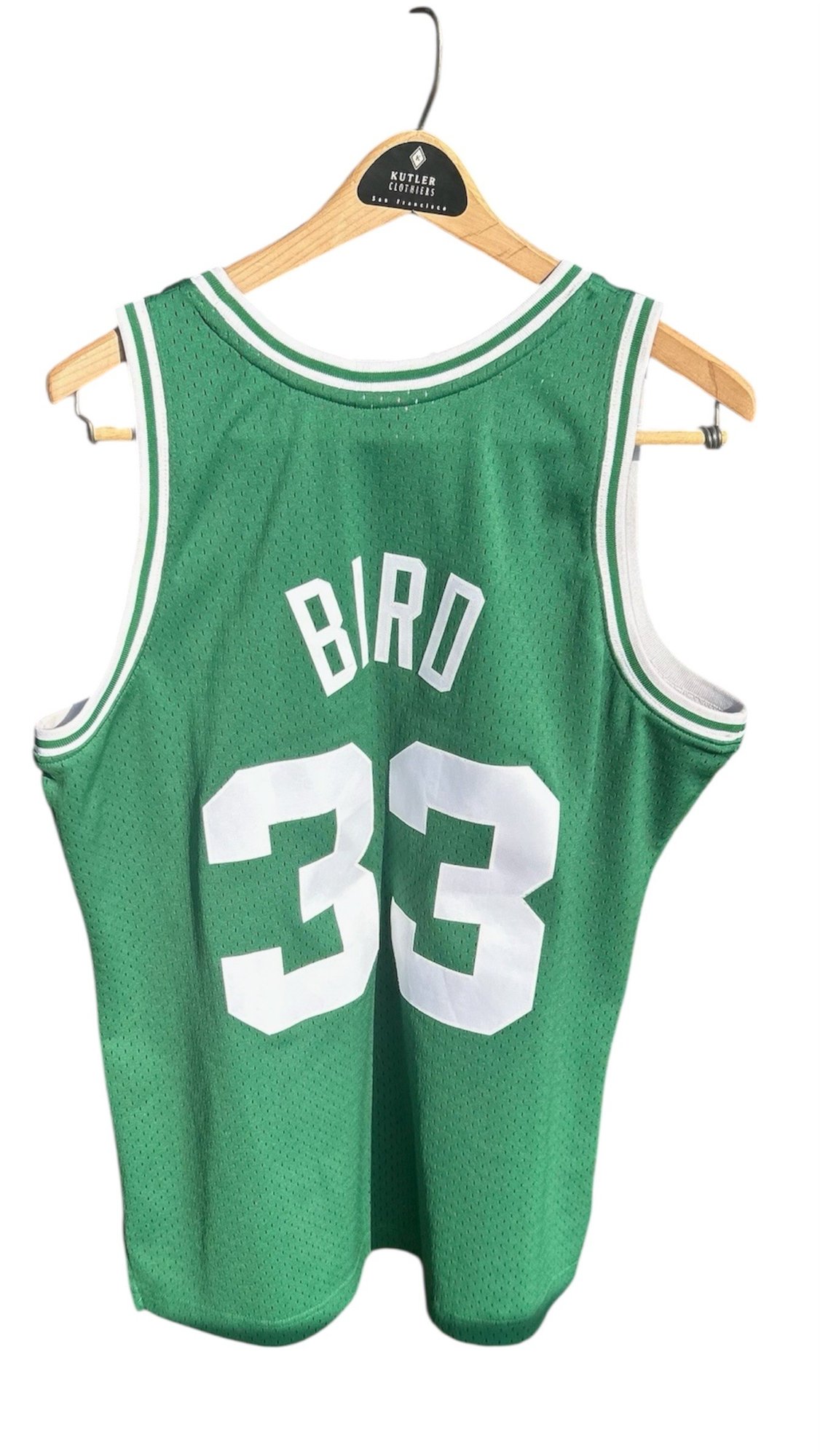 Iconic green Boston Celtics mesh jersey by Mitchell & Ness, featuring “Celtics 33” on the front and “Bird 33” on the back.