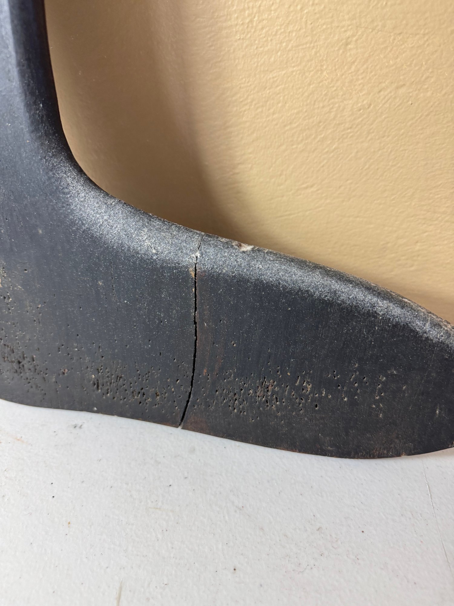 black stretcher is cracked & has damage