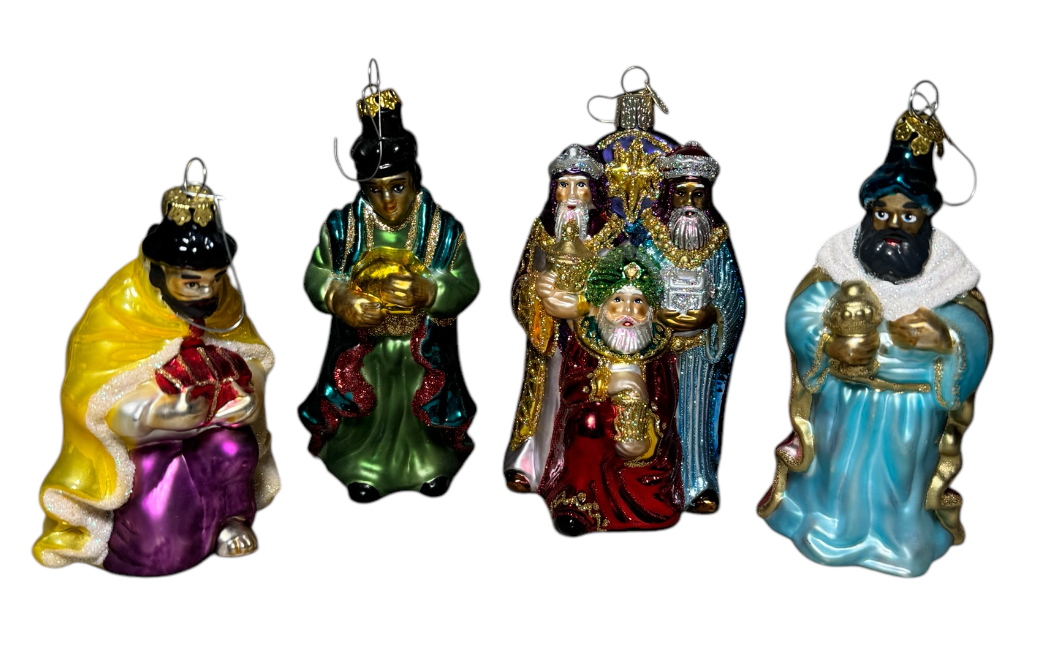 includes four glass nativity ornaments