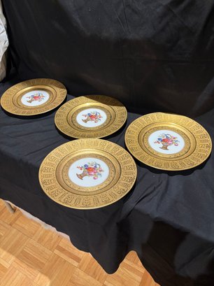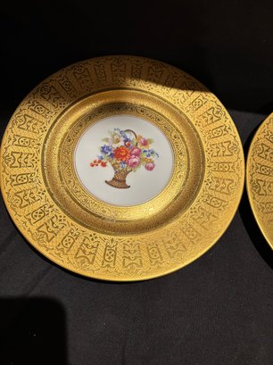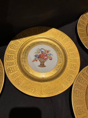 5 gold and floral plates-made in Czechoslovakia-10.5”