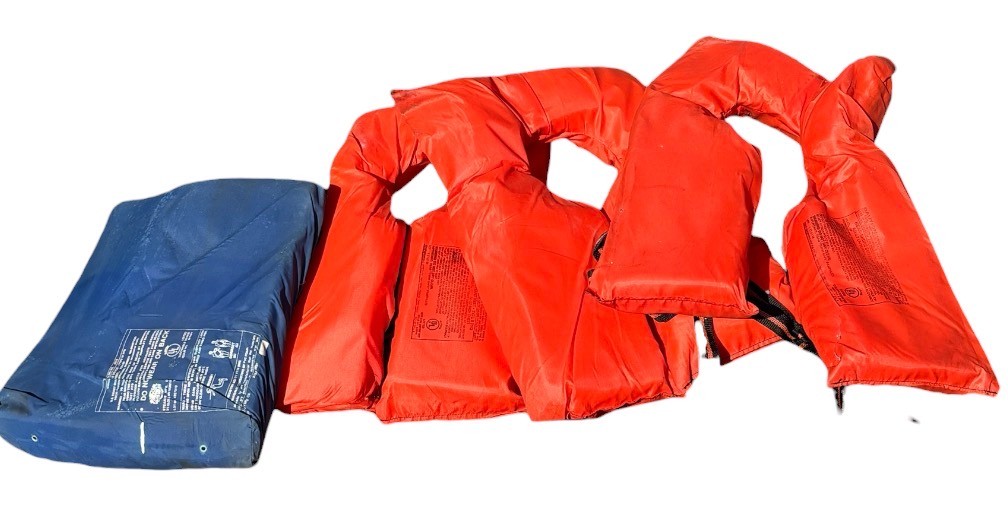 Includes 3 life jackets and 1 throwable device all untested