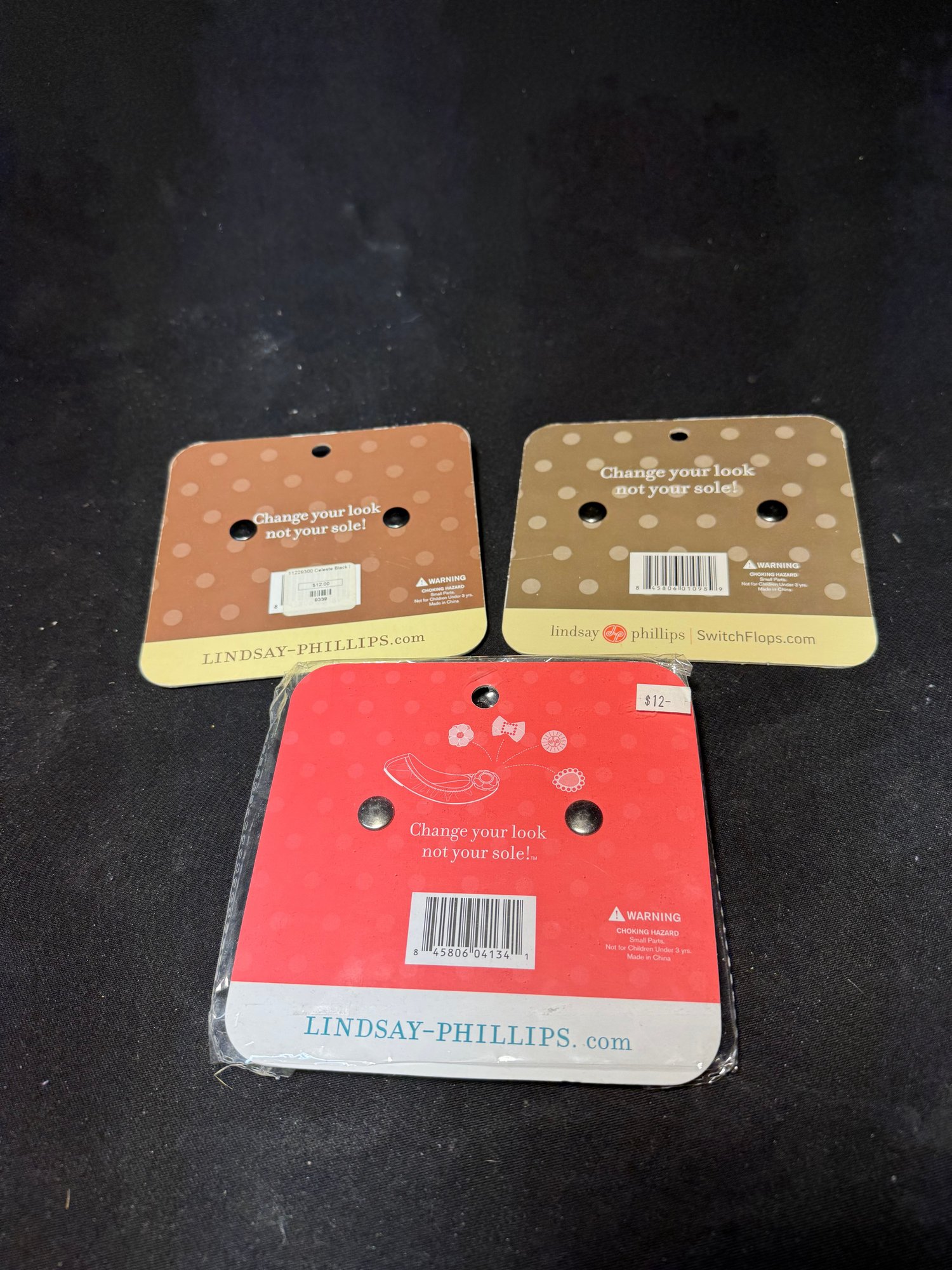 includes three brand new packages, they snap on lindsey Phillips shoes