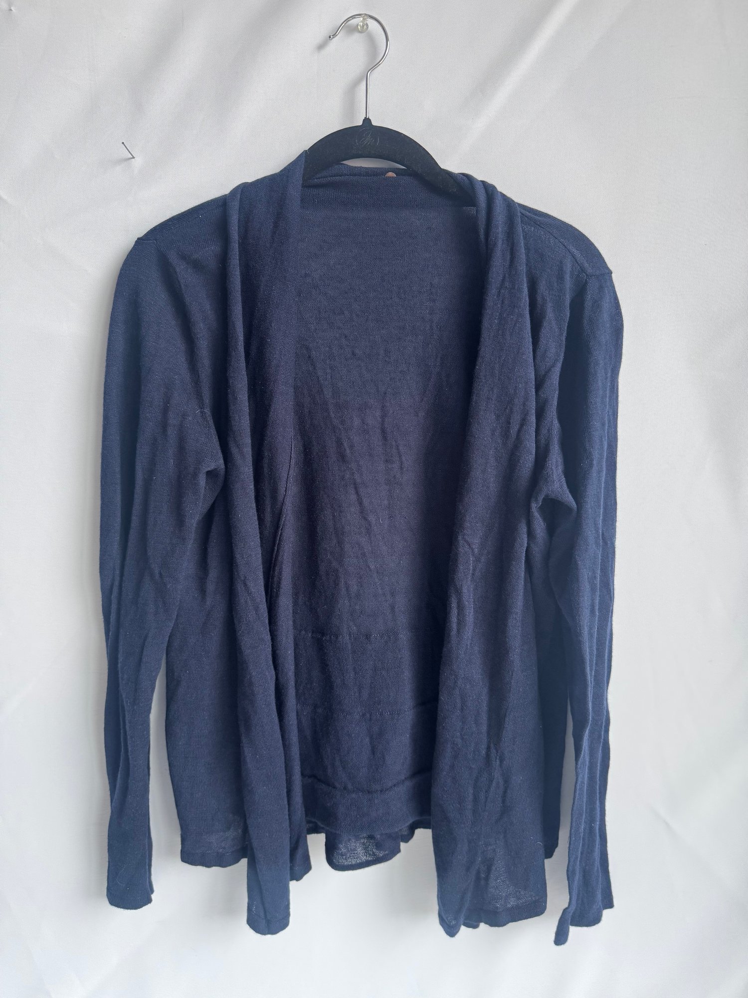 Style: Ruffle detailed, navy cardigan