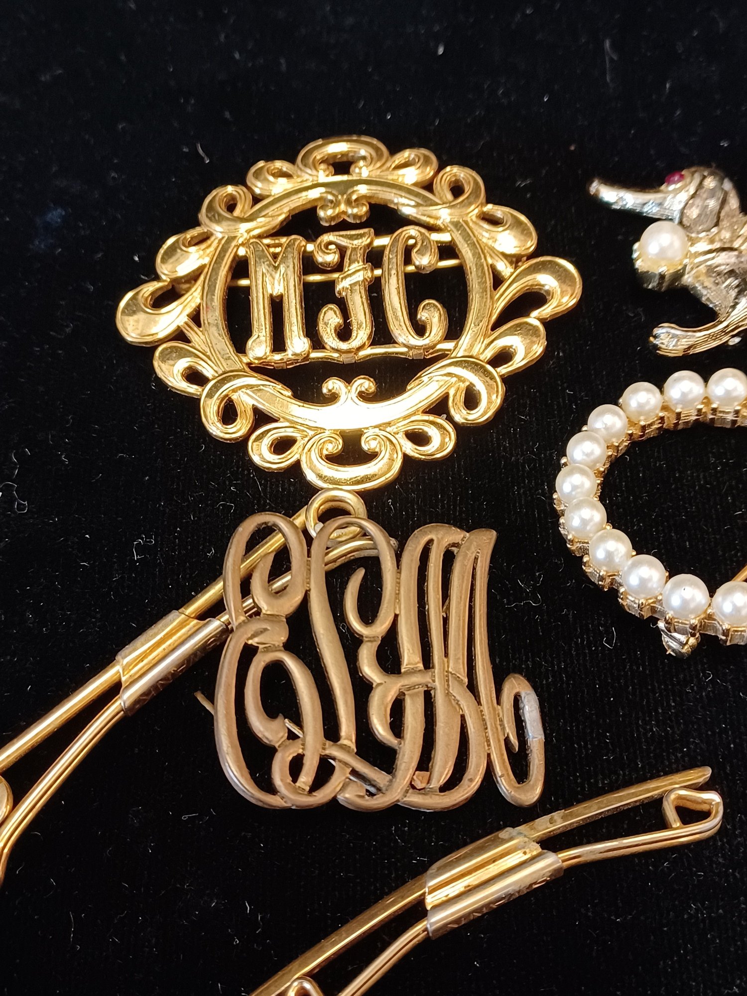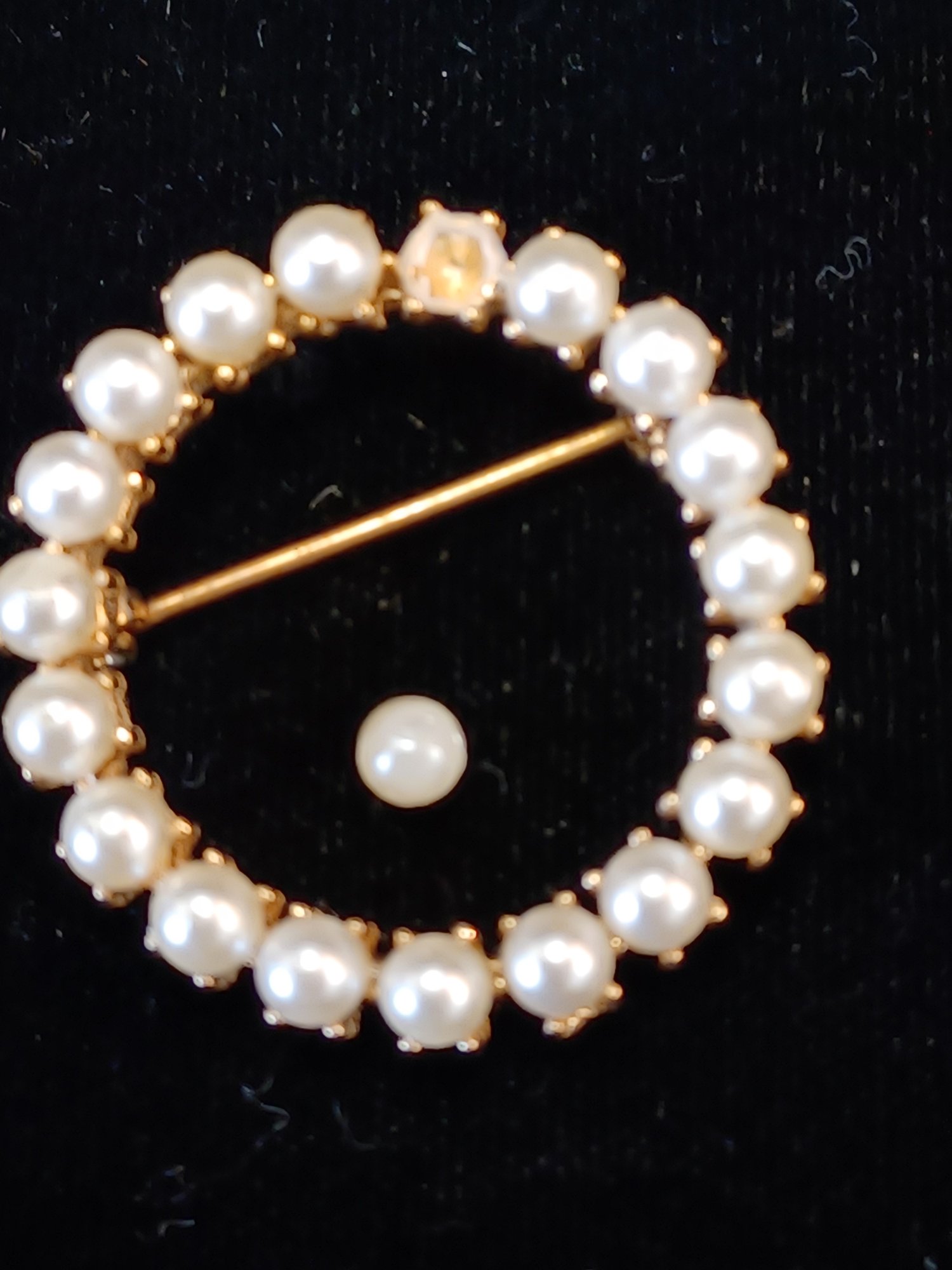 * pearl brooch is faux and 1 fell out; have and needs to be resecured