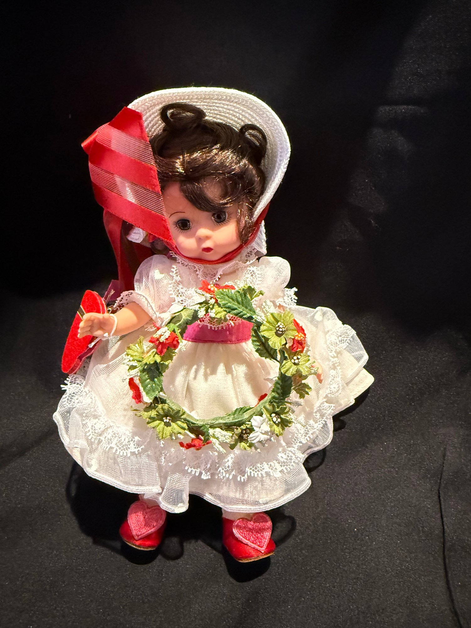 8” Madame Alexander Valentine doll. 8” Madame Alexander Seasons Greetings Wendy with original tag. Set of 2.