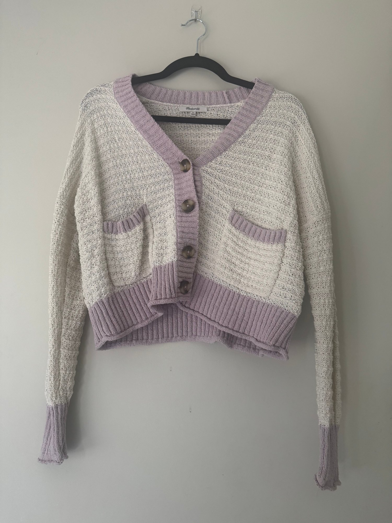 Style: pink and white button sweater