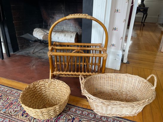 Rattan magazine caddy, 2 baskets, 2 Artex tv tables