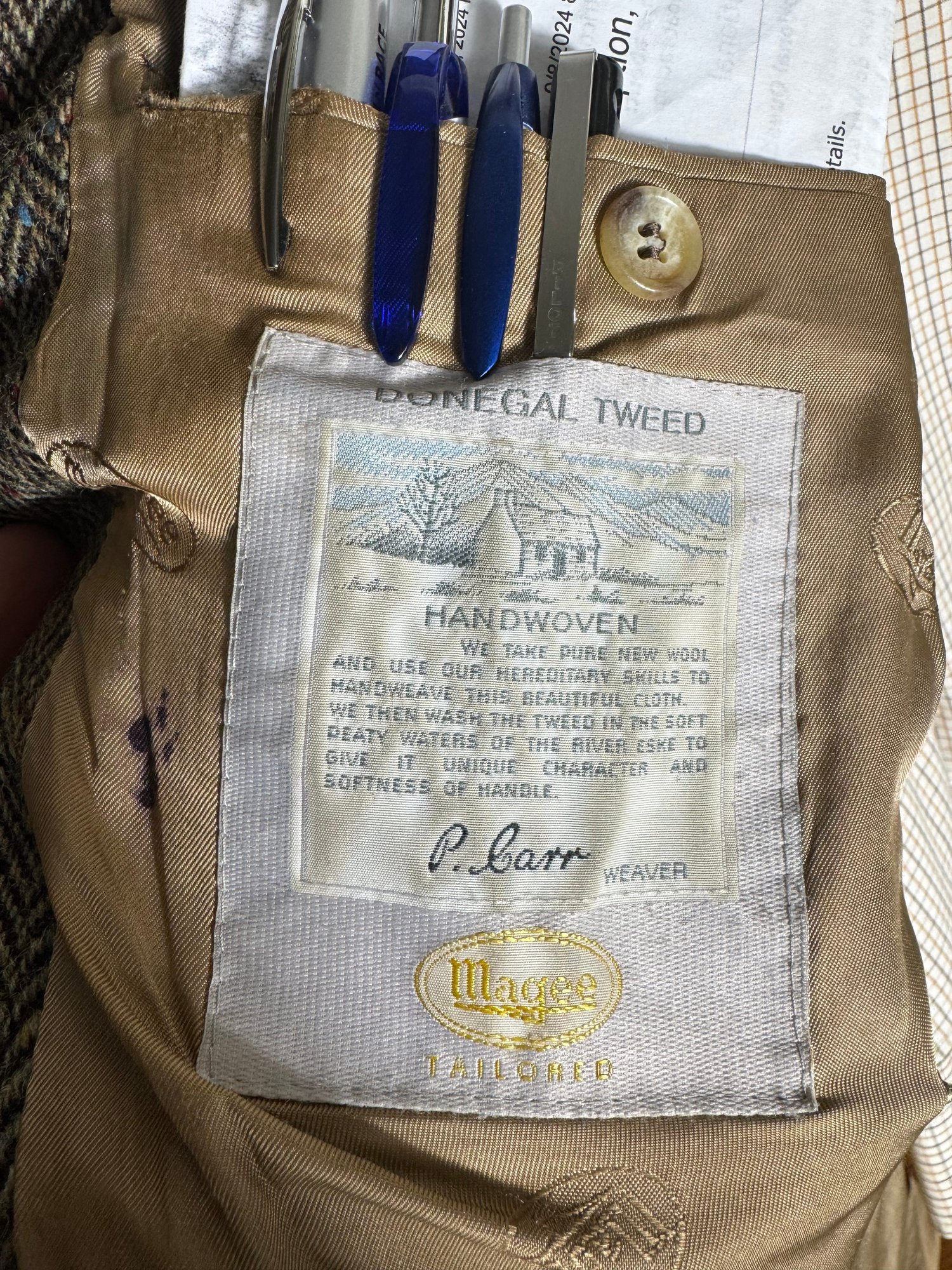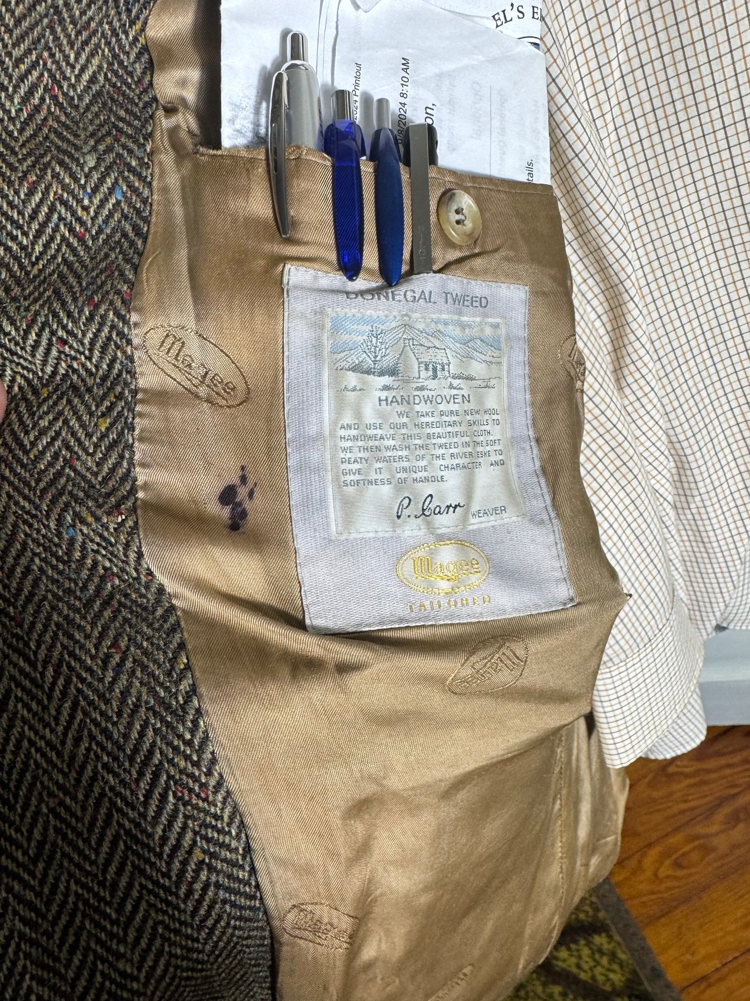 minor wear may be present, ink spot inside inner jacket near pocket