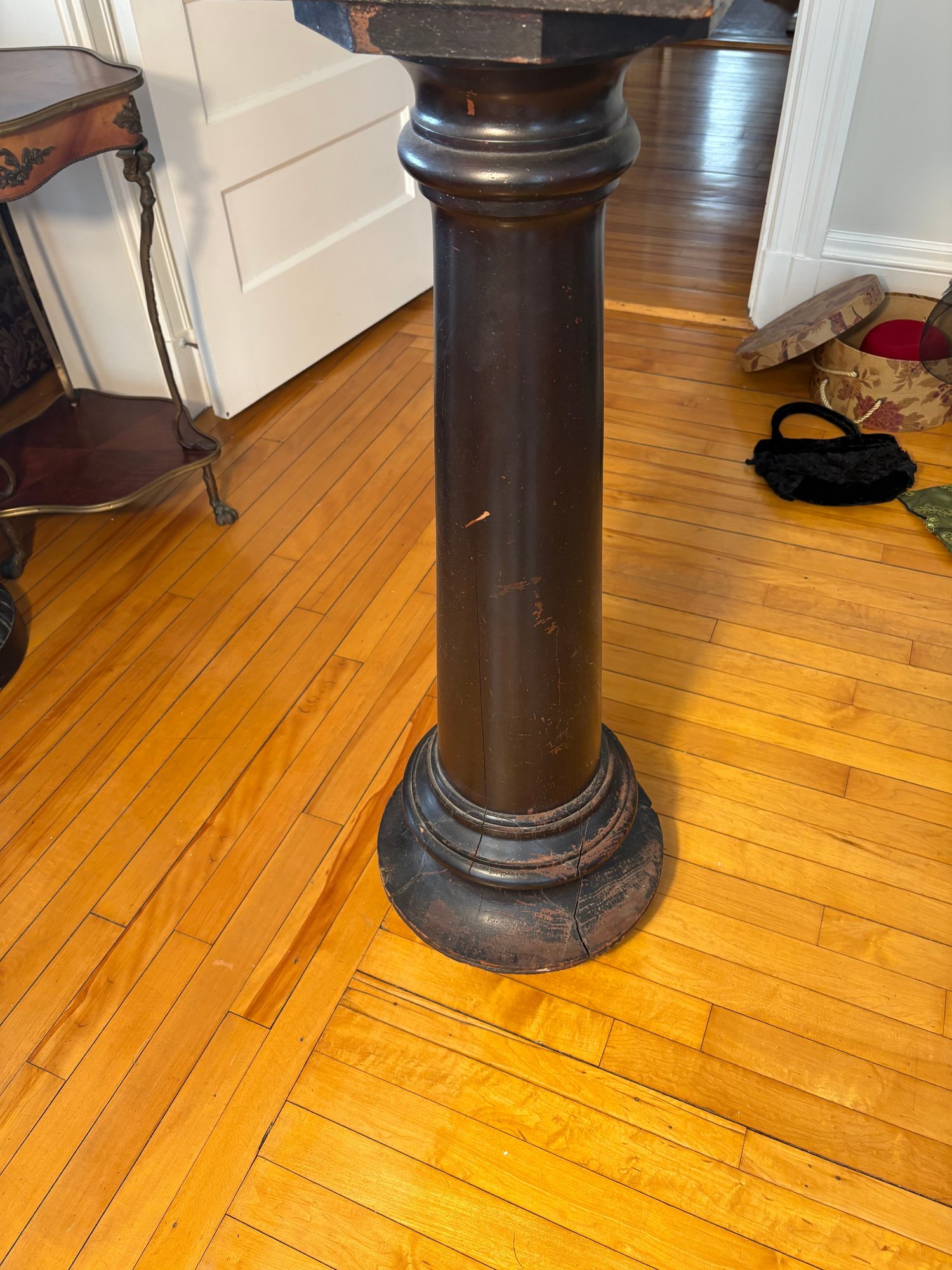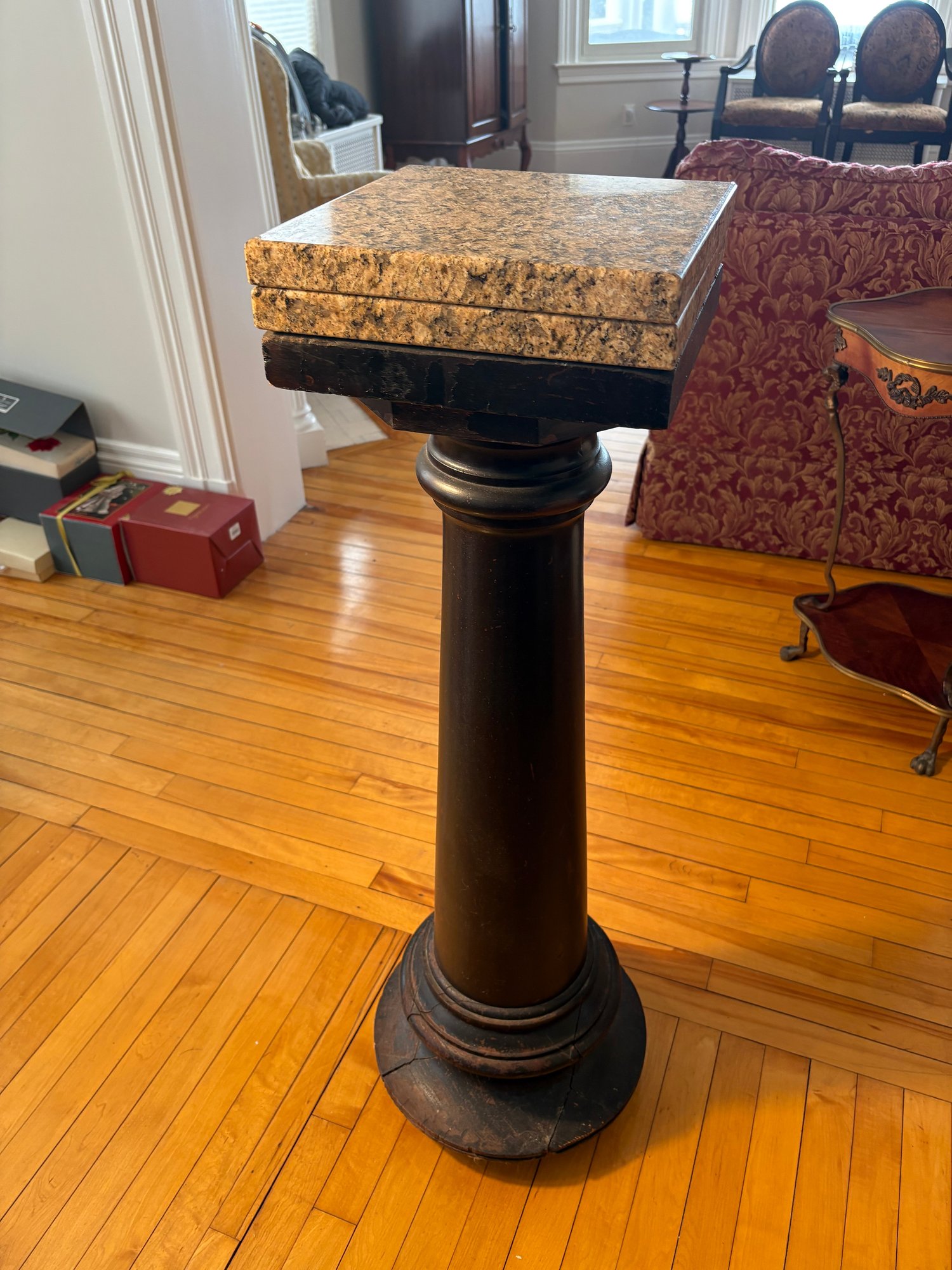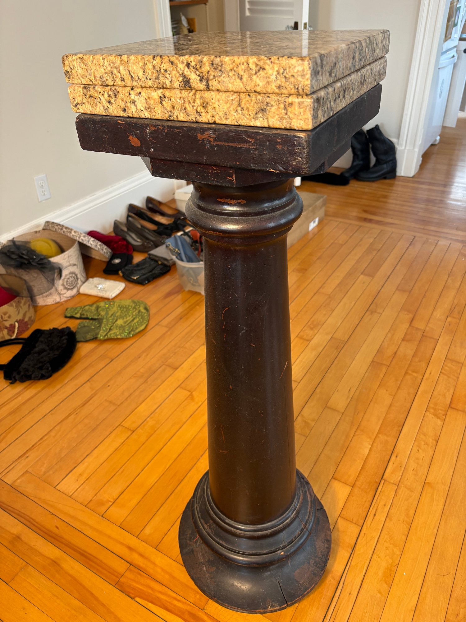 Dimensions approximately 41.5 inches tall. 11 inches wide . Marble top is not attached comes in 2 pieces