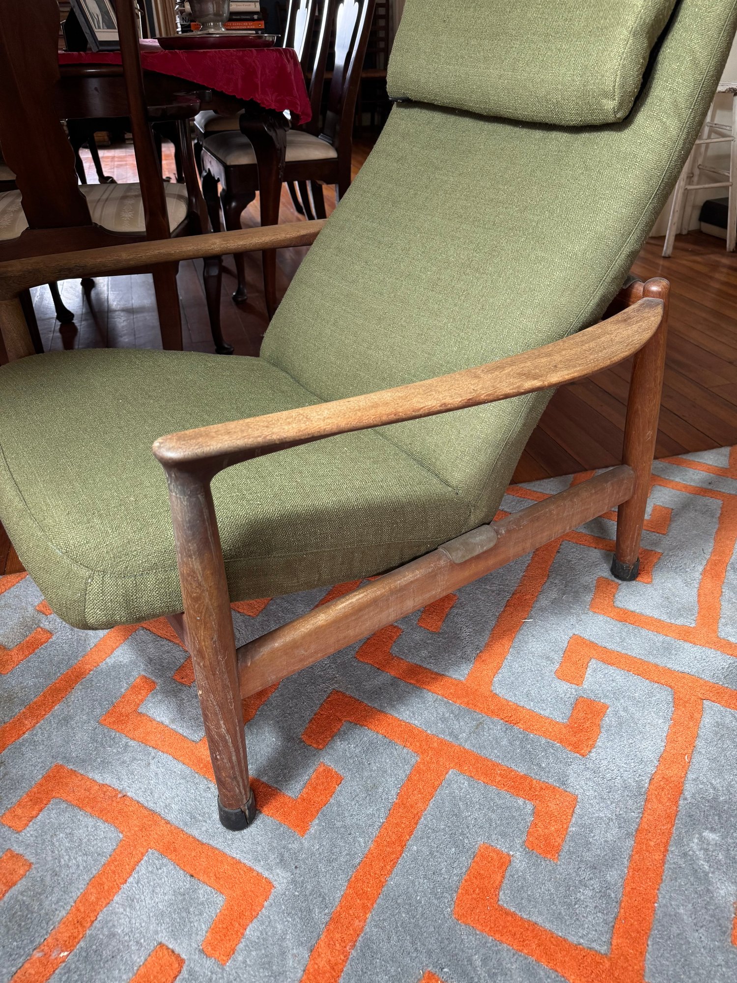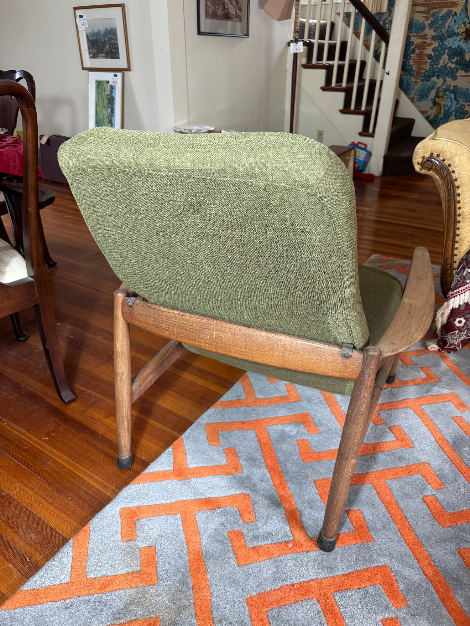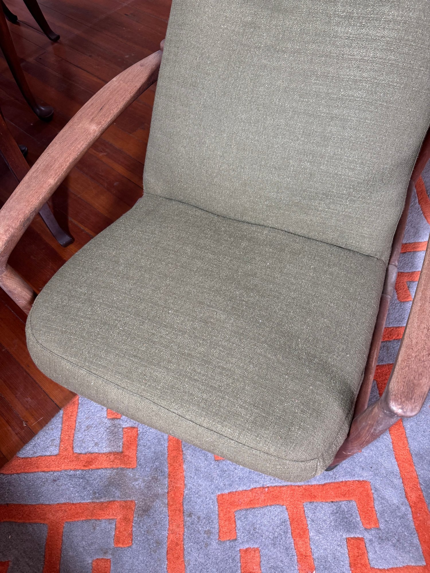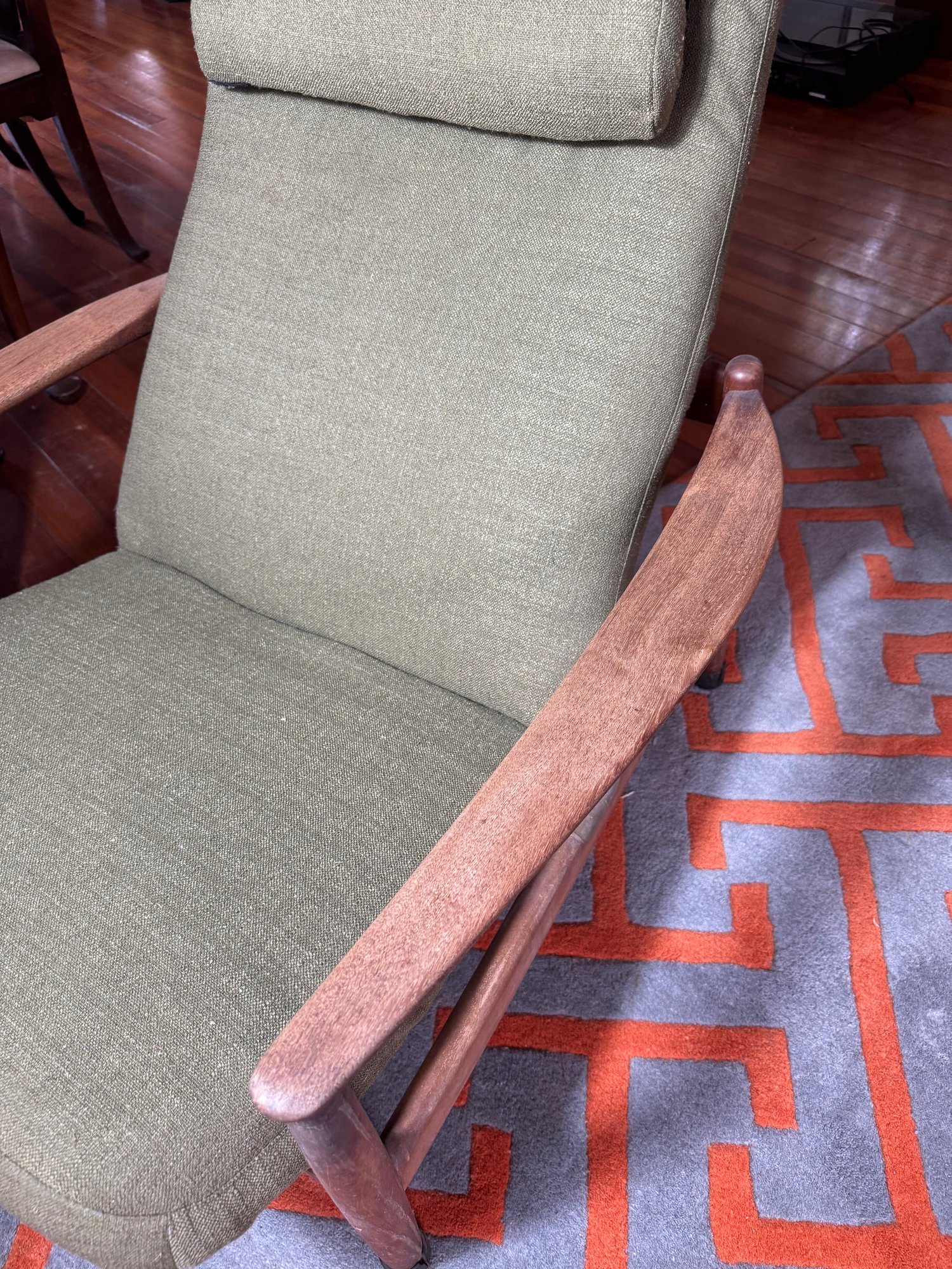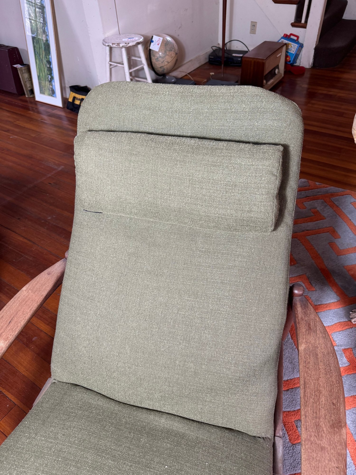 the wood & upholstery are both in used good overall condition