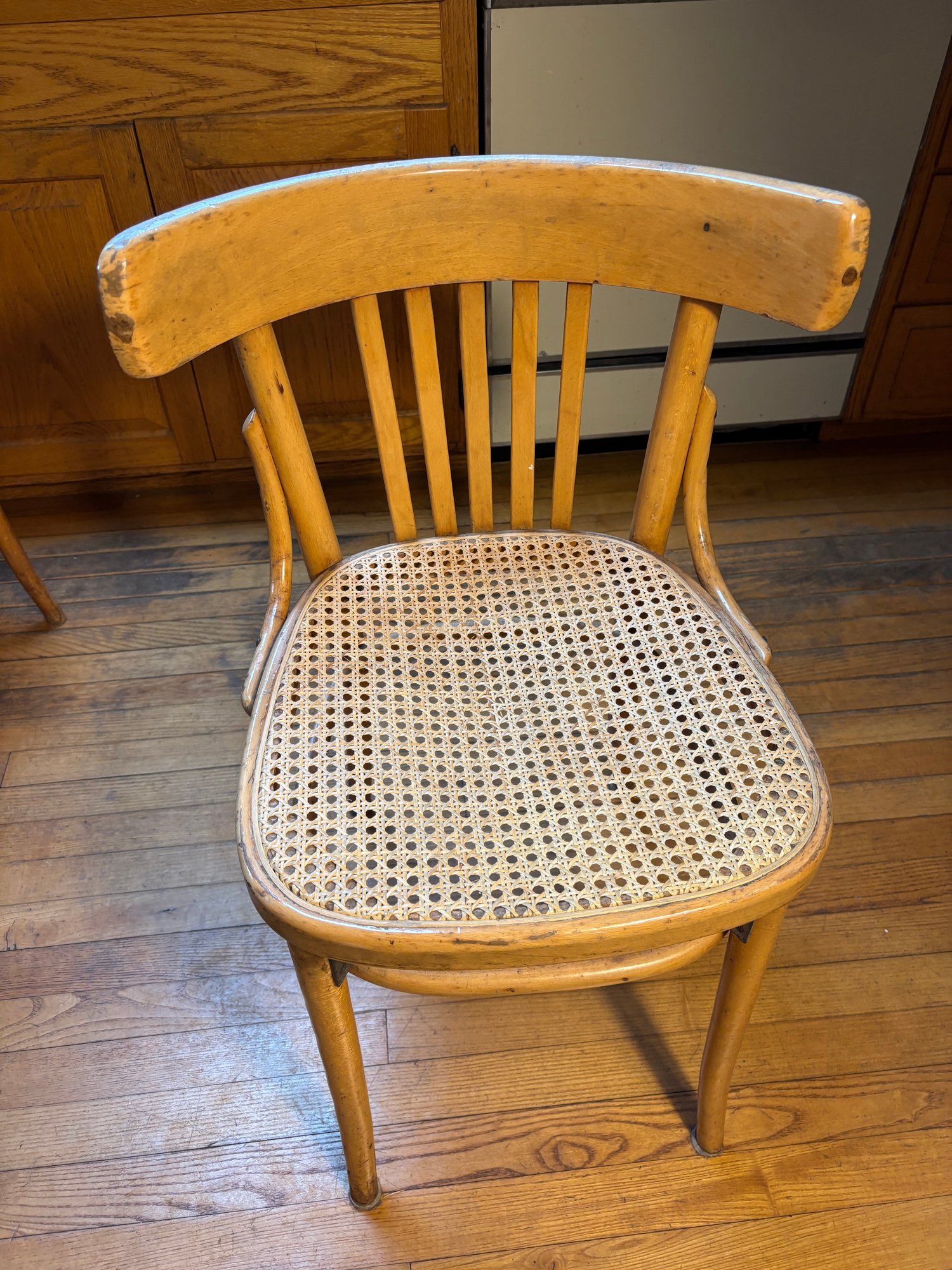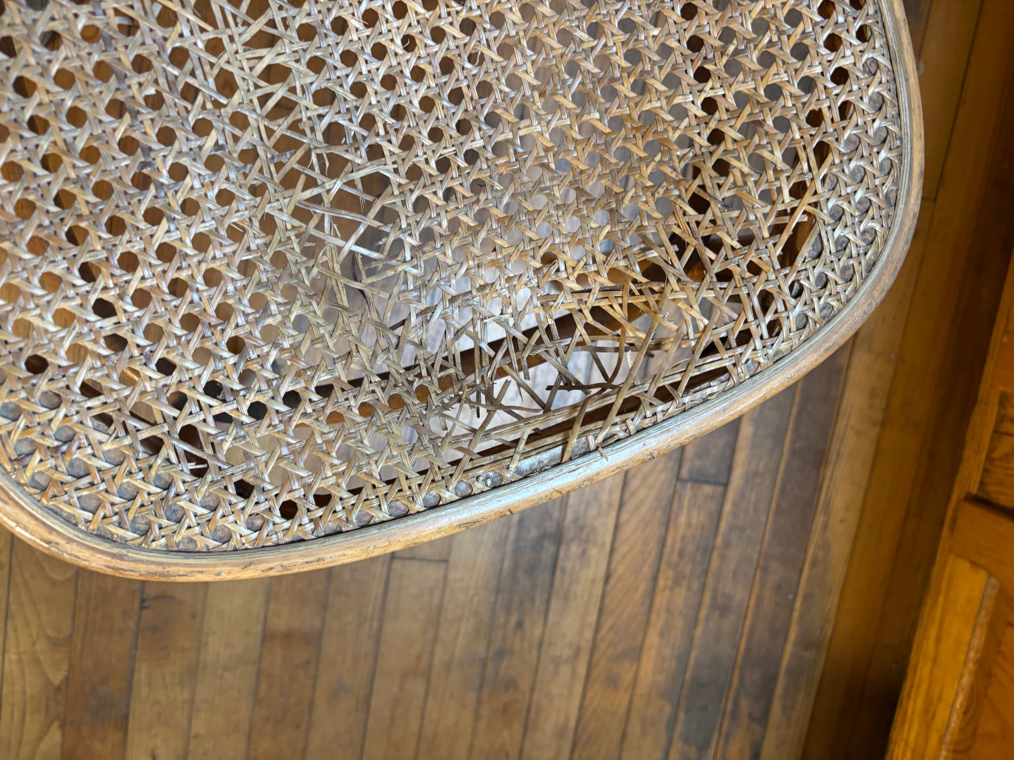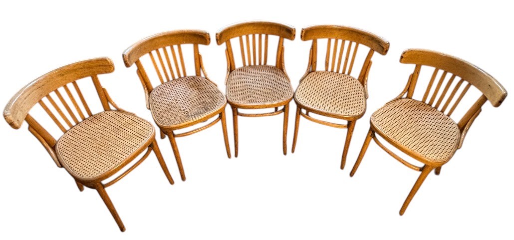 Notes: All chairs have scuffs of minor damage, one chair has very damaged wicker base (see photos)