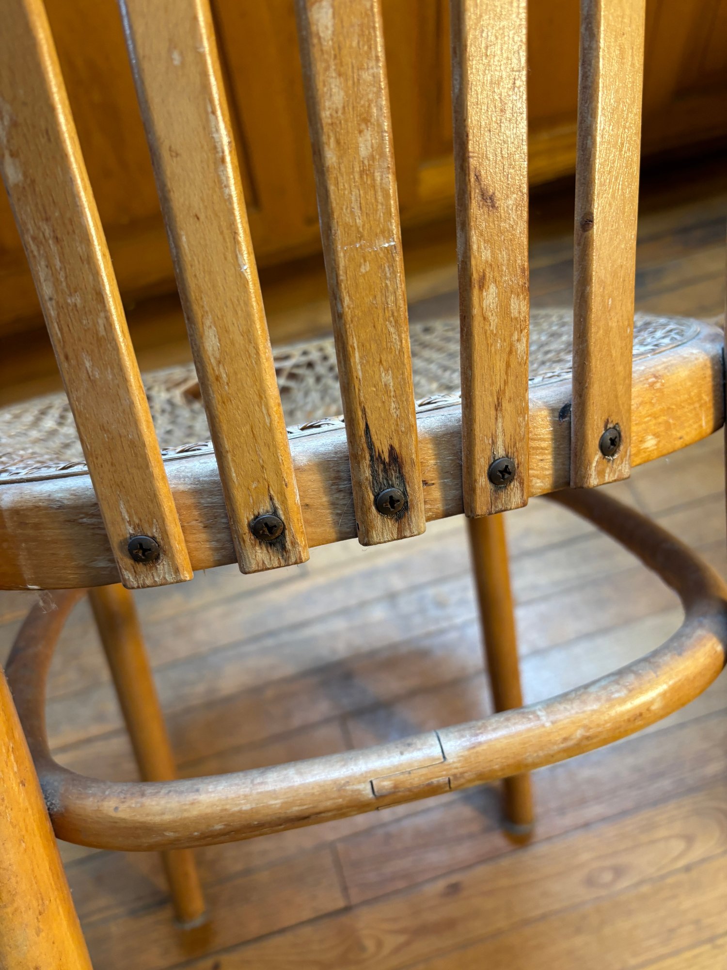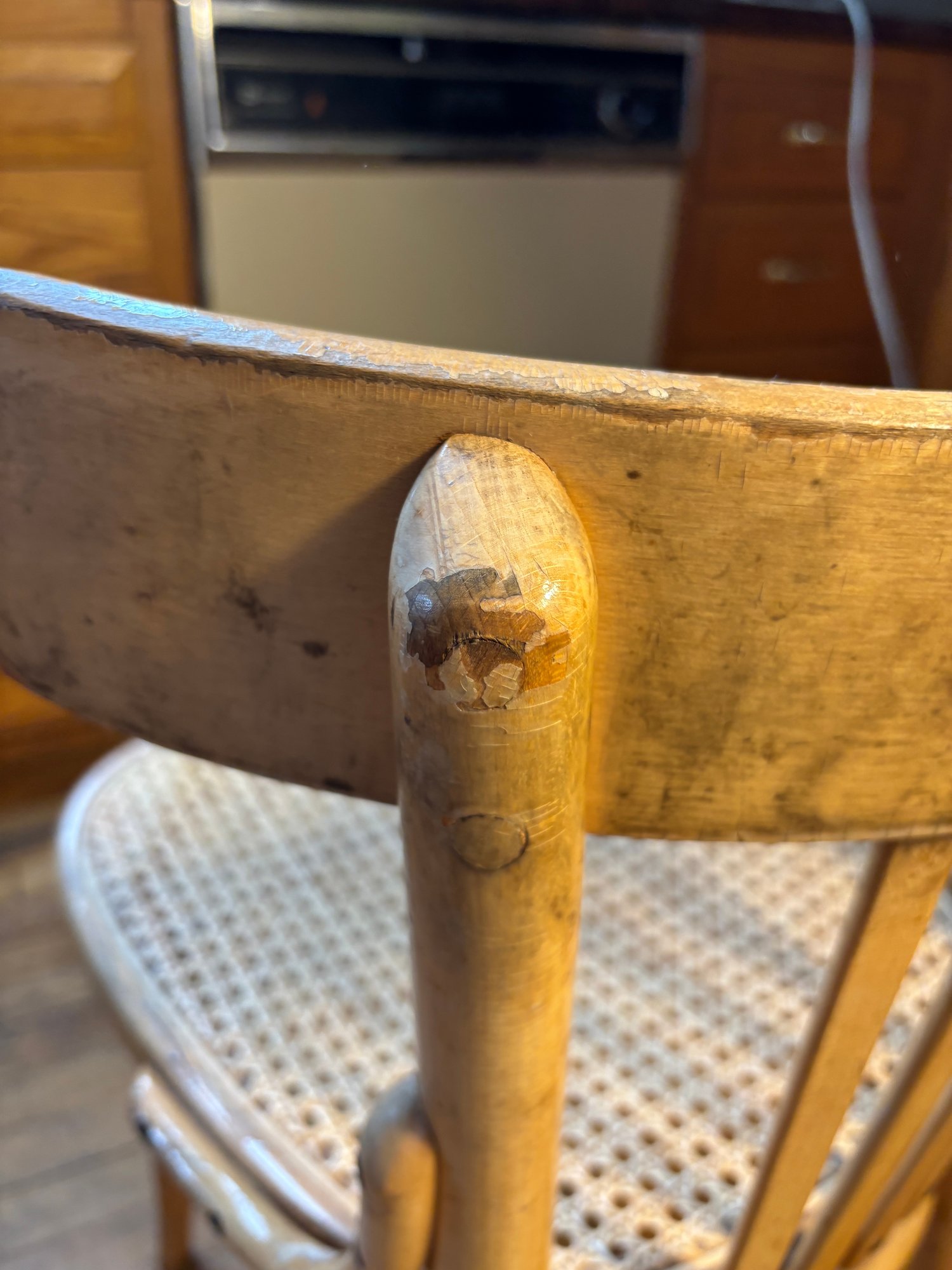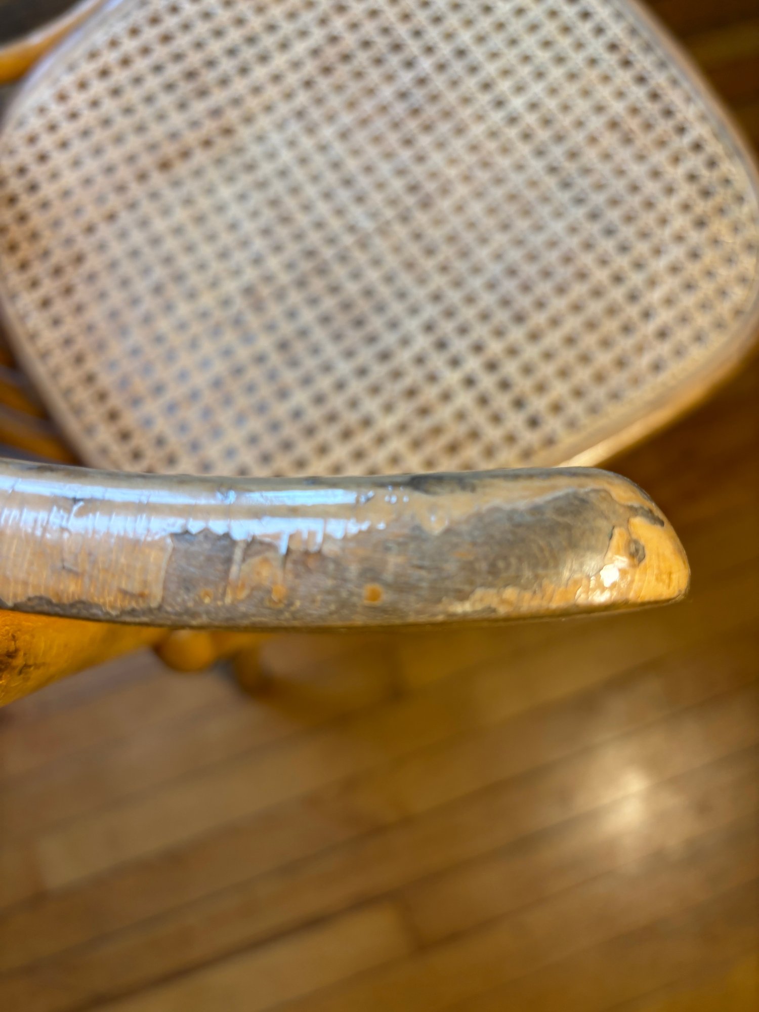 Notes: All chairs have scuffs of minor damage, one chair has very damaged wicker base (see photos)