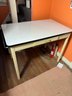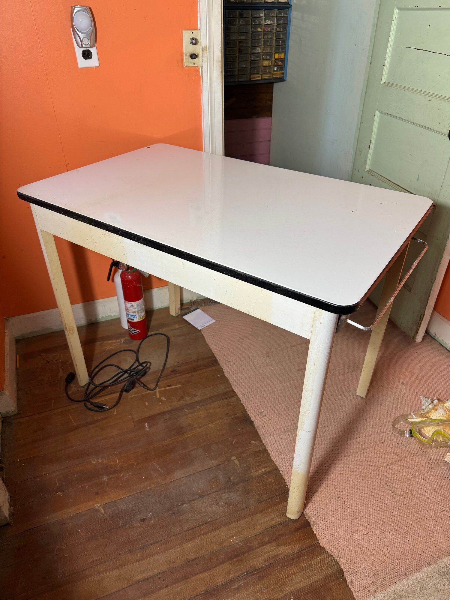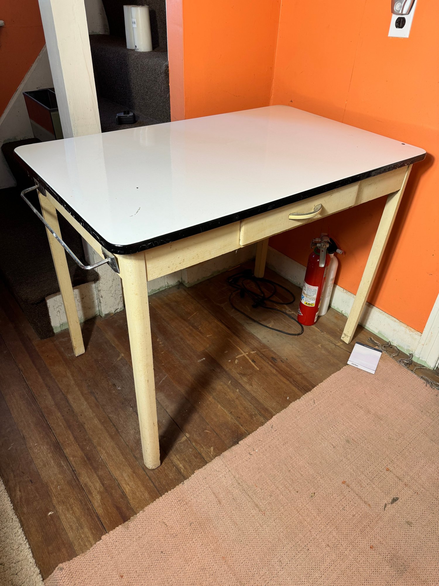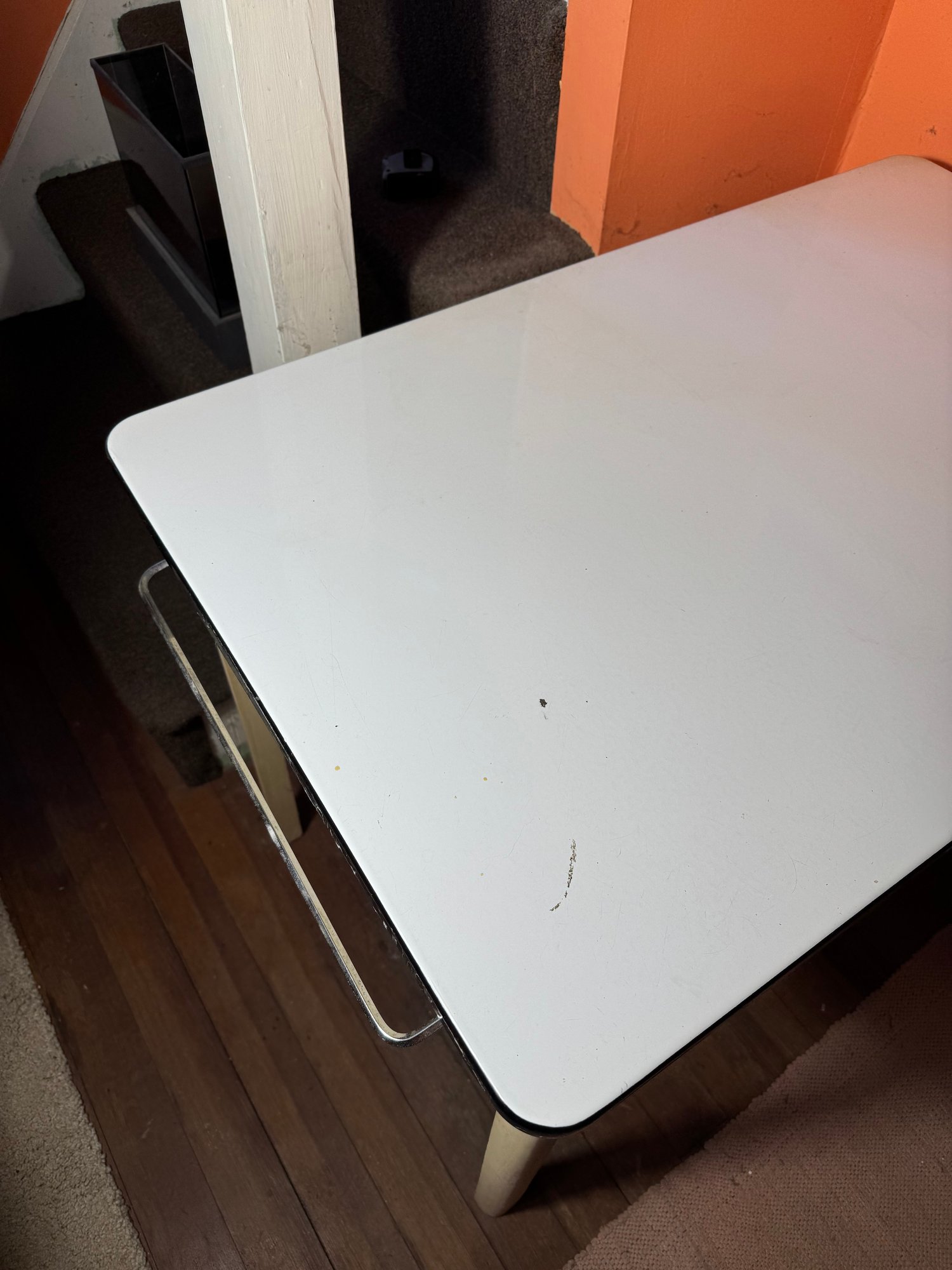 the top is not stained orange at all, just reflection from the very brightly painted walls