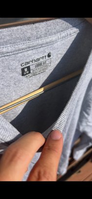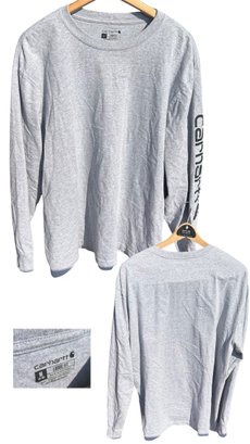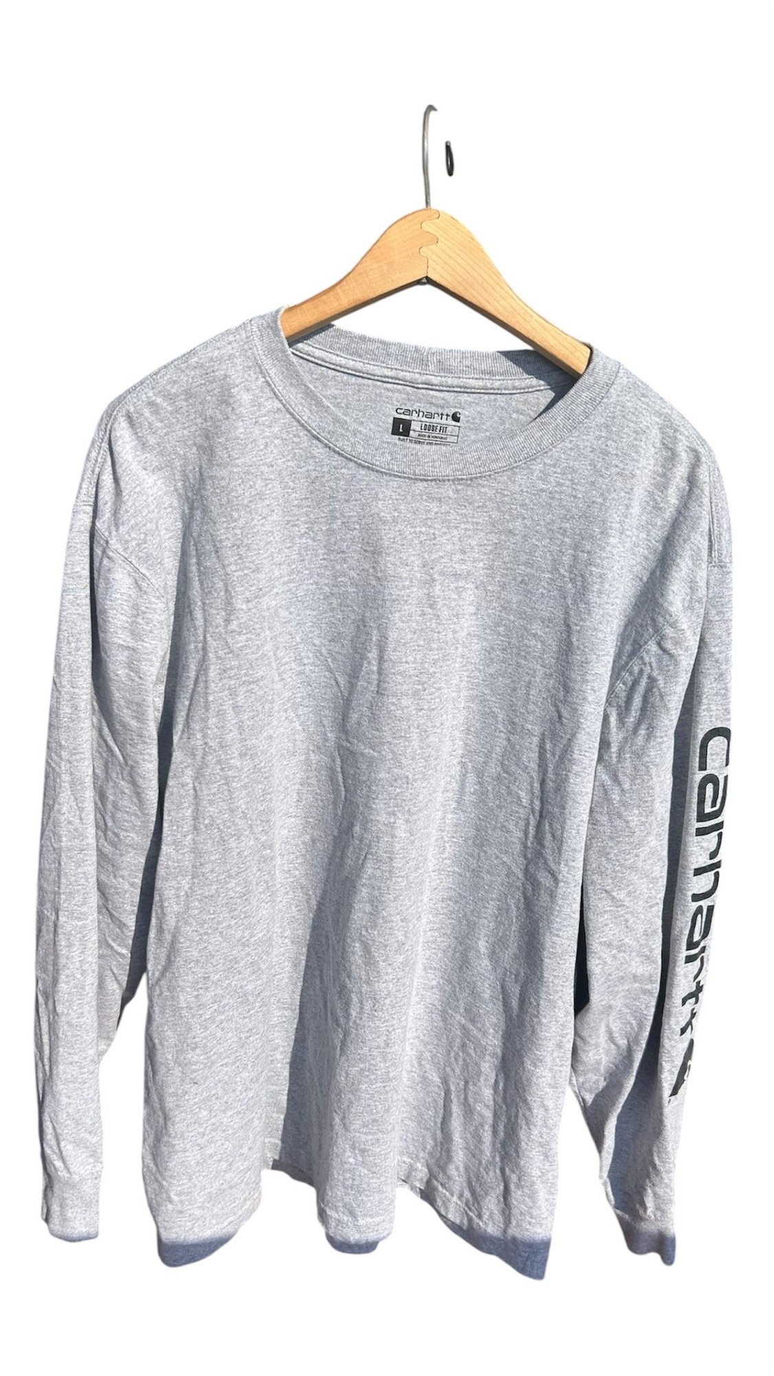 Loose-fit long sleeve in heather gray featuring Carhartt’s logo down the sleeve.
