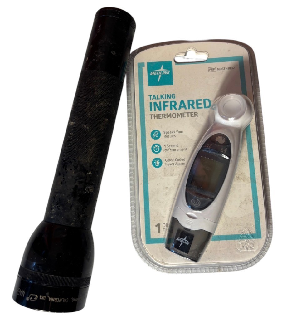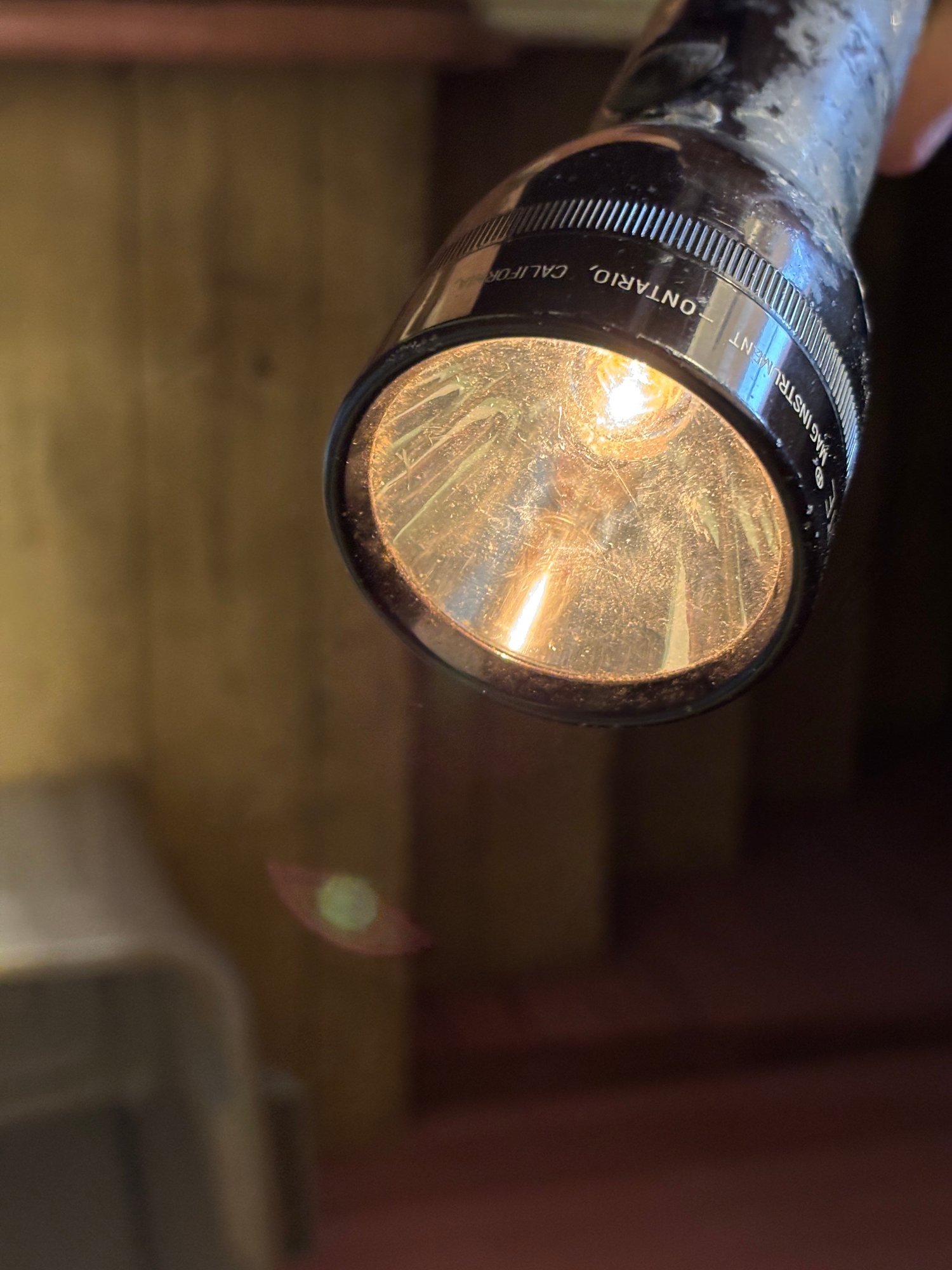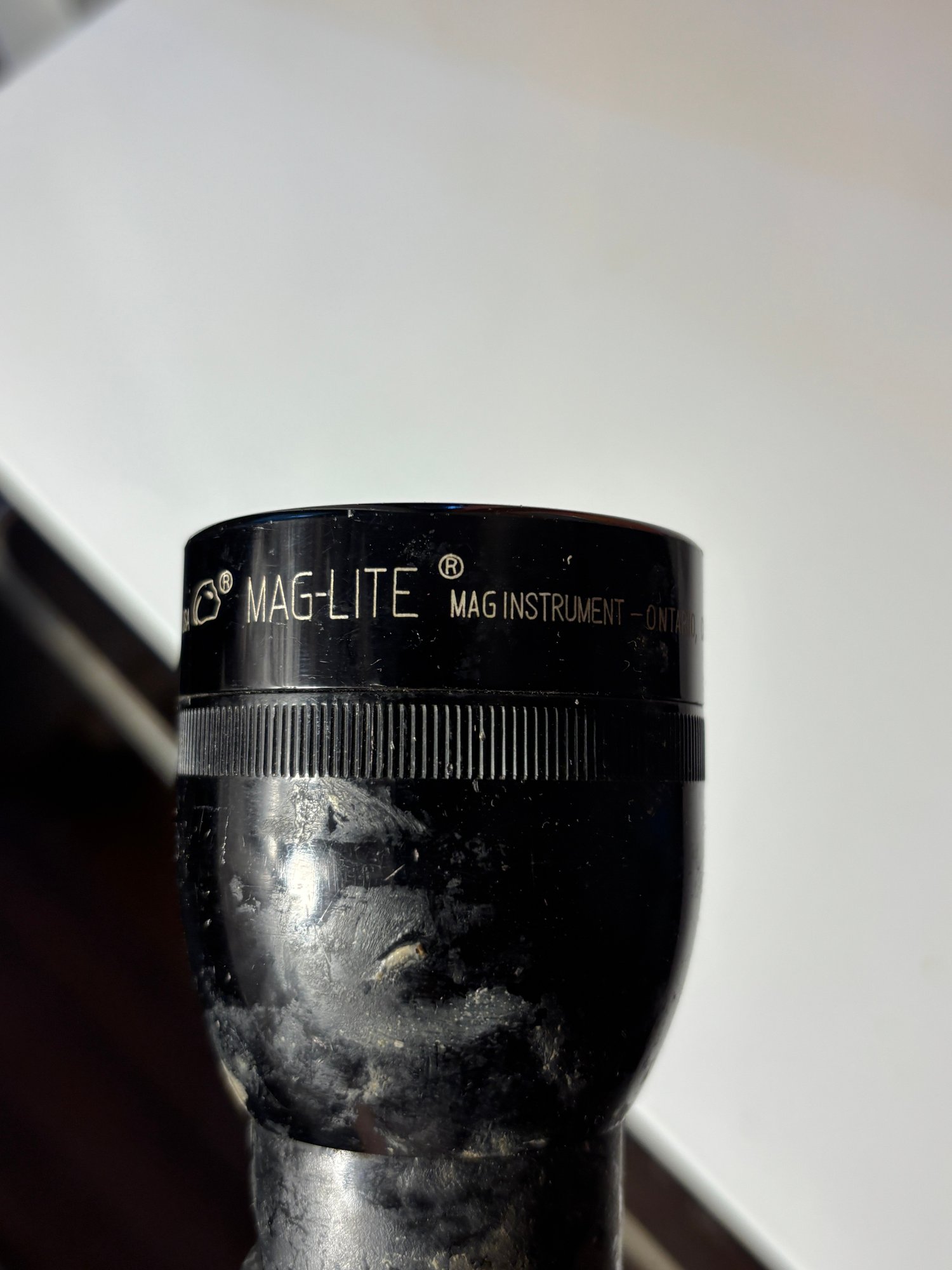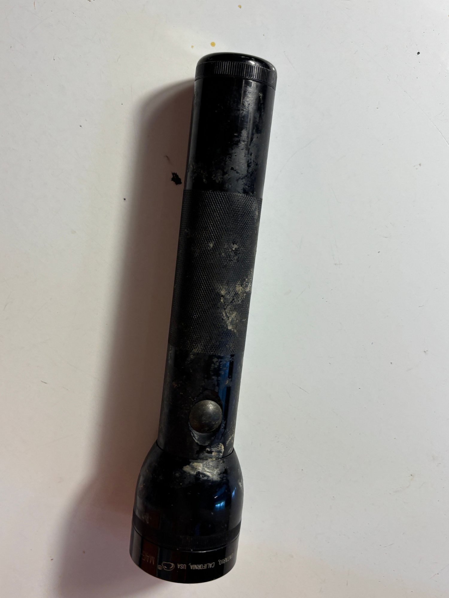 Flashlight is 10” long and works but needs bulb replaced current one is very dim