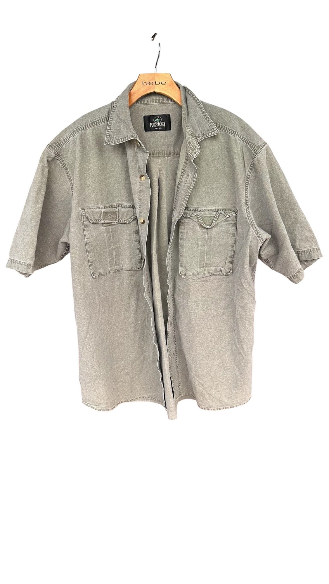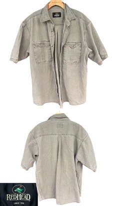 Rugged RedHead outdoor shirt in a washed gray tone with dual chest pockets and button-up front. Durable cotton build, ideal for casual wear or outdoor activities.