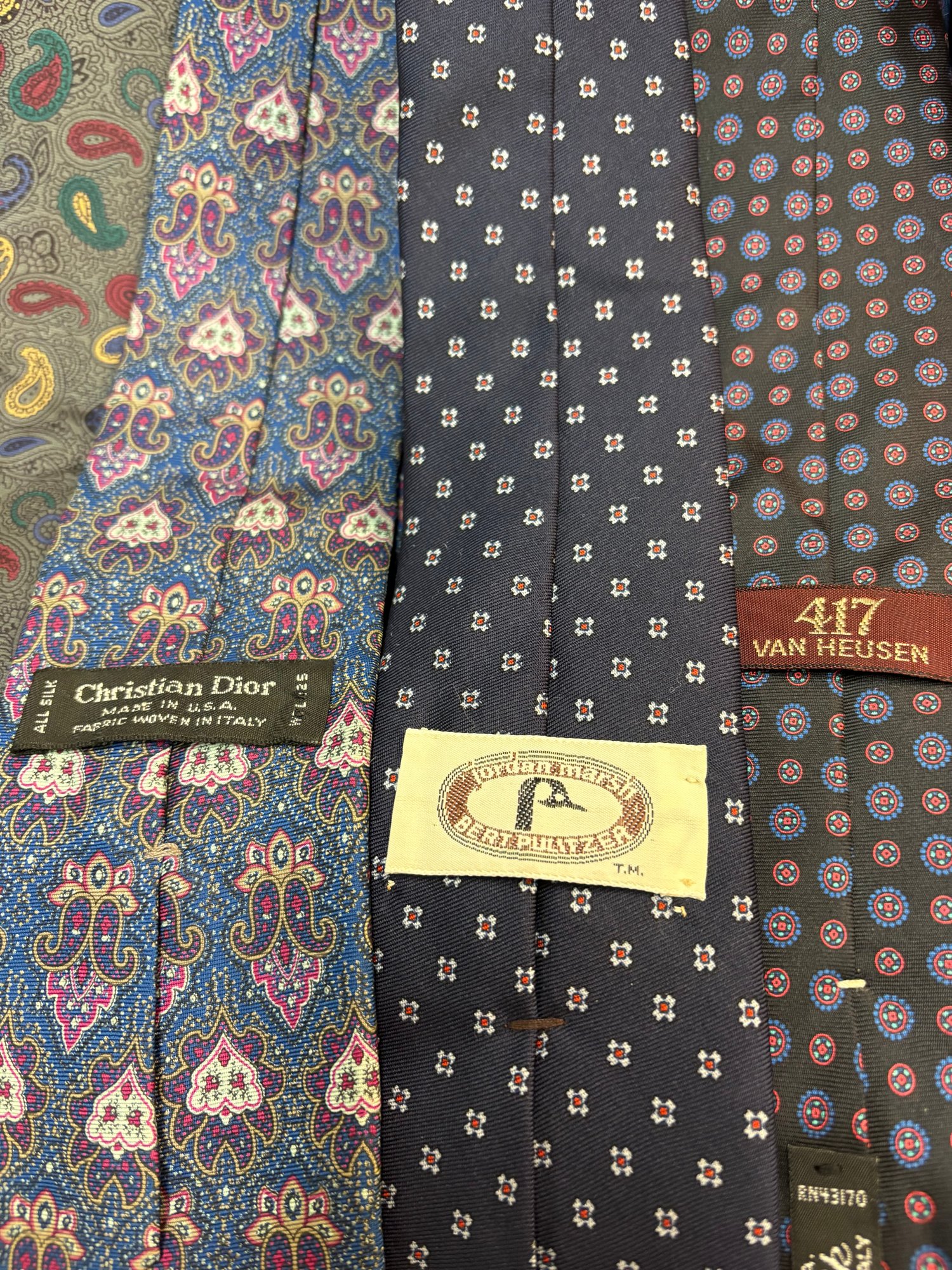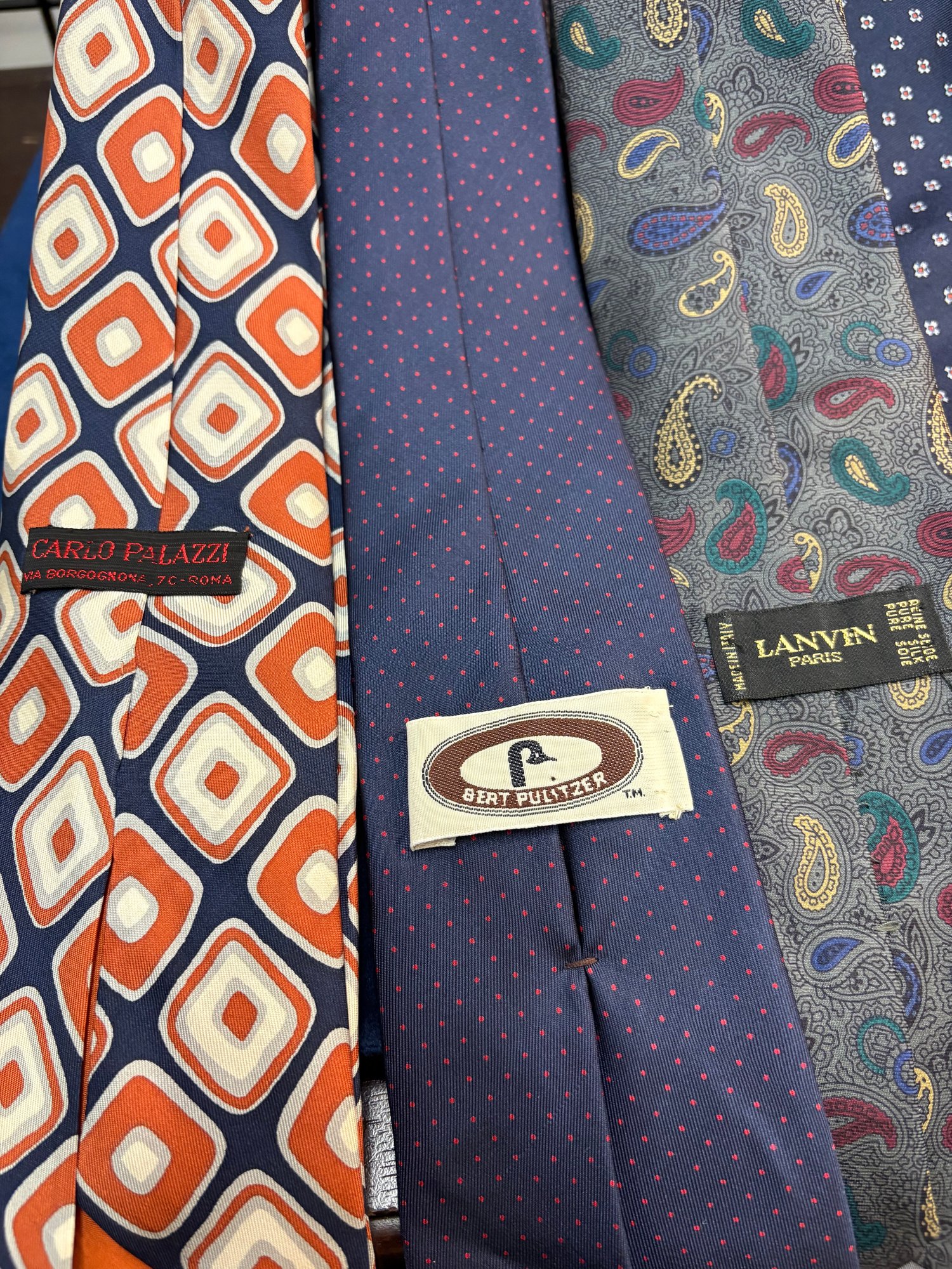12 men’s ties. 6 of them are marked silk. Good shape no apparent stains