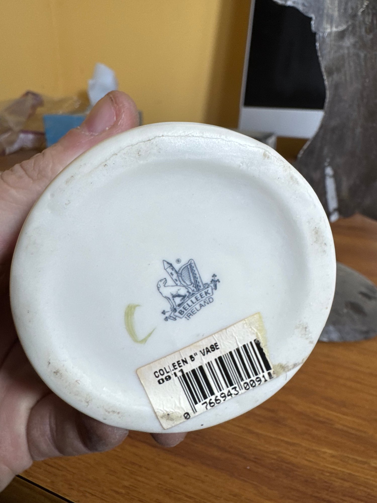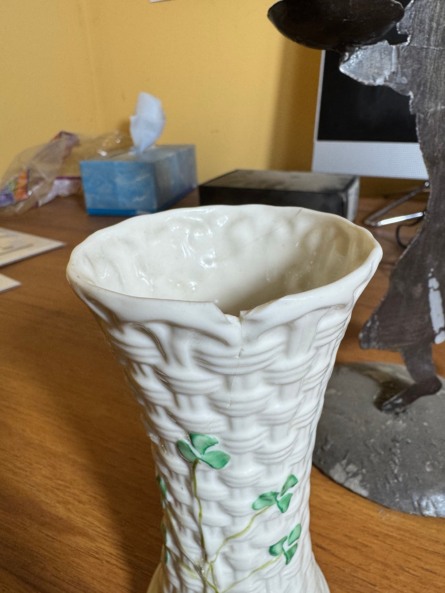 belleek vase is chipped, cracked & has repairs