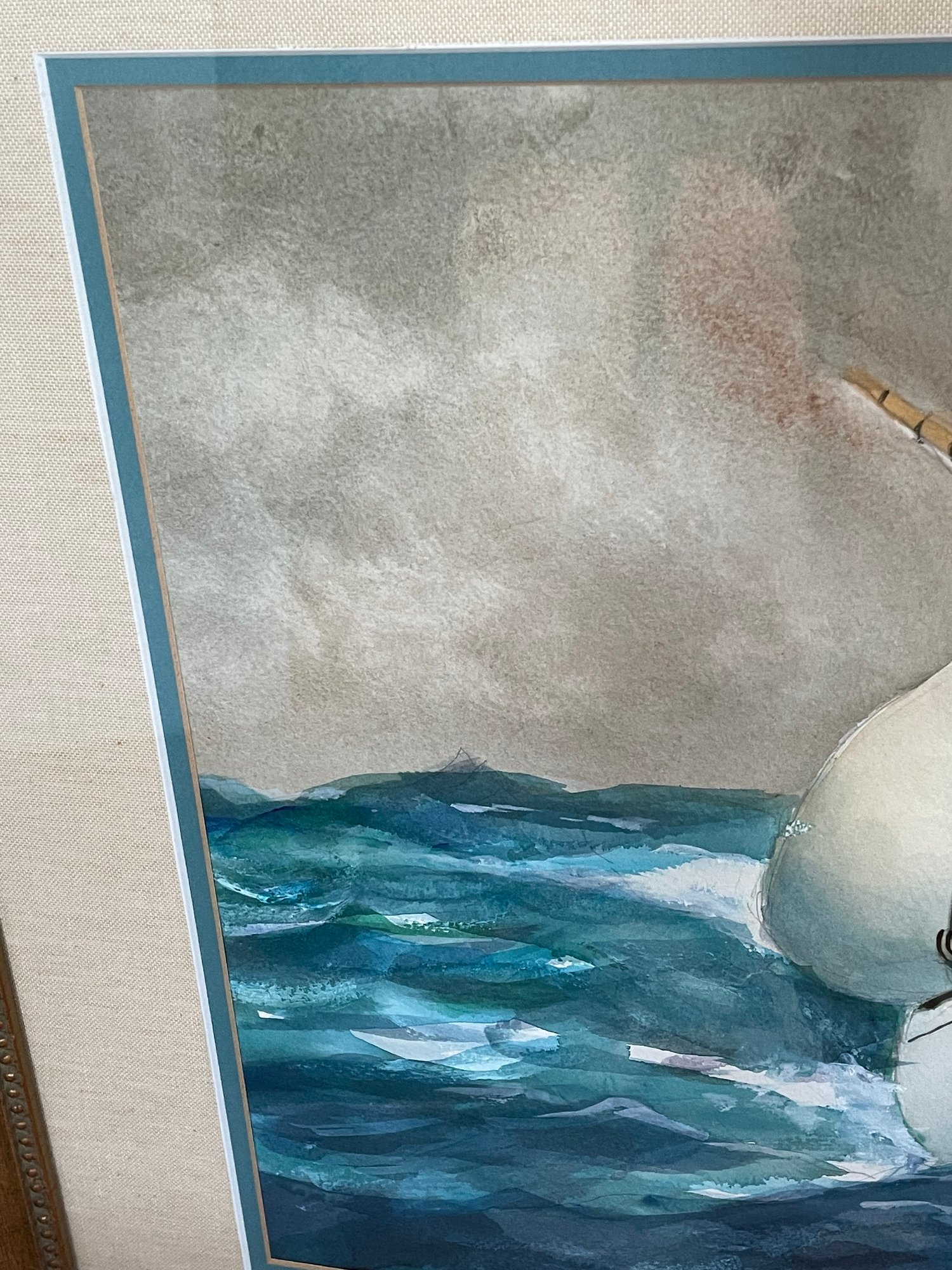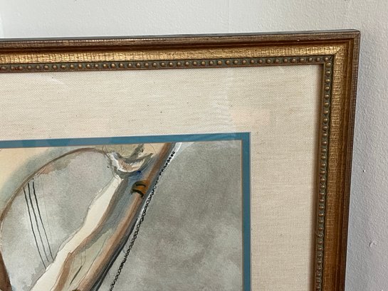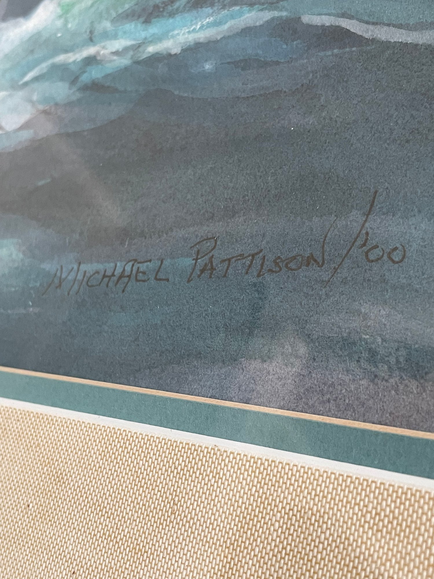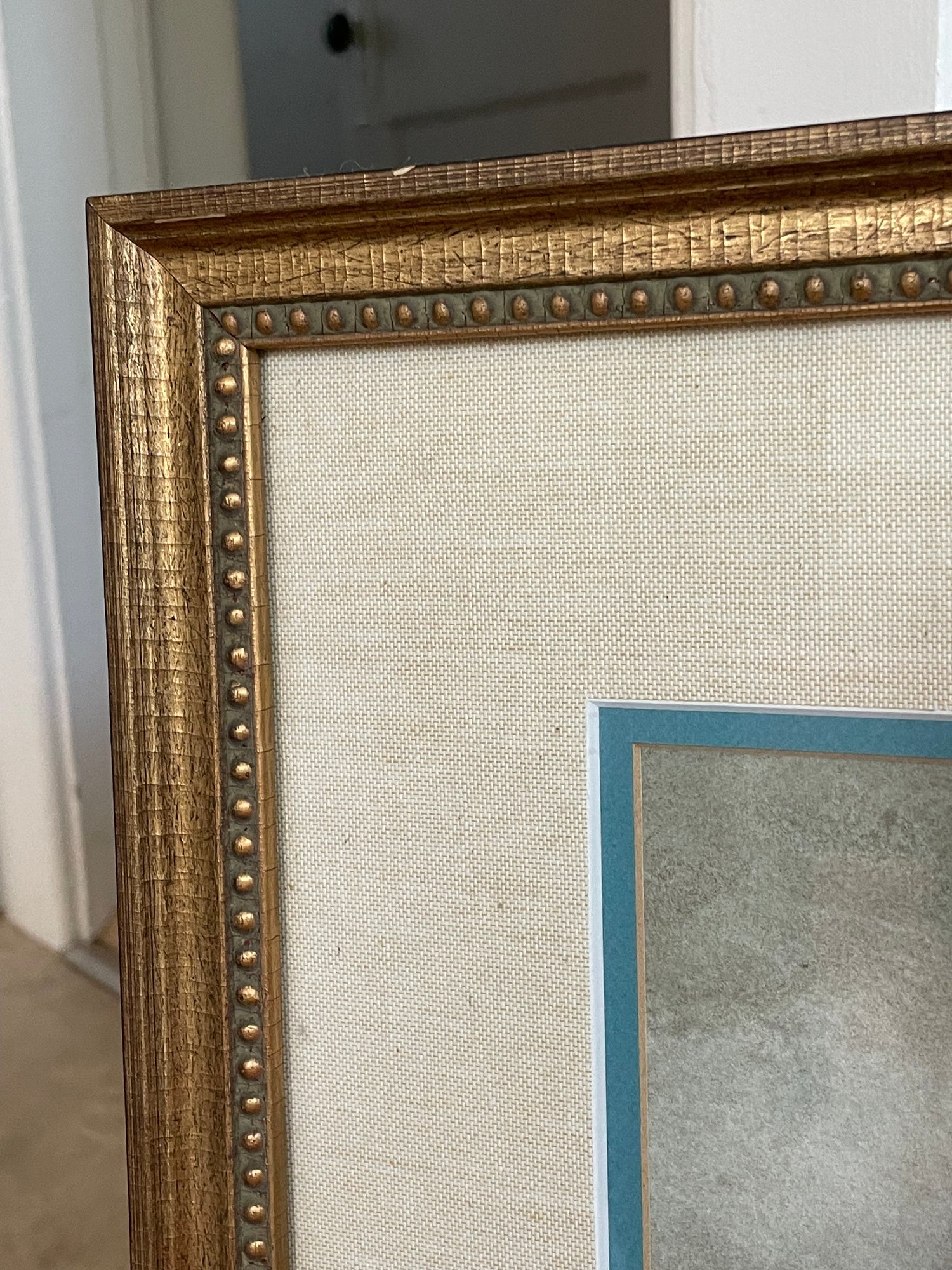Original watercolor by Michael Pattison, embellished gold frame & matted in linen