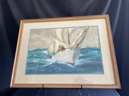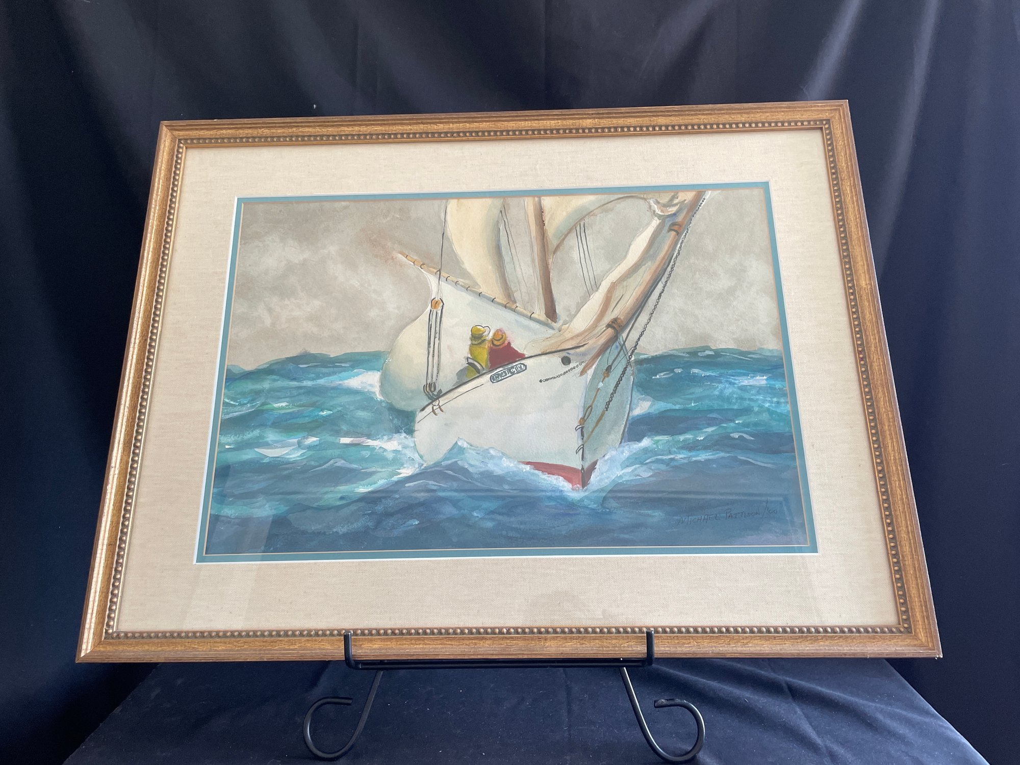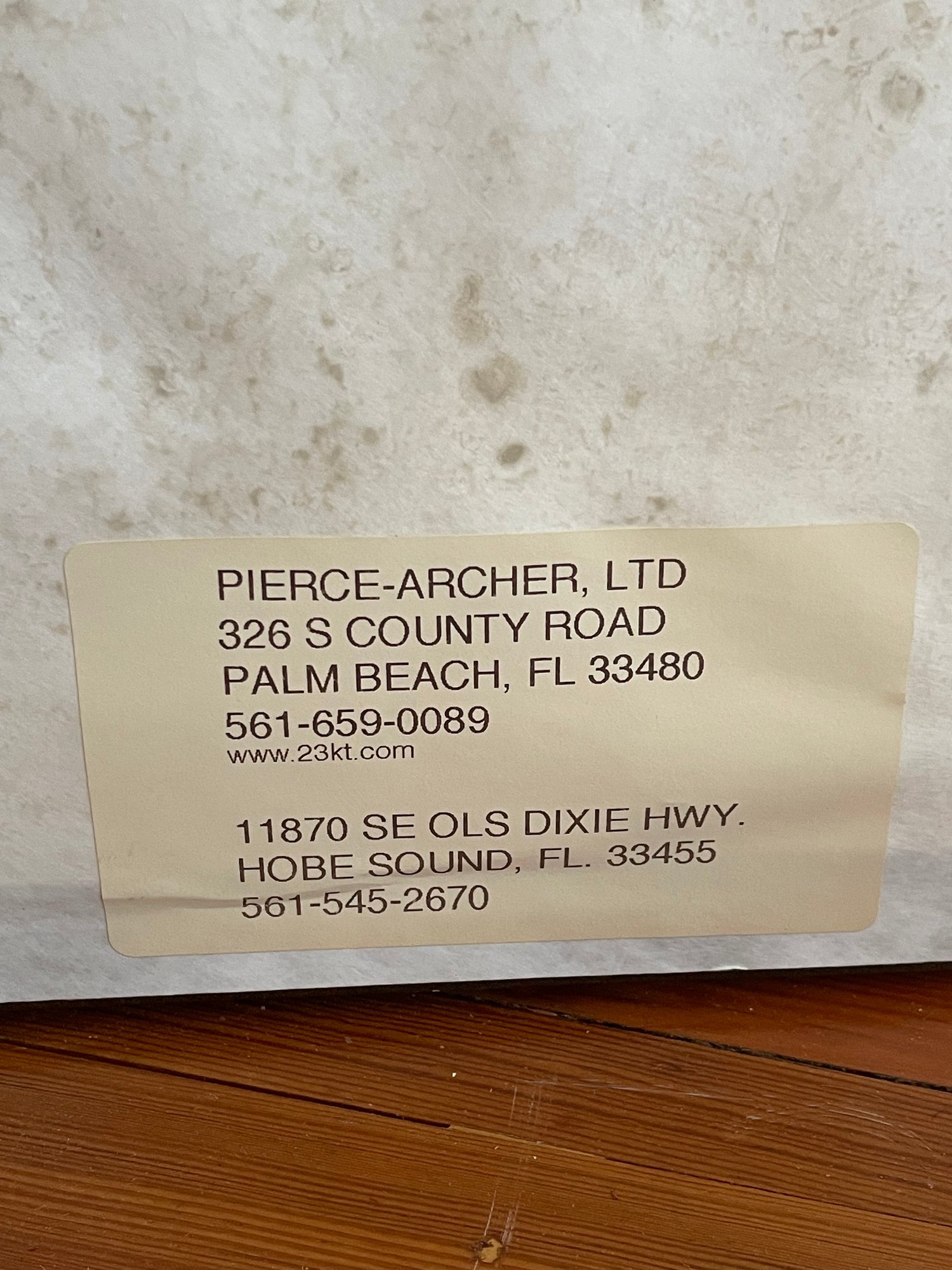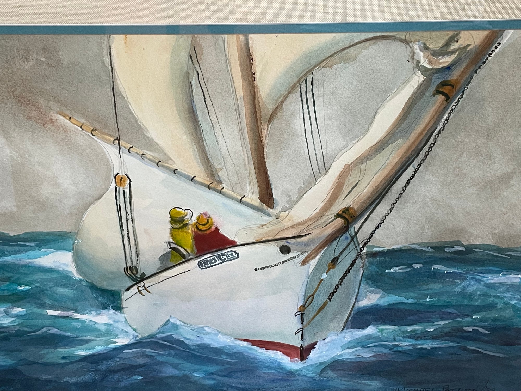 Original watercolor by Michael Pattison, embellished gold frame & matted in linen