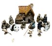 Miniature Asian figurines there’s a ceramic panda bear that’s about 2 inches of fisherman about 3 inches men having tea 3 inches and three birds about an inch each bird seem to be made of wood and the rest are ceramic