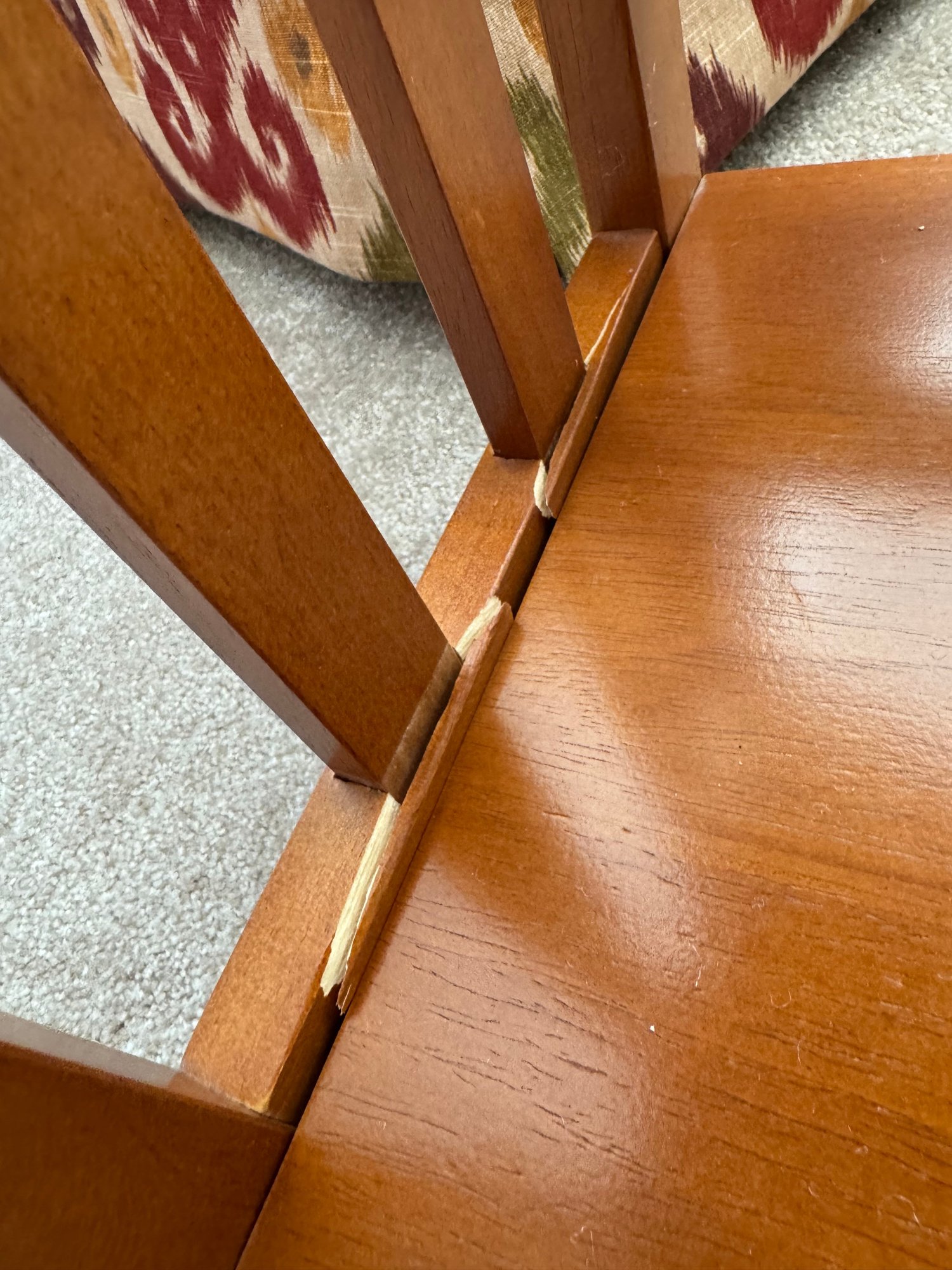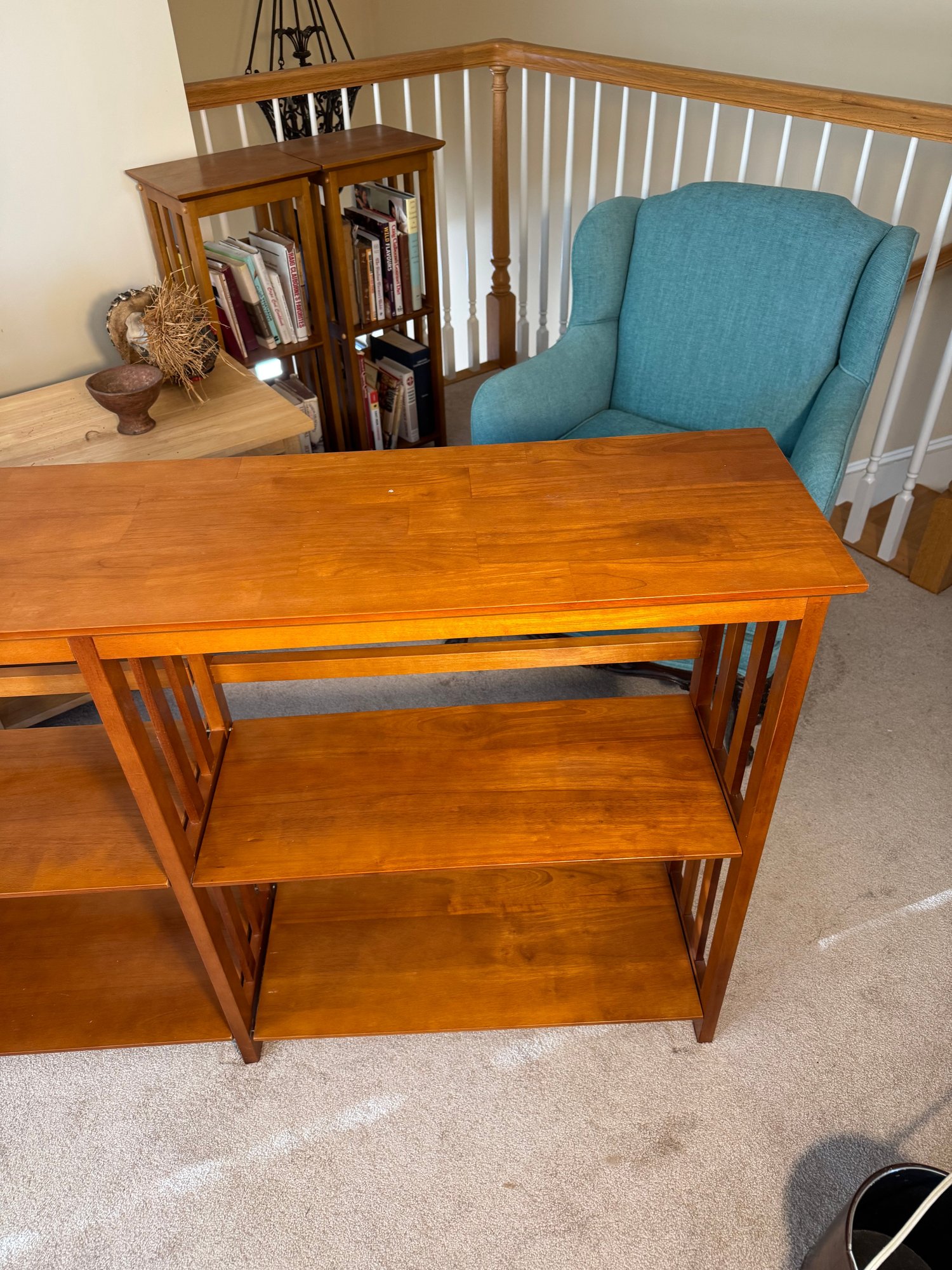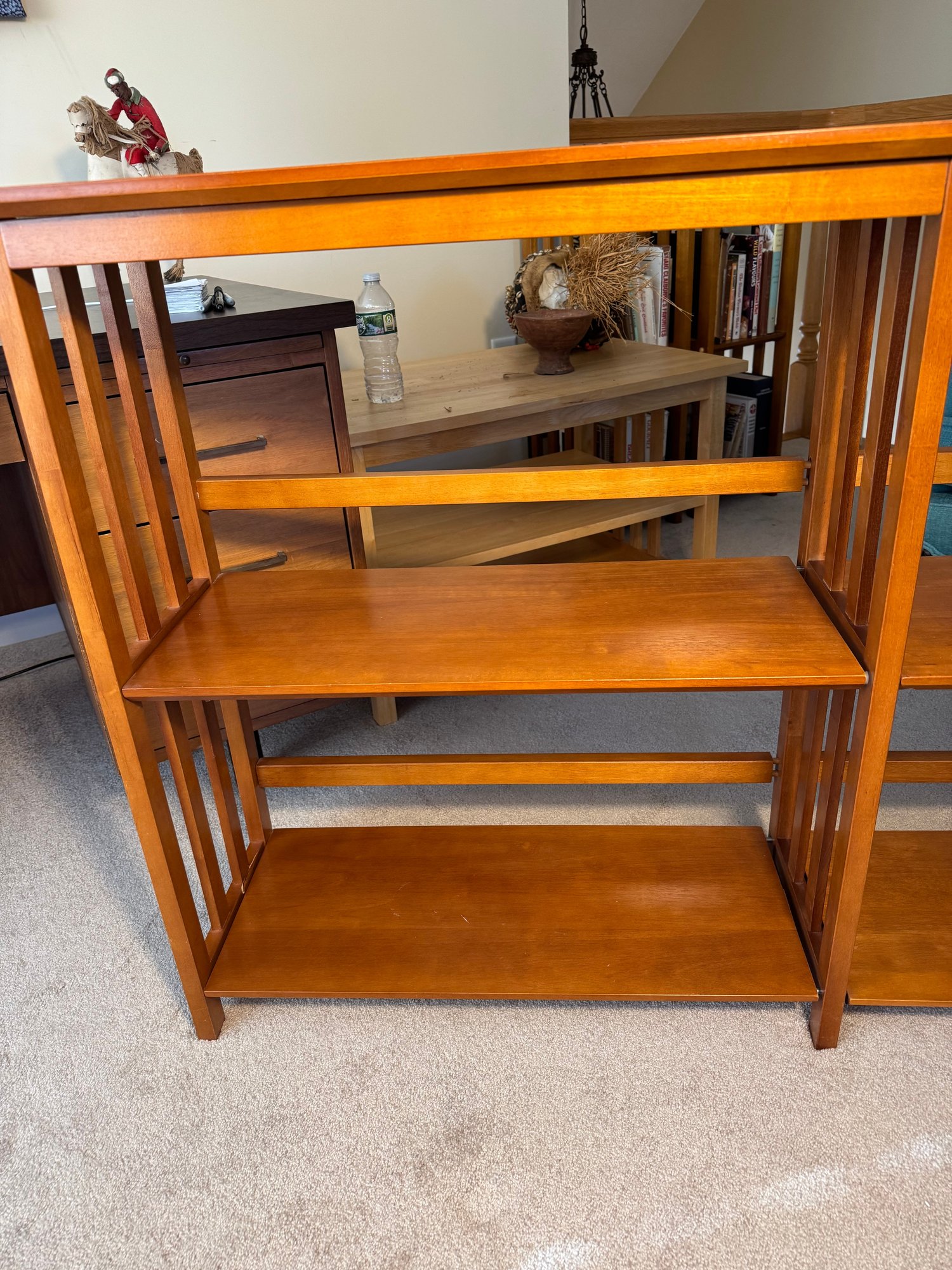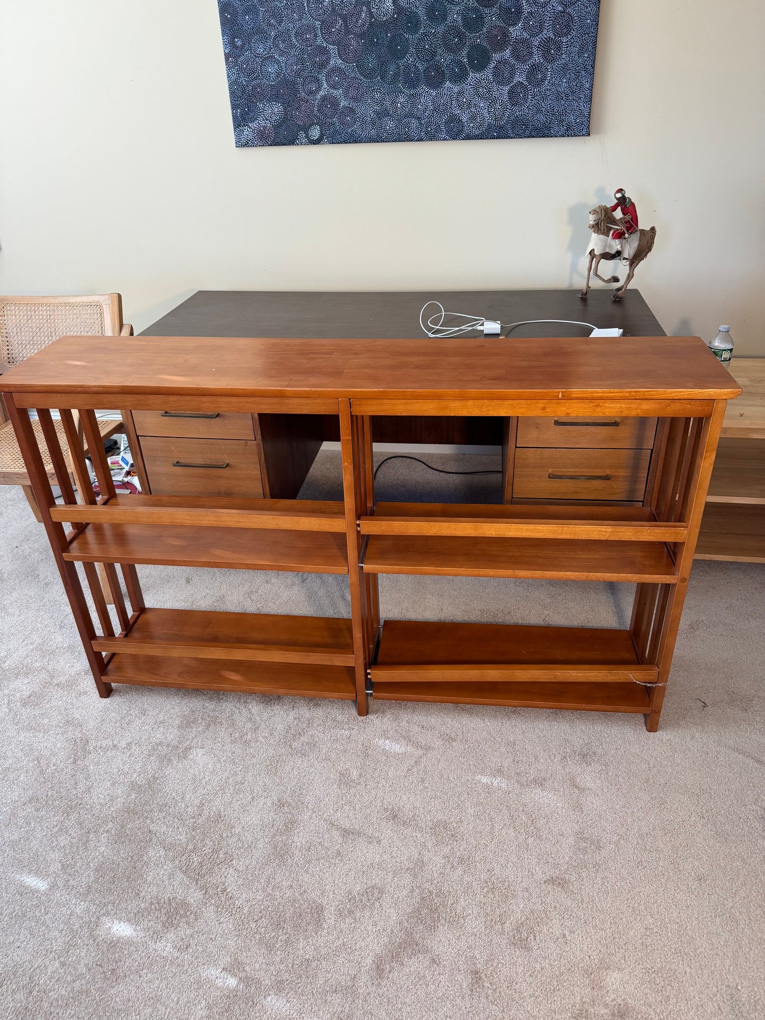 this shelf has some issues. when you try to move it, the two sides come apart & are not solidly together. some areas on the bottom are chipped. it’s possible it just needs to be taken apart and put back together. see photos.