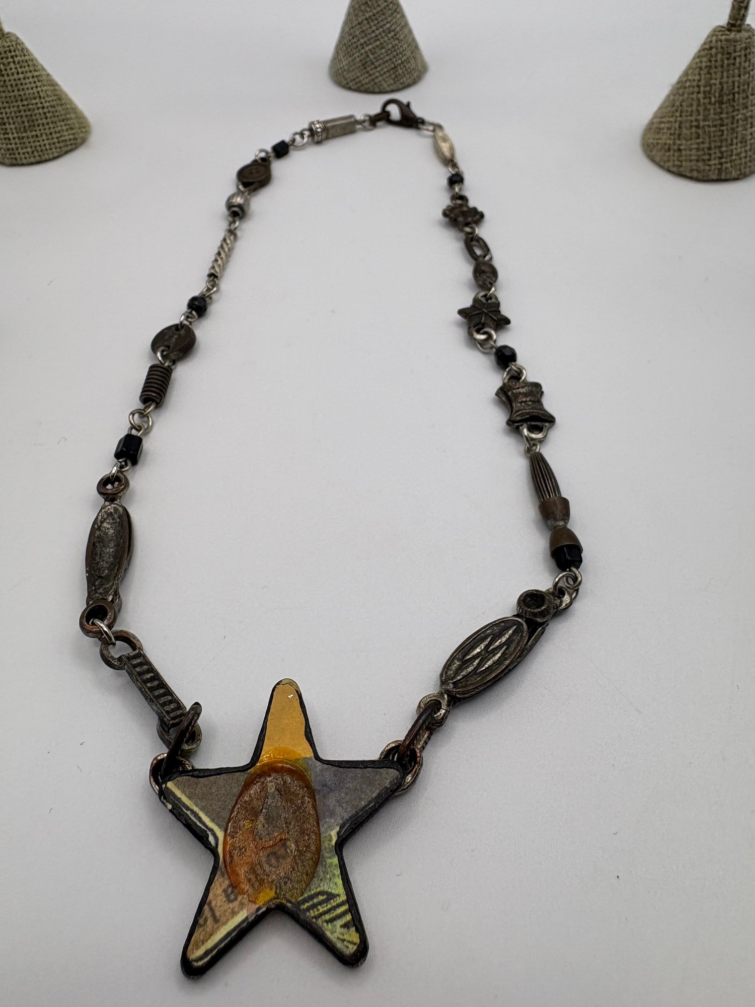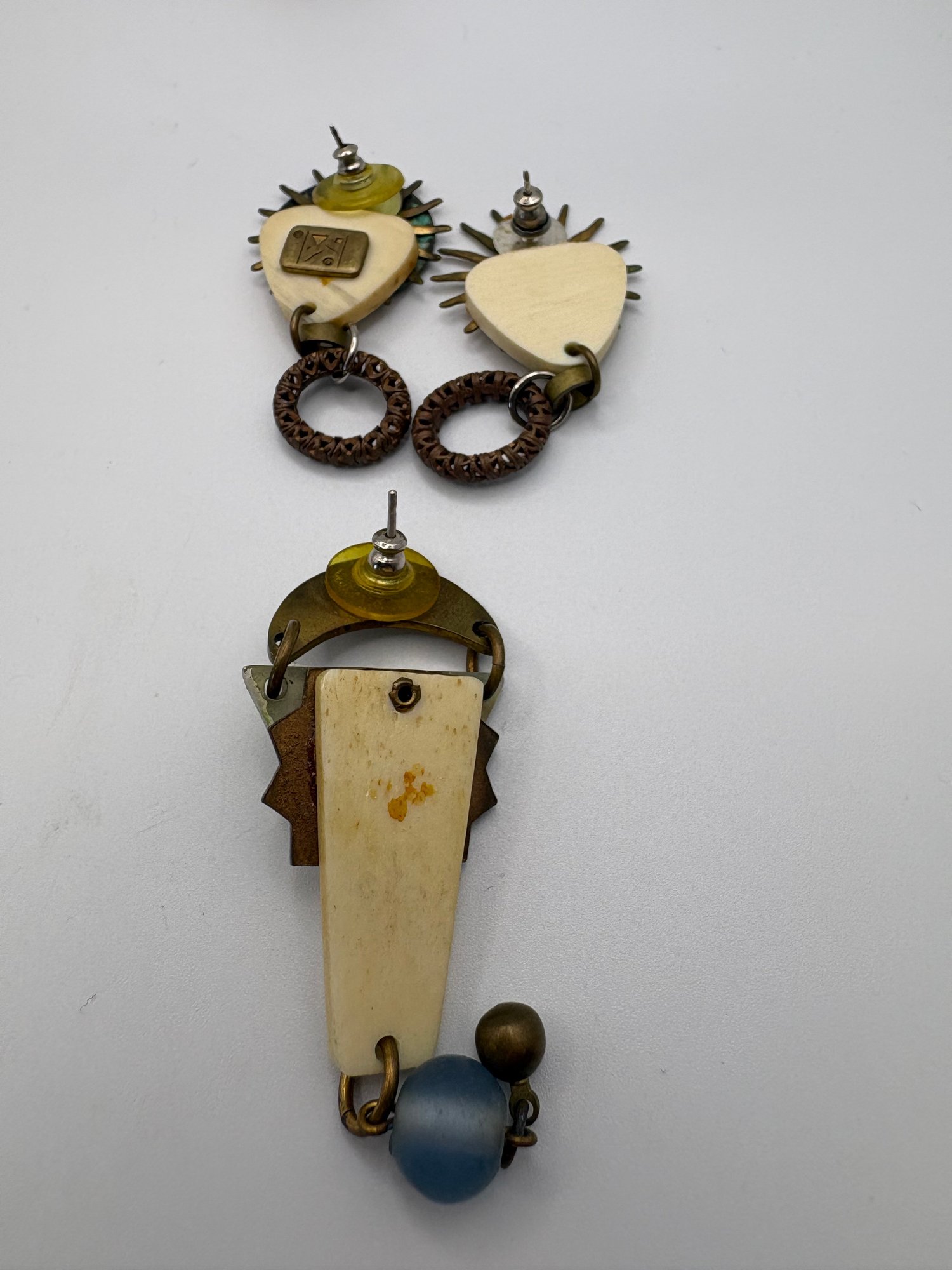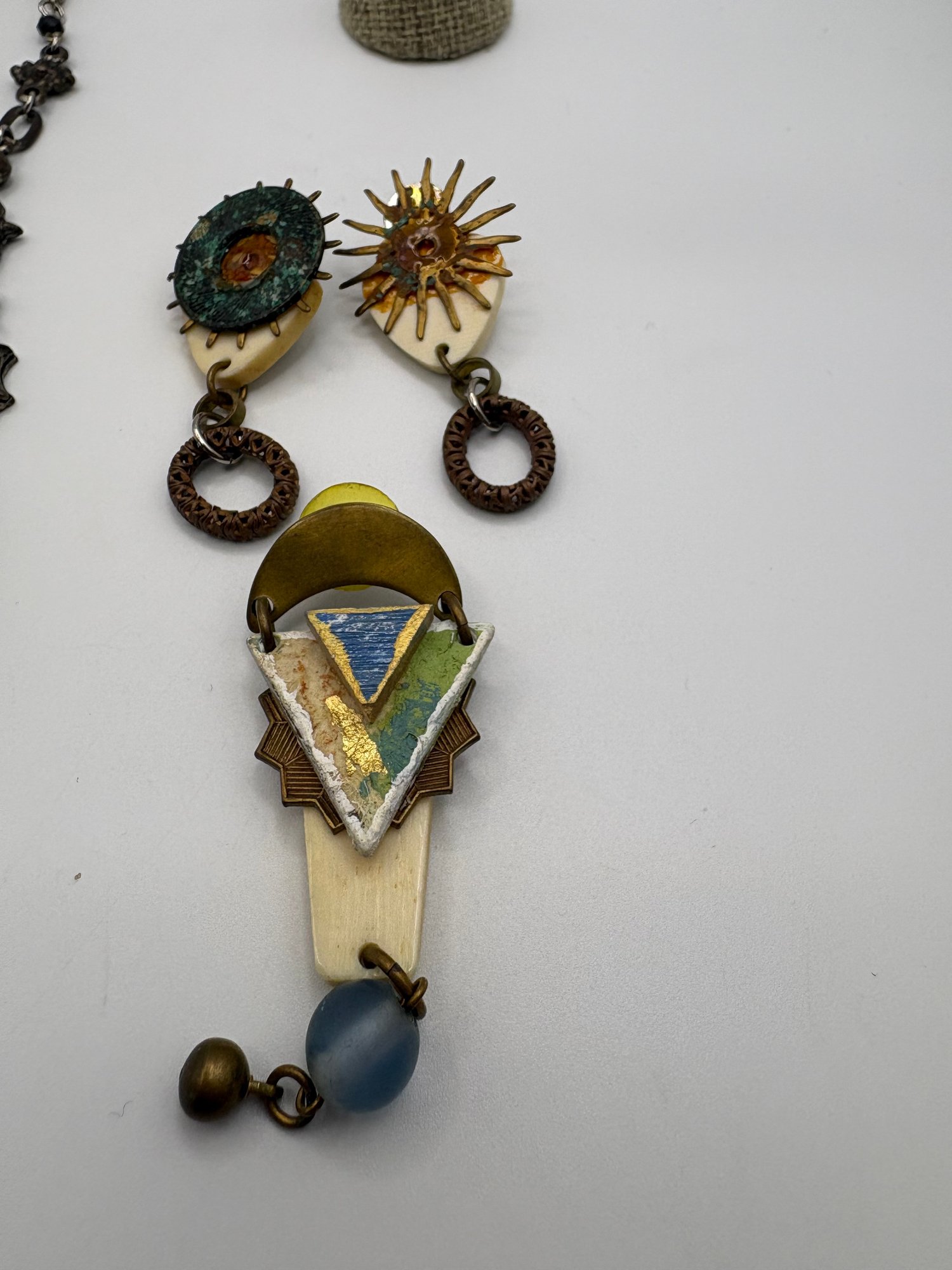 Mixed jury, some events, handmade, and funky, and a bunch of pieces can be used to make your own jewelry so for the jewelry maker and someone who doesn’t have piercings, there’s three twist or clip on earrings another set of earrings that have posts a cool, handmade necklace, and some funky earrings