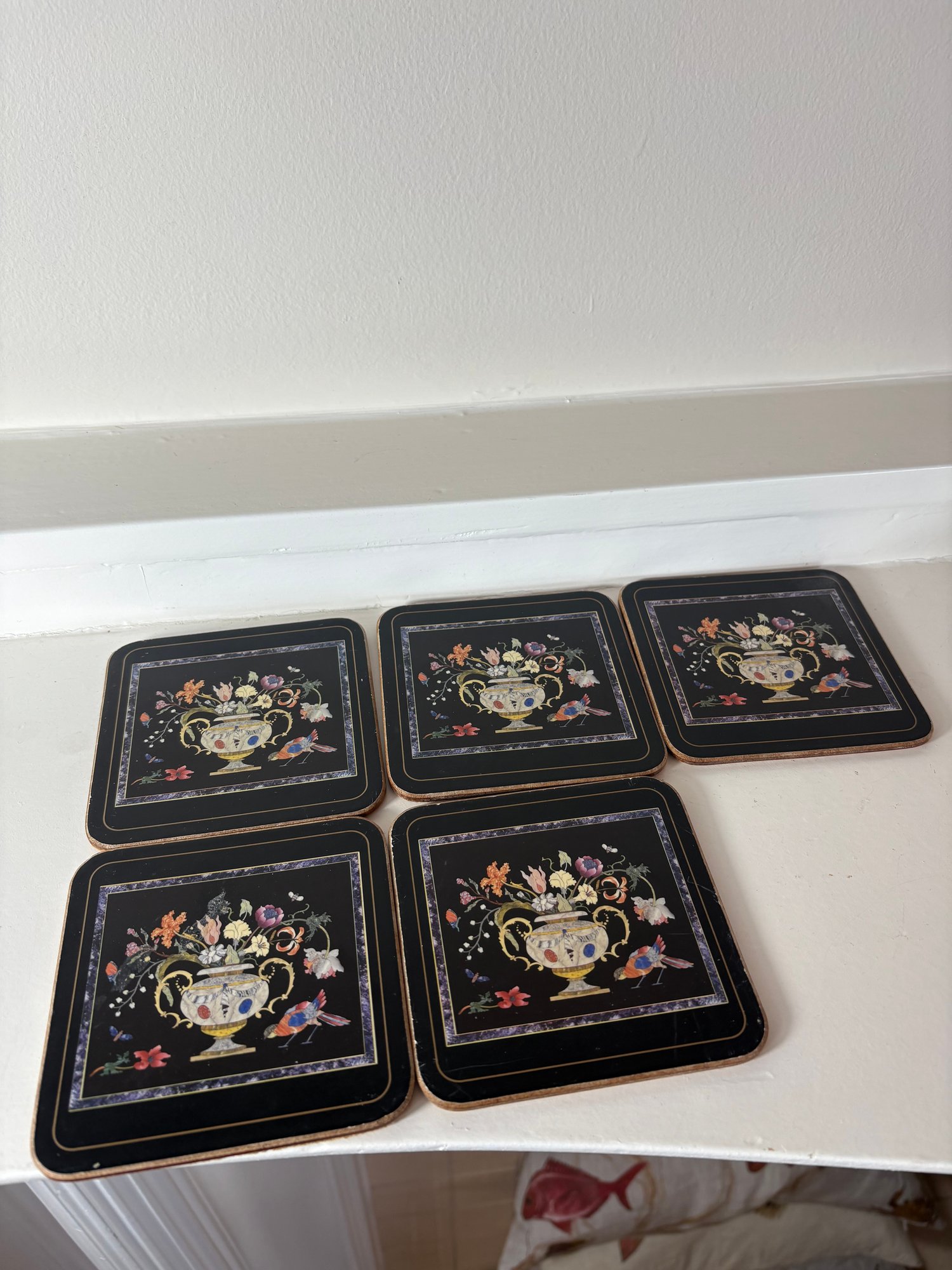 Pimpernel Black Floral Design Decorative Coasters 5pc (DR)