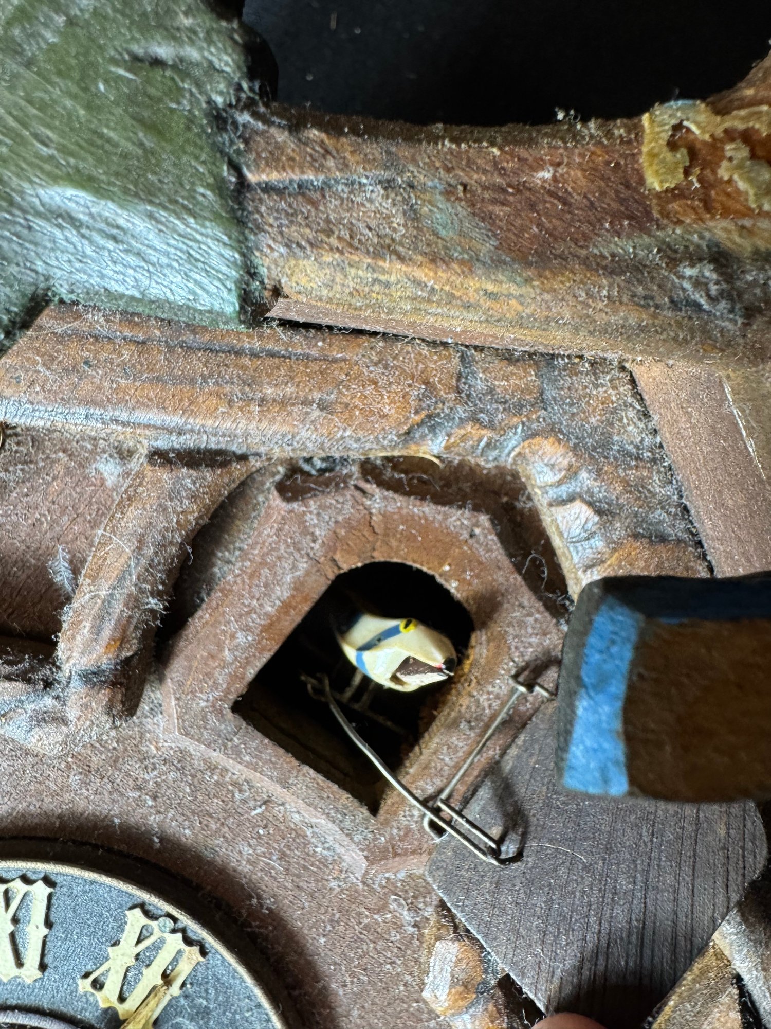 bird on front needs to be glued back on