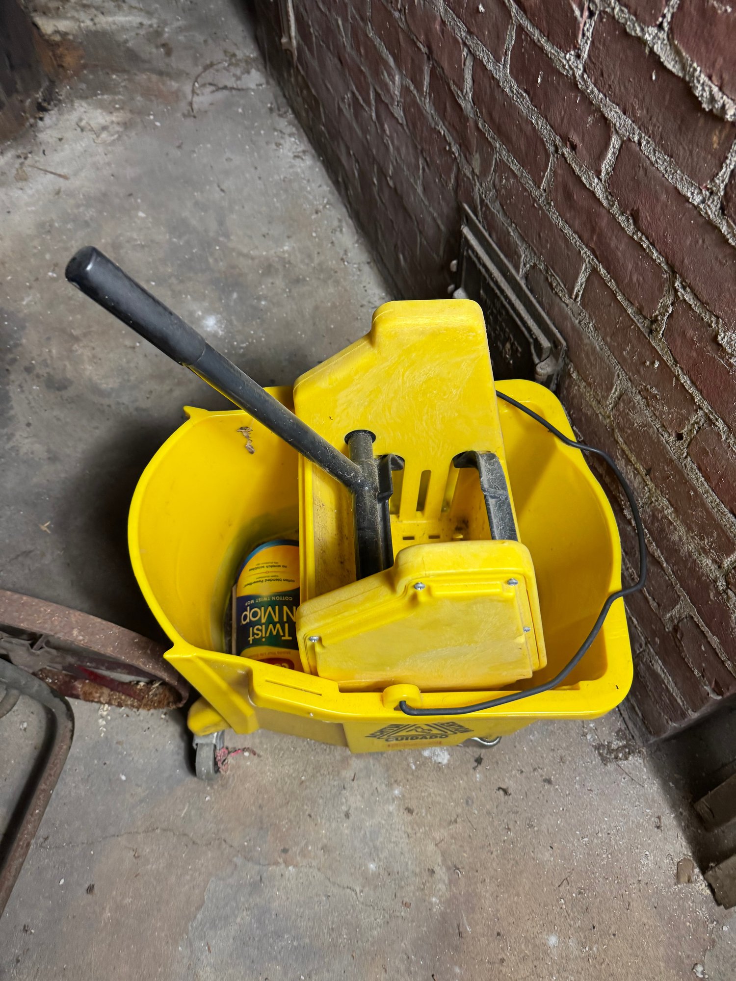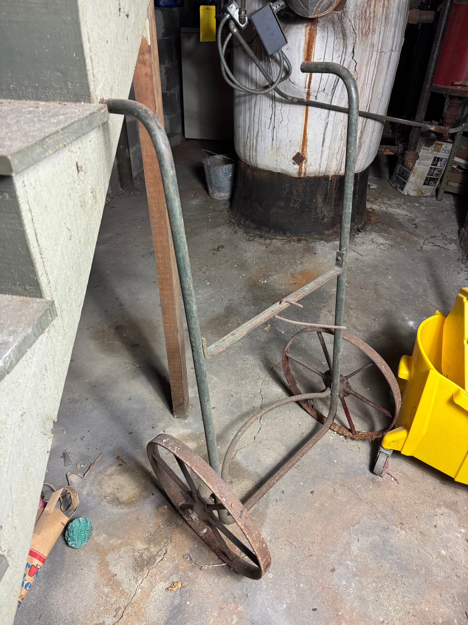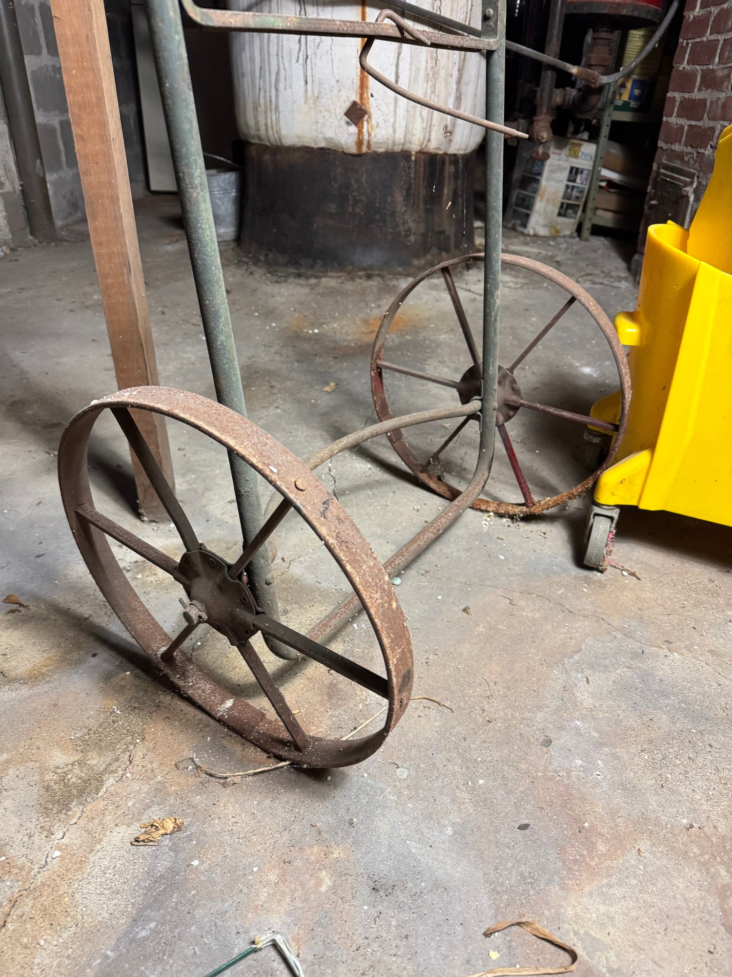 metal industrial rolling cart is approximately 42” tall & has some wear