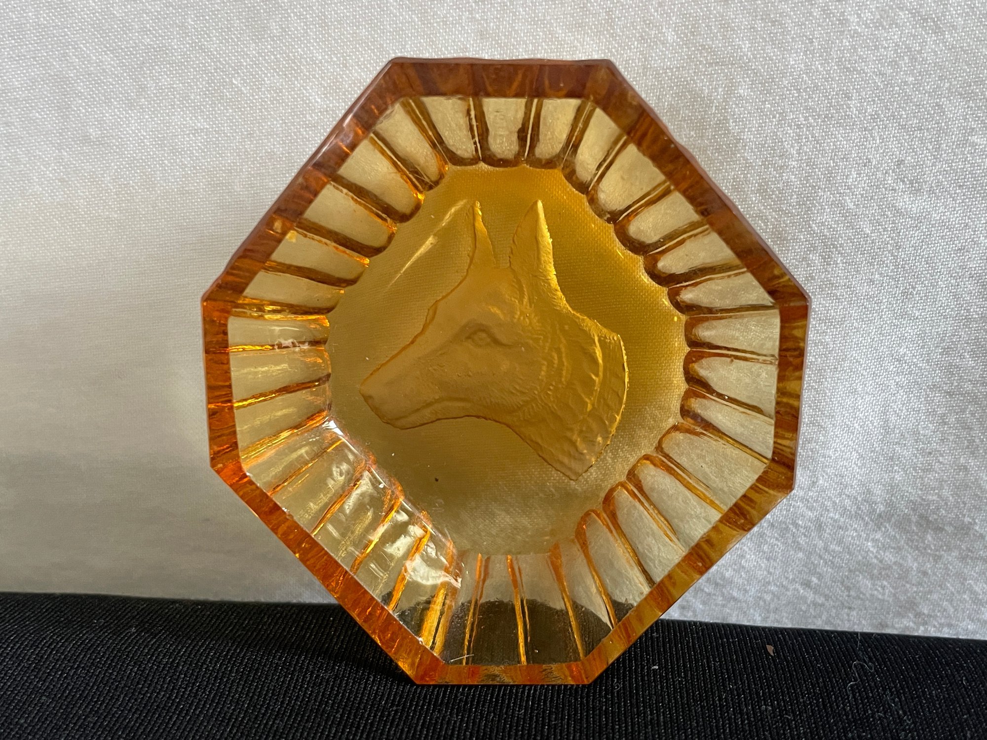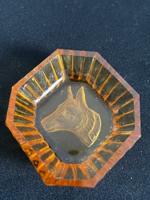 etched dog in frosted relief, 1950’s -70’s