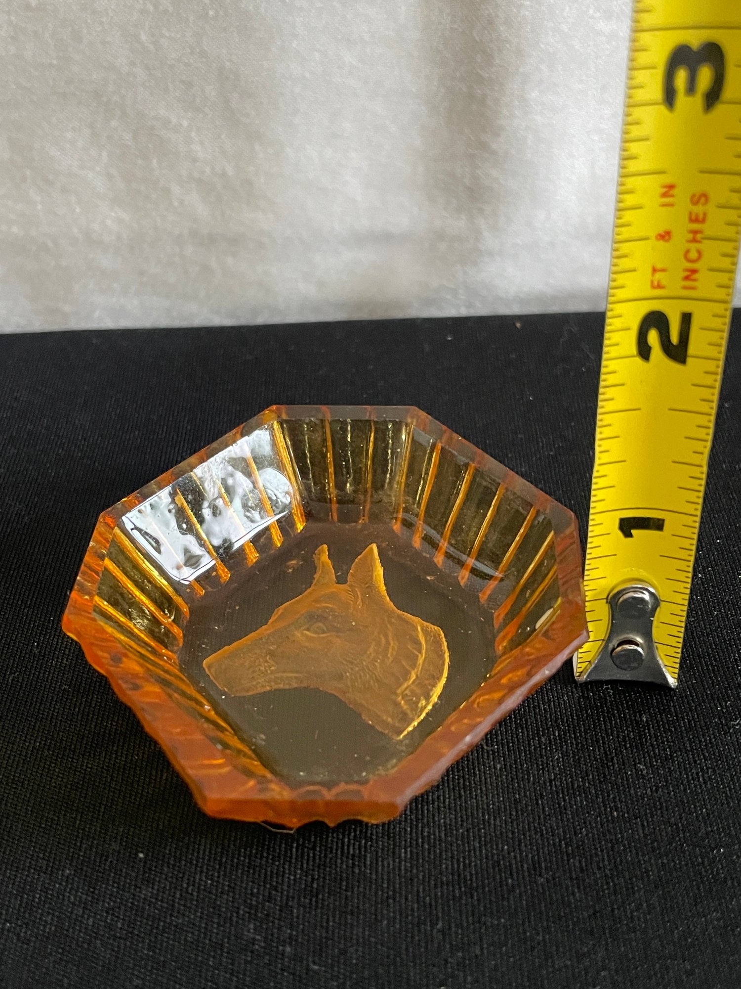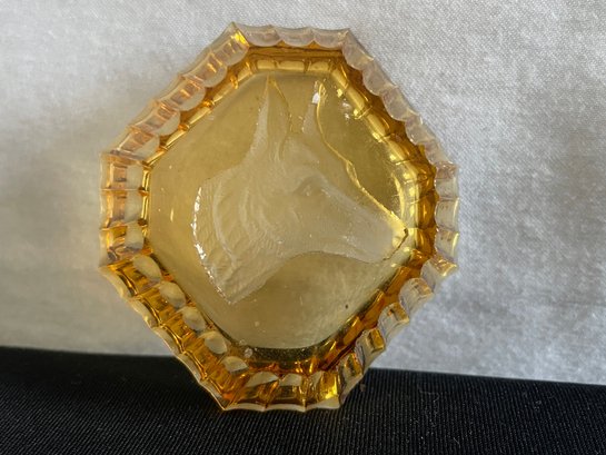 Carnival ? Glass amber colored trinket dish with