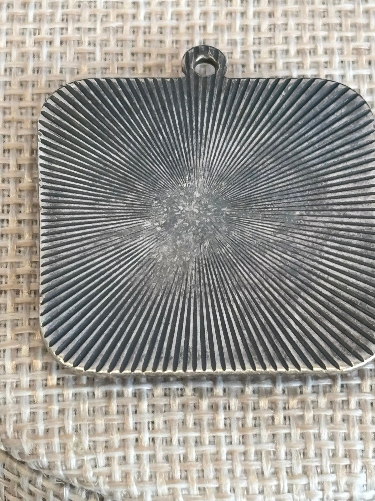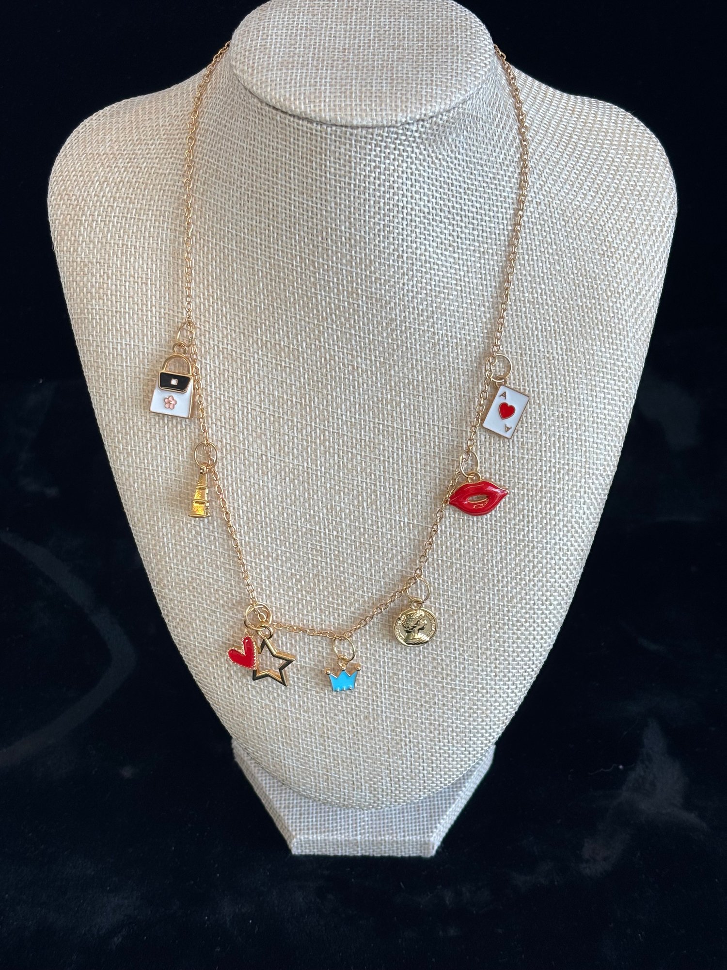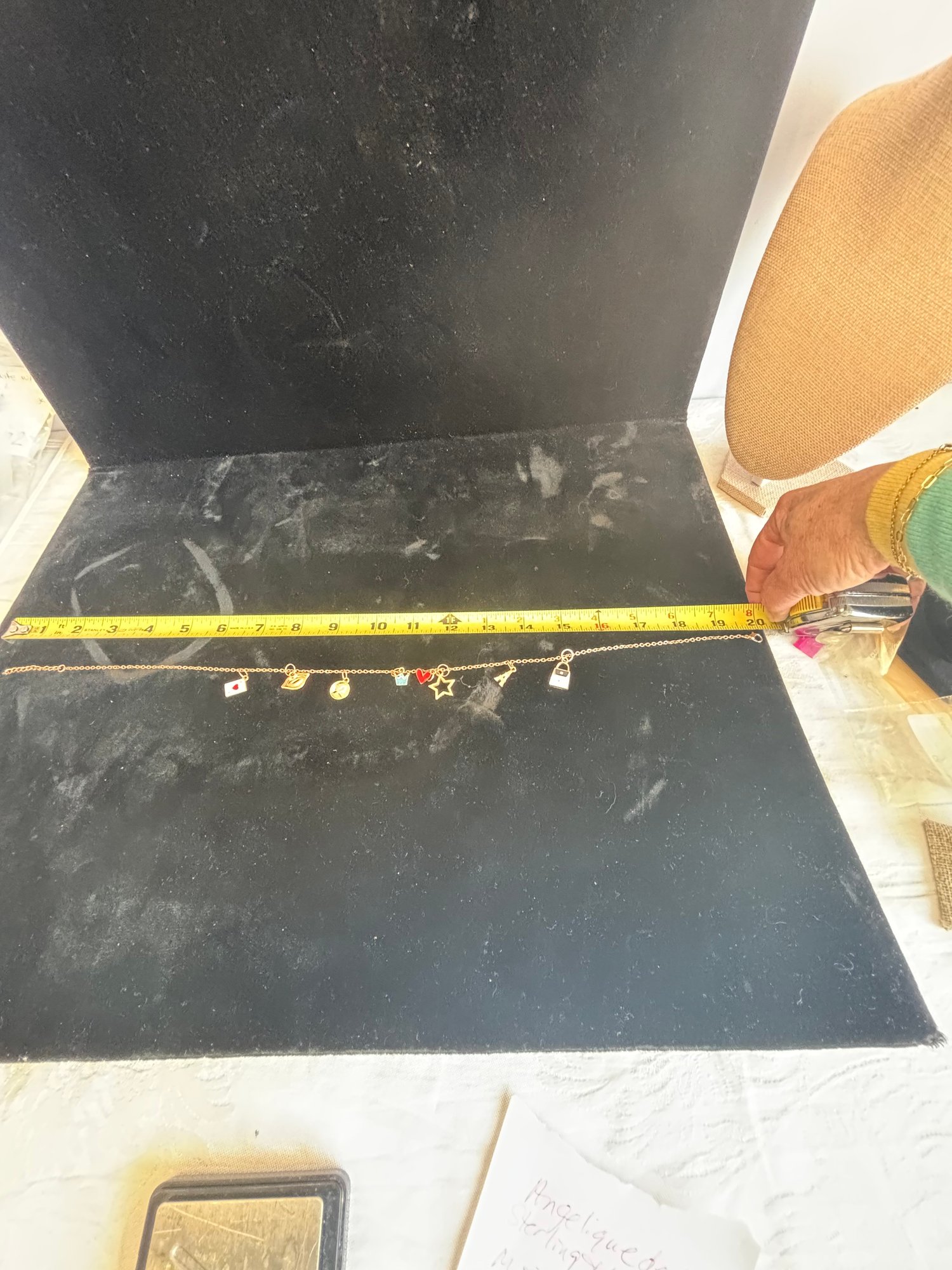 There are a couple of rhinestones missing from 'H' charm-shown; 1 3/16" square
