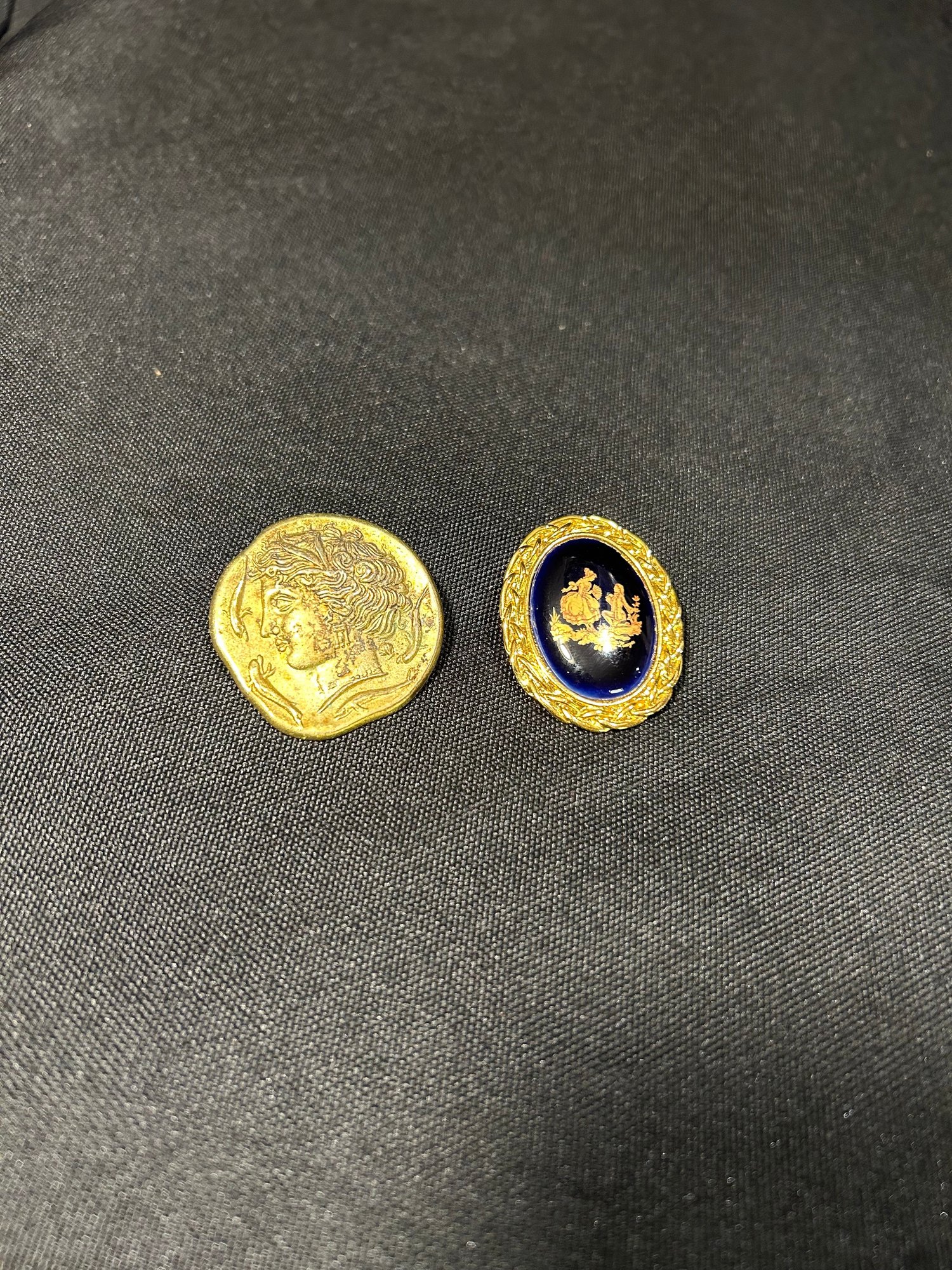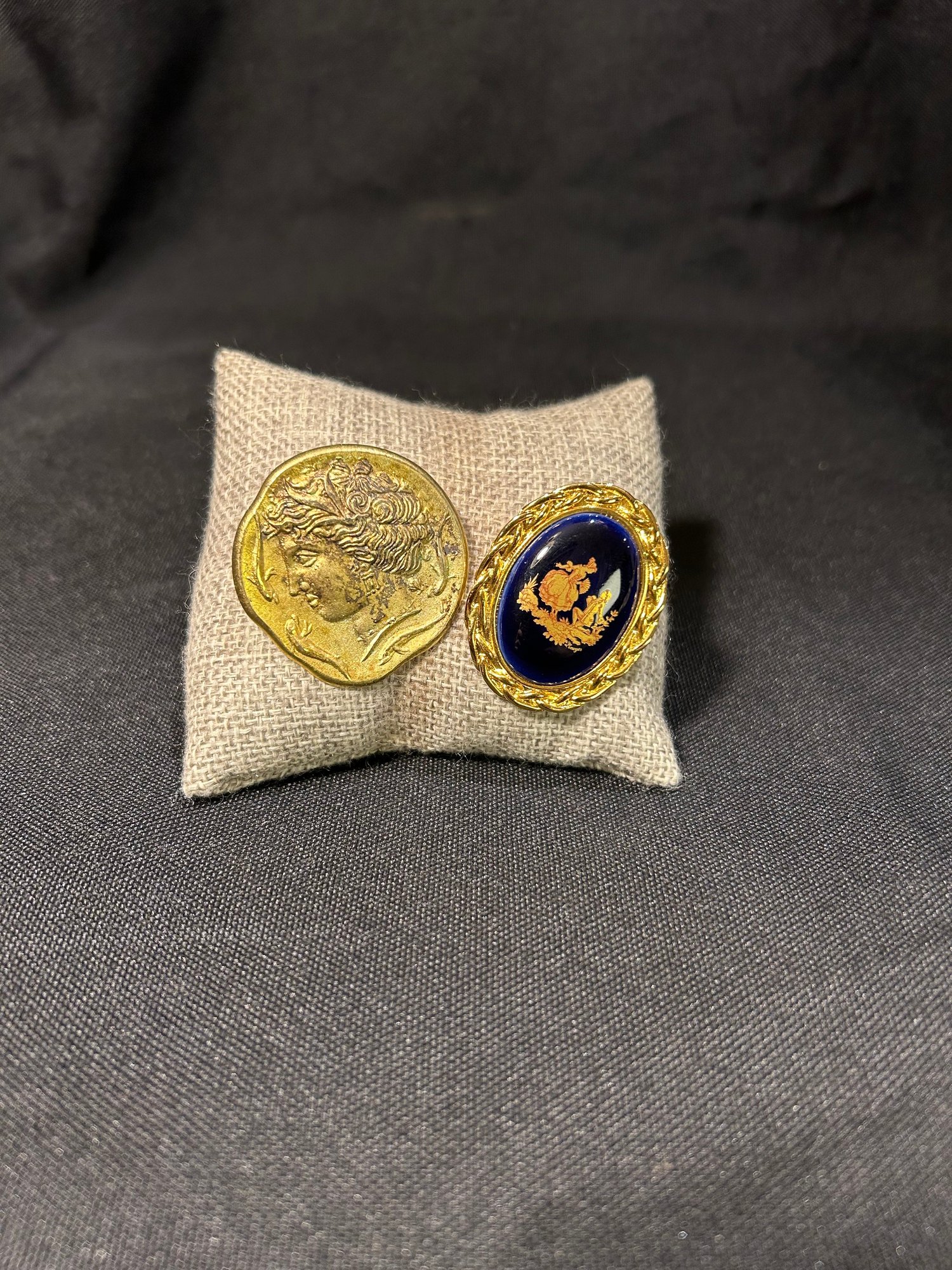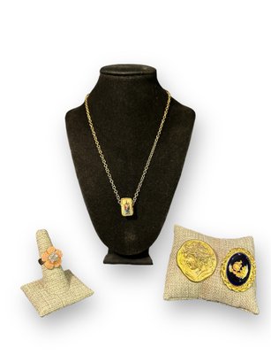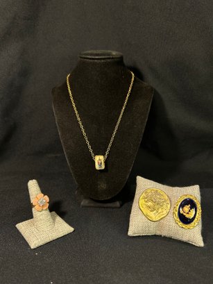 double sided necklace, ring, and 2x pins