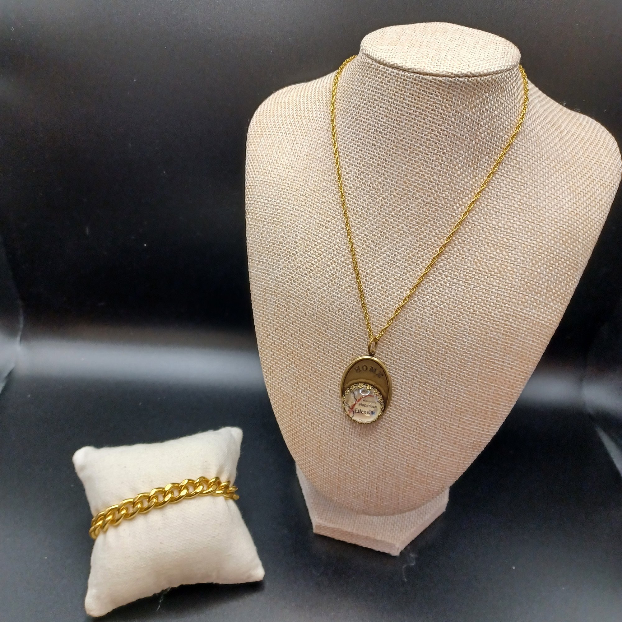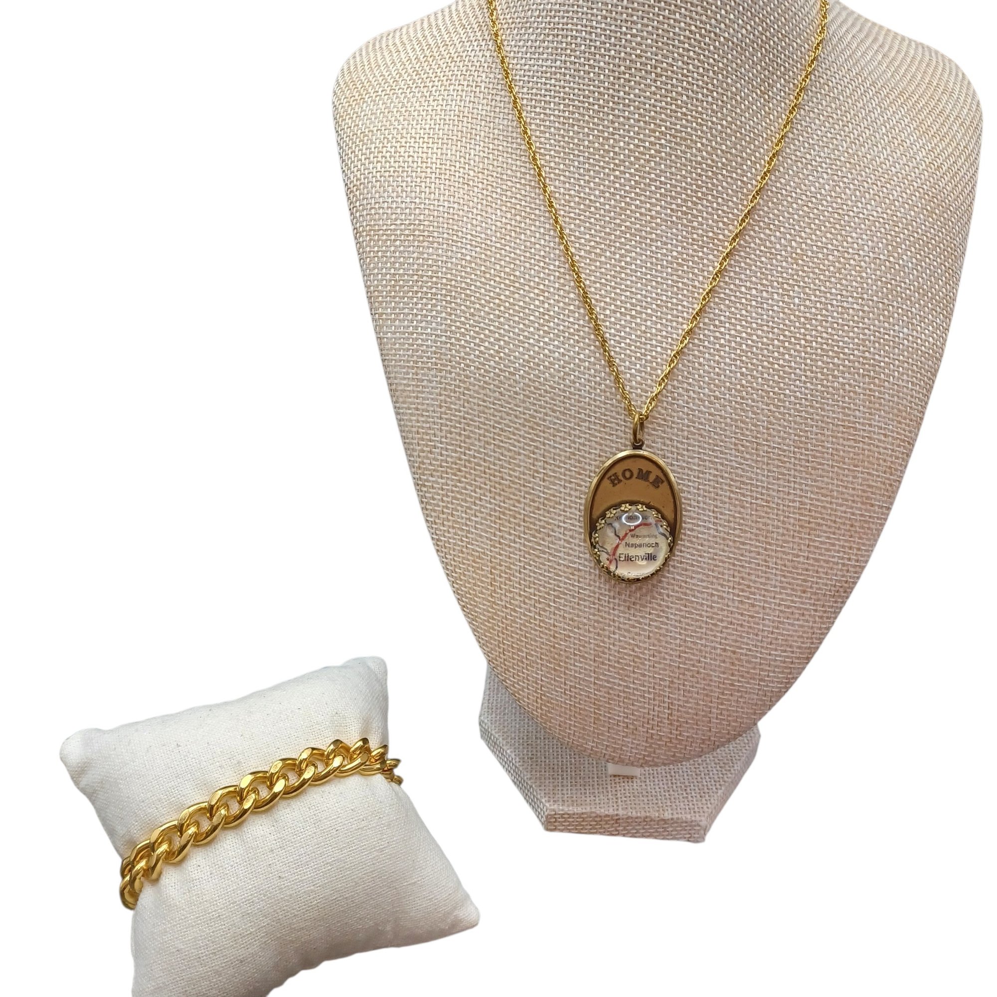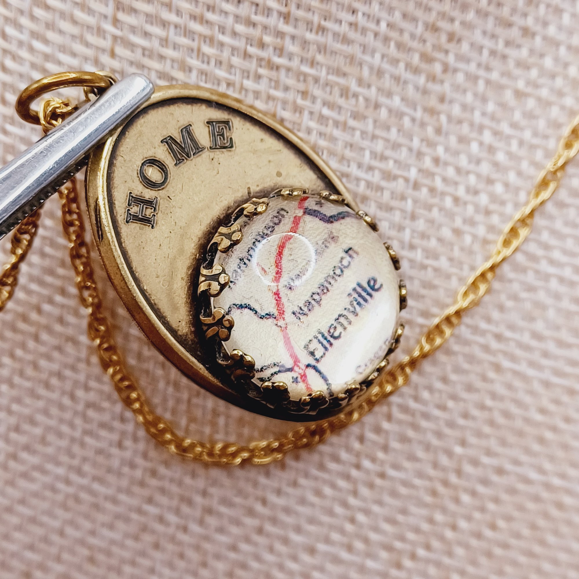Pendant is a map under a glass cabochon