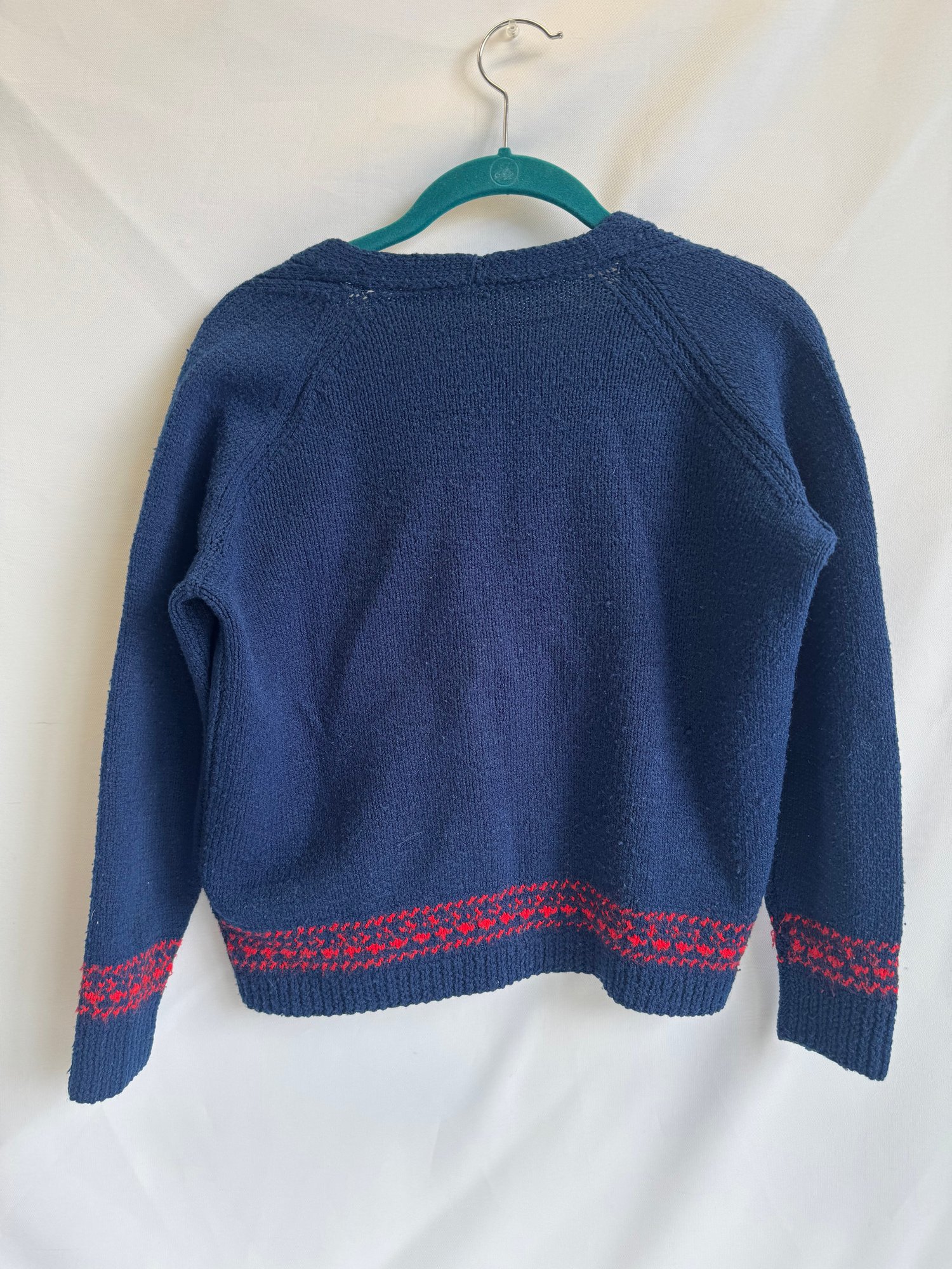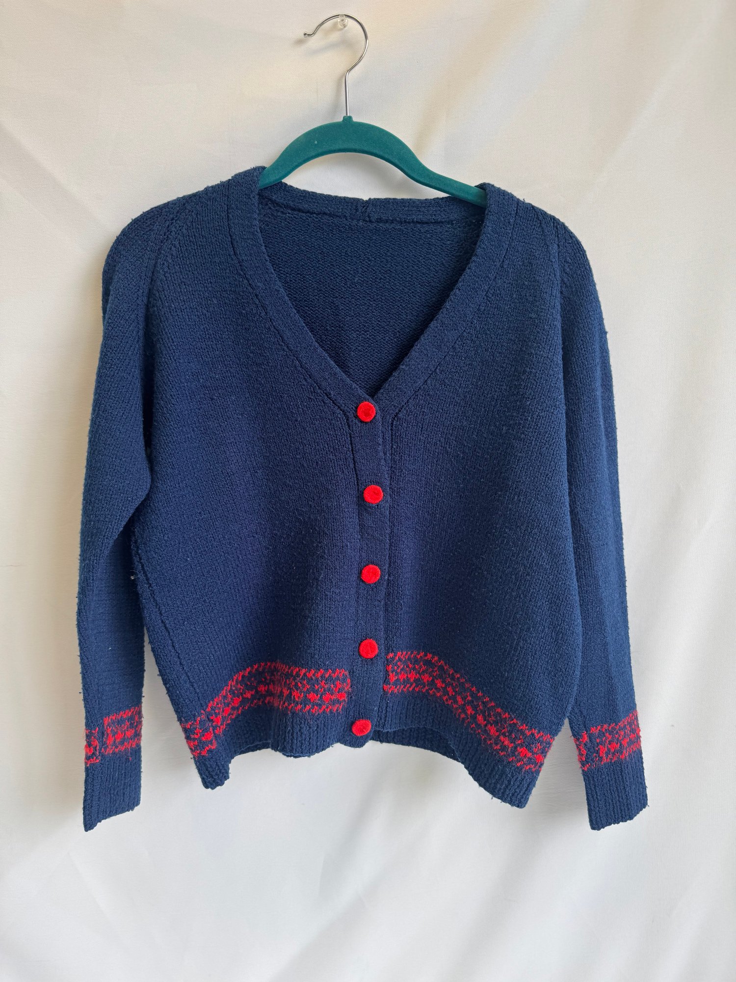 3. Unknown brand, blue and red button cardigan