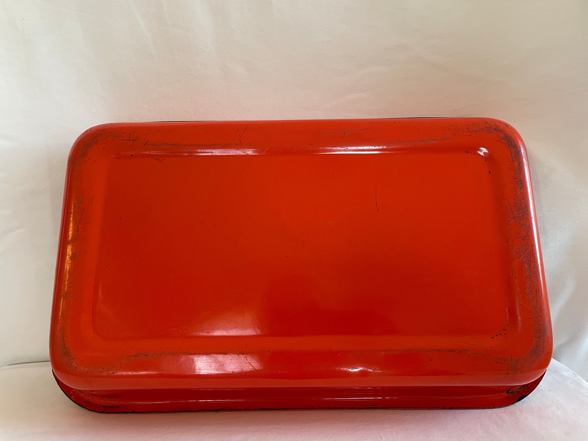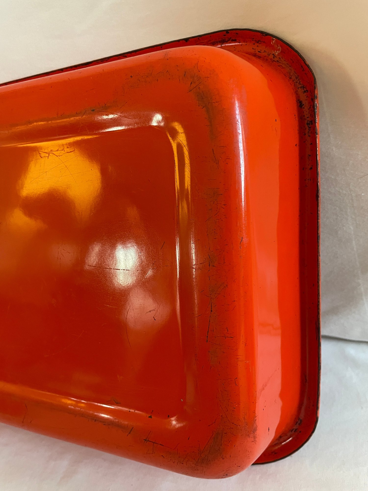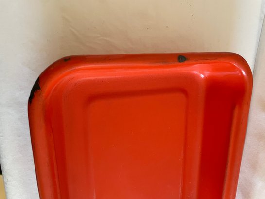 Orange enamel tray 16 1/2” x 10” x 3”