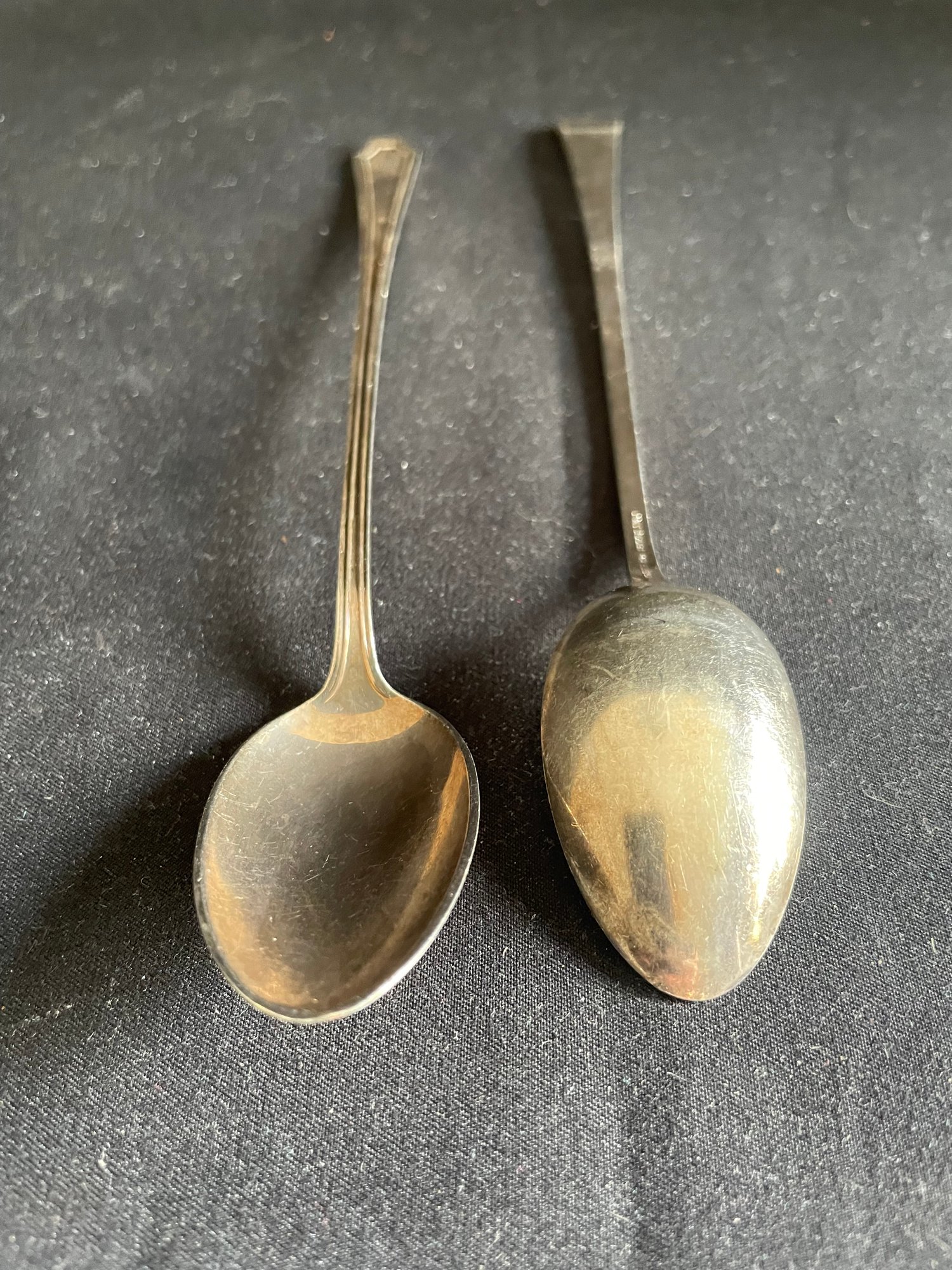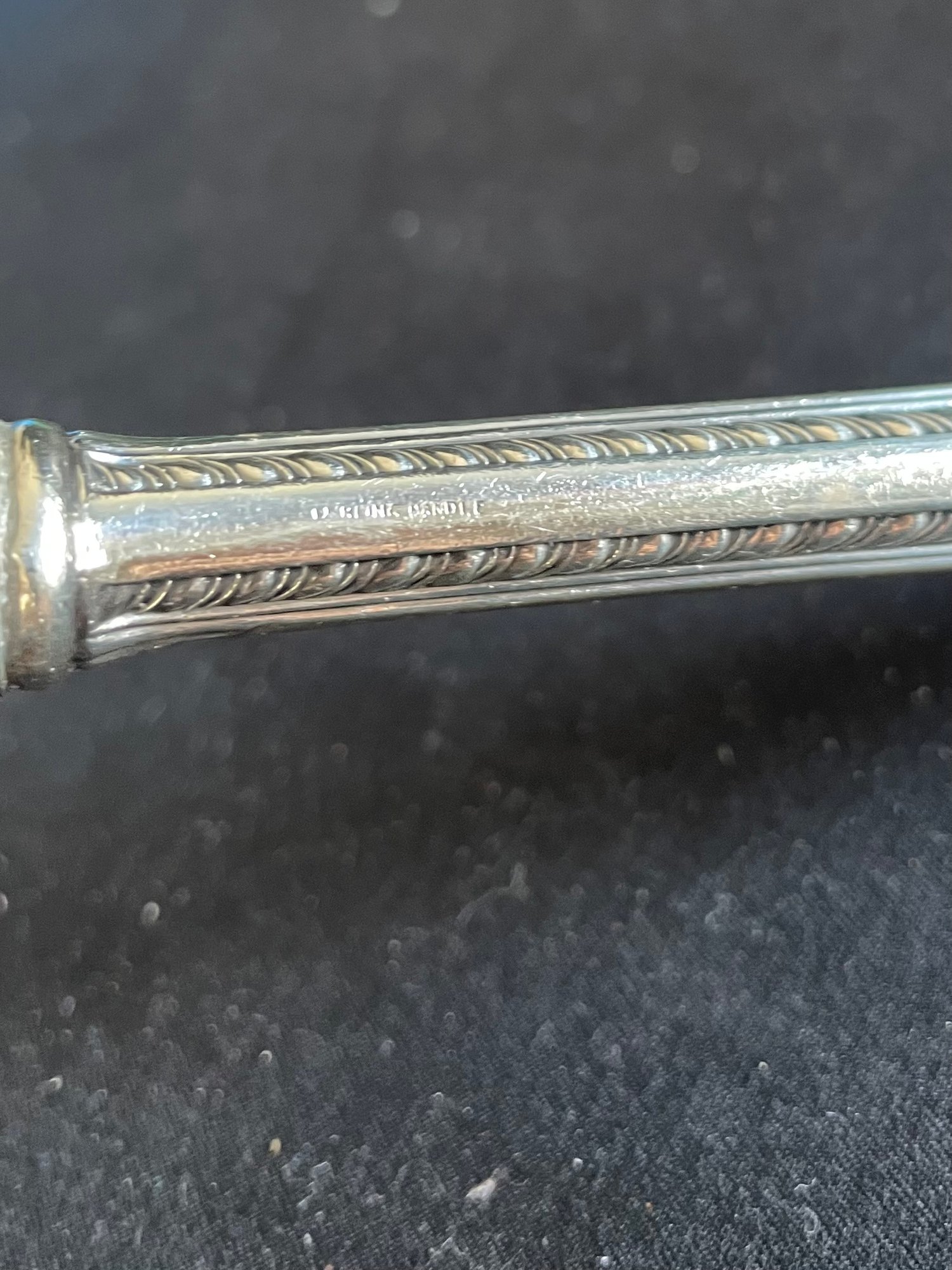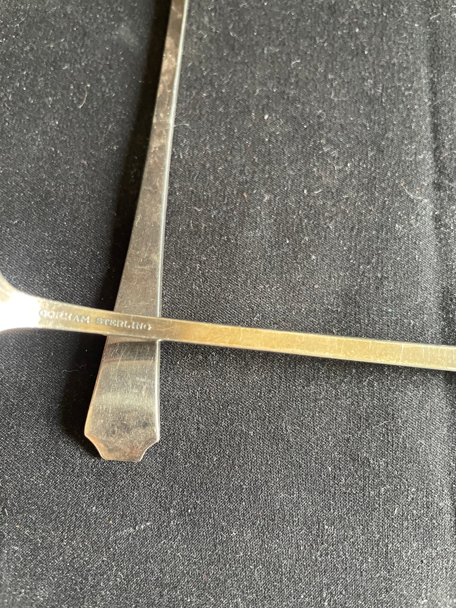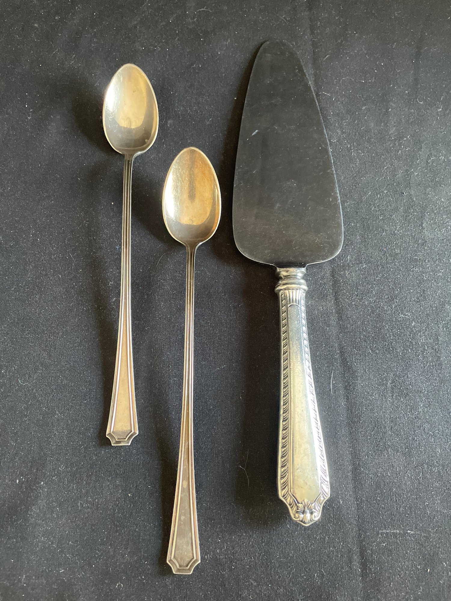 2 Gorham Sterling spoons, Reed & Barton stainless cake knife with sterling handle