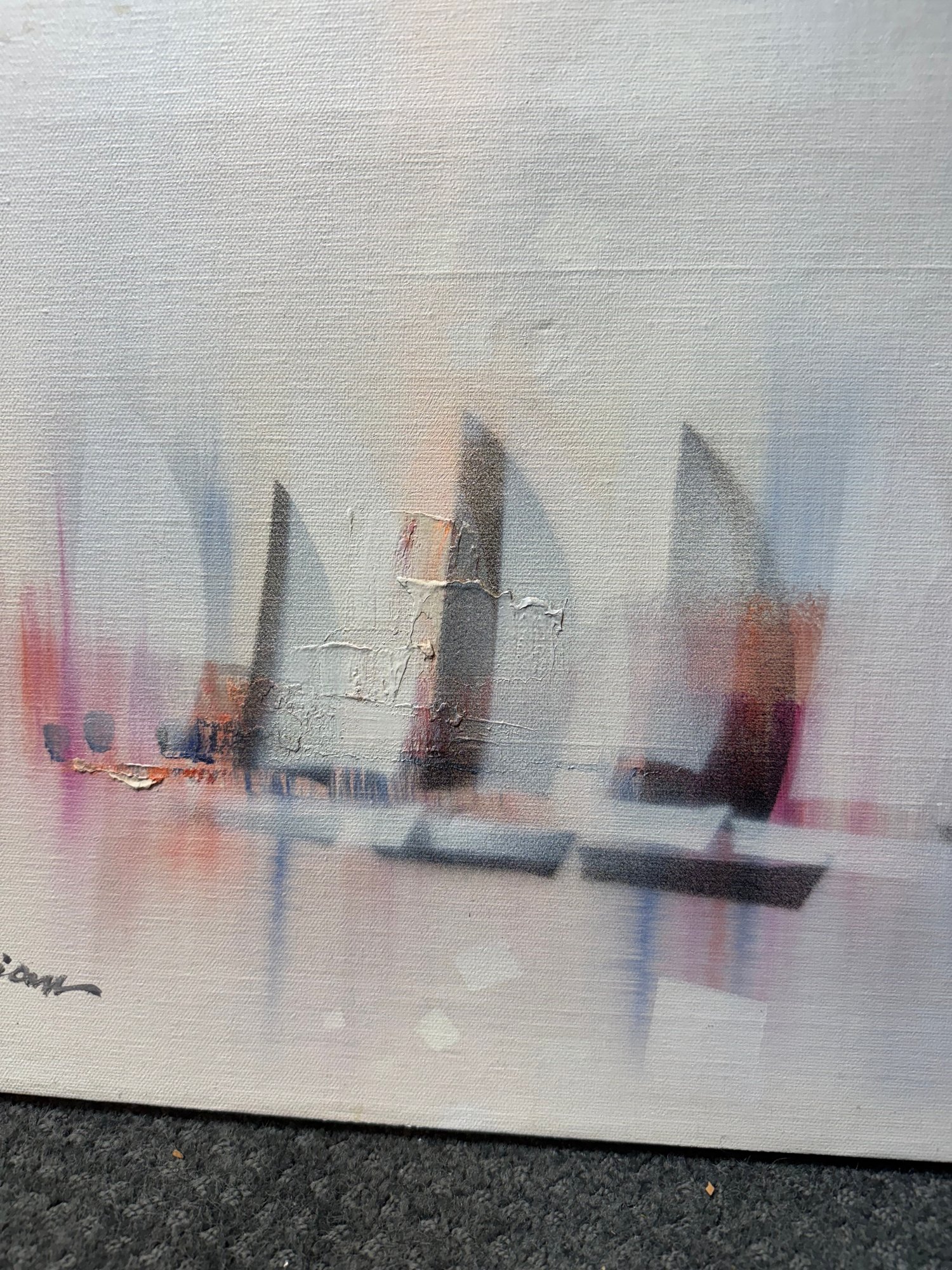 Original Signed Seascape Sailing Ship Painting On Canvas