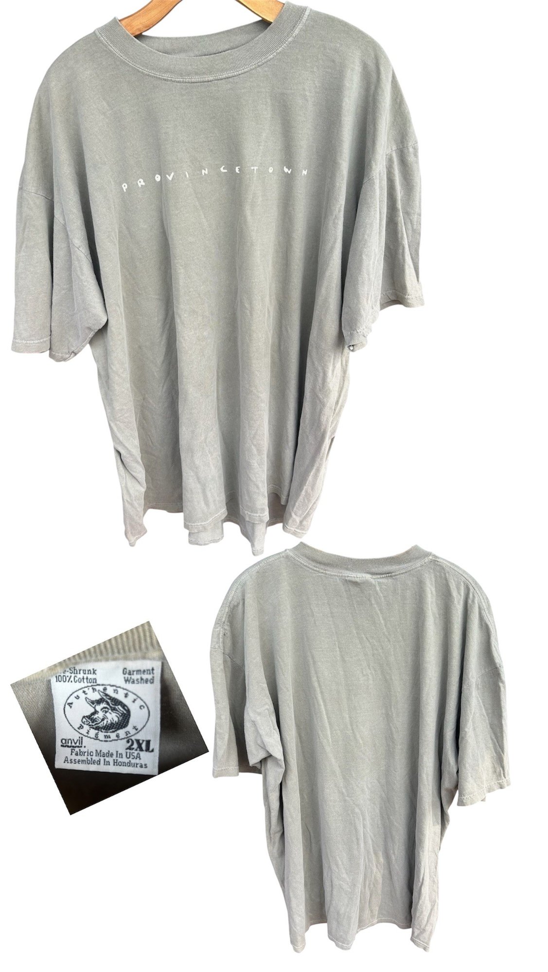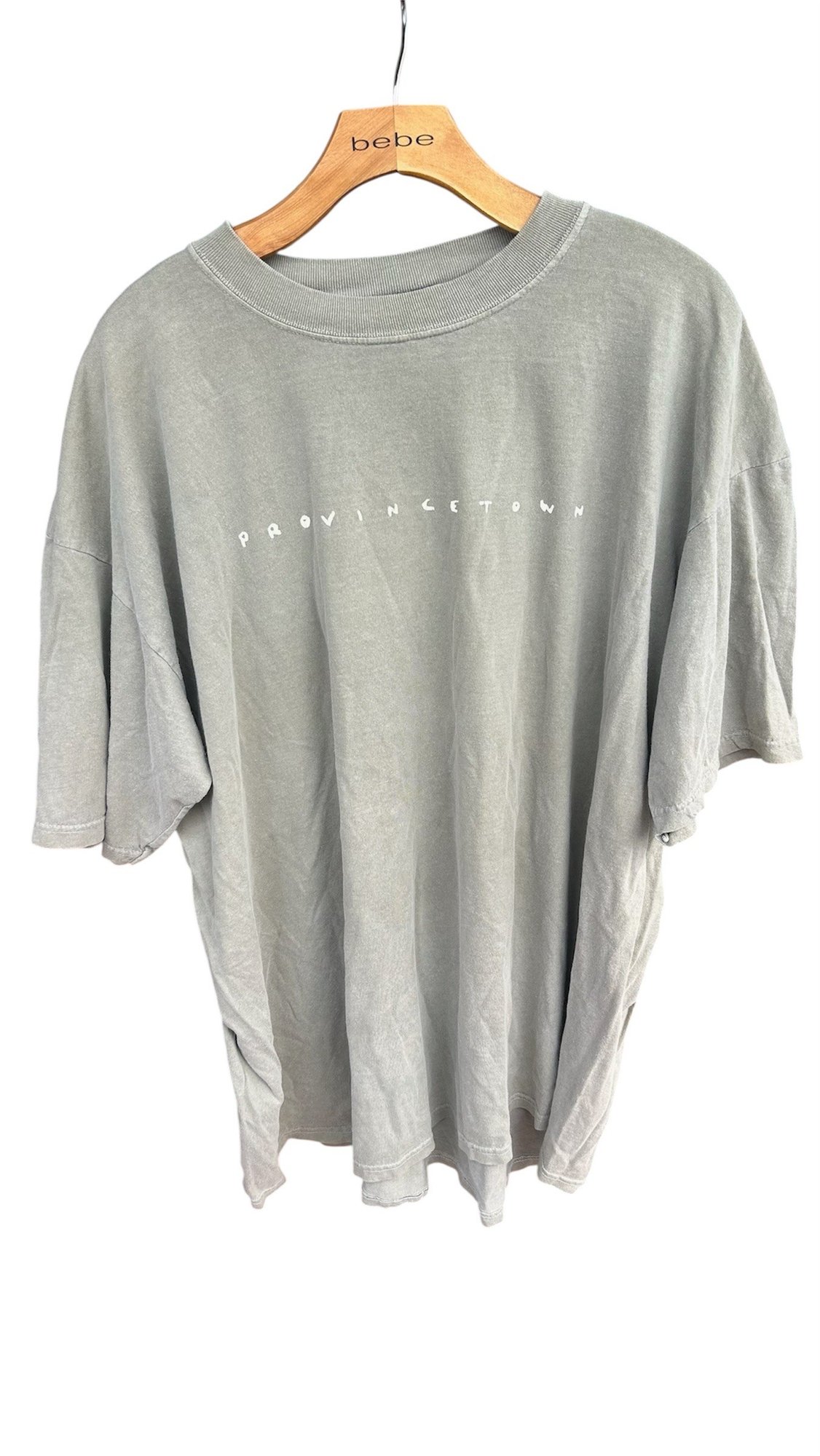 Faded gray short sleeve tee with simple “Provincetown” lettering. Soft pre-shrunk cotton with an oversized fit, size 2xl.