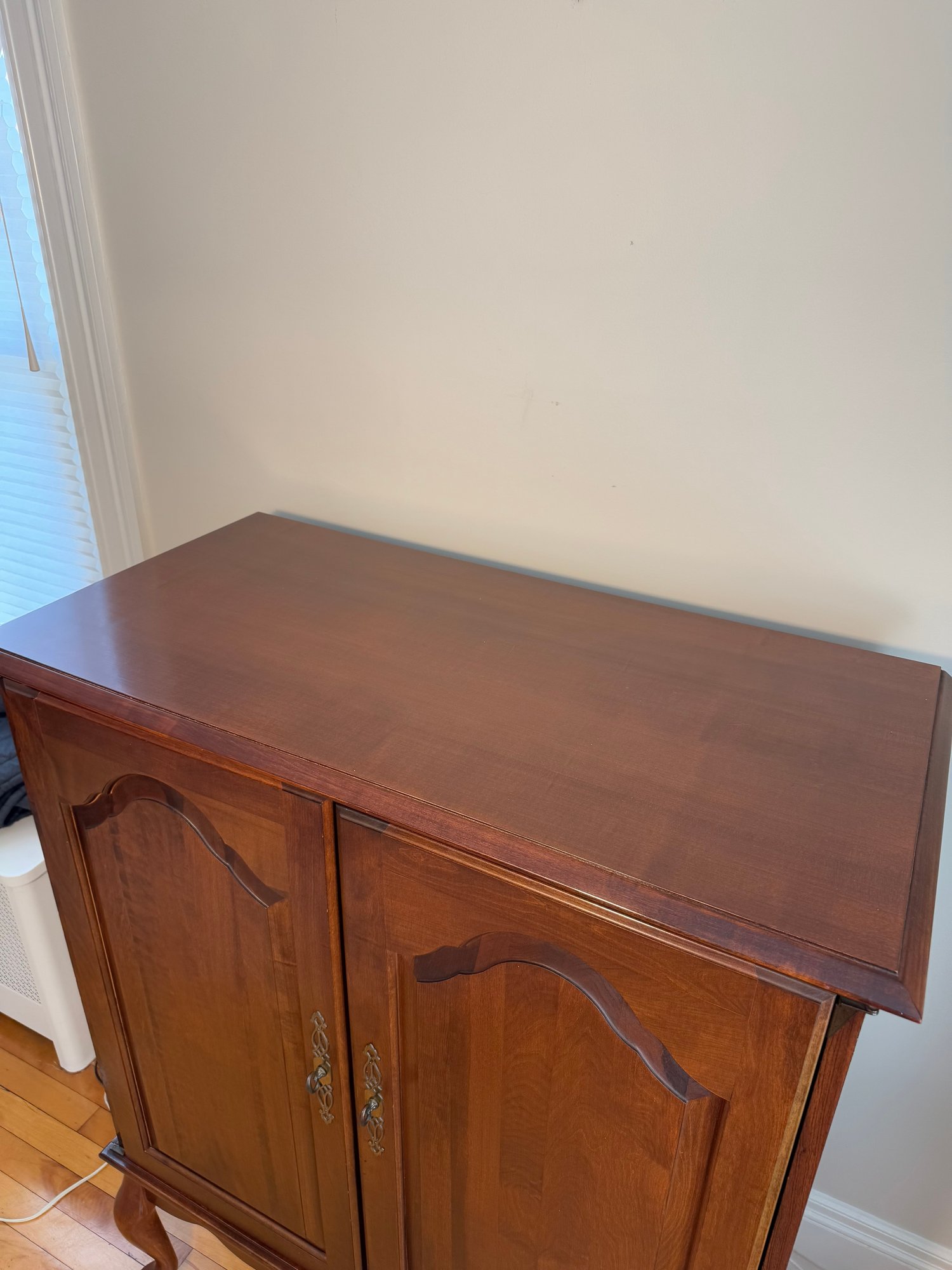 the inside has some small areas of wear on the wood, overall good shape