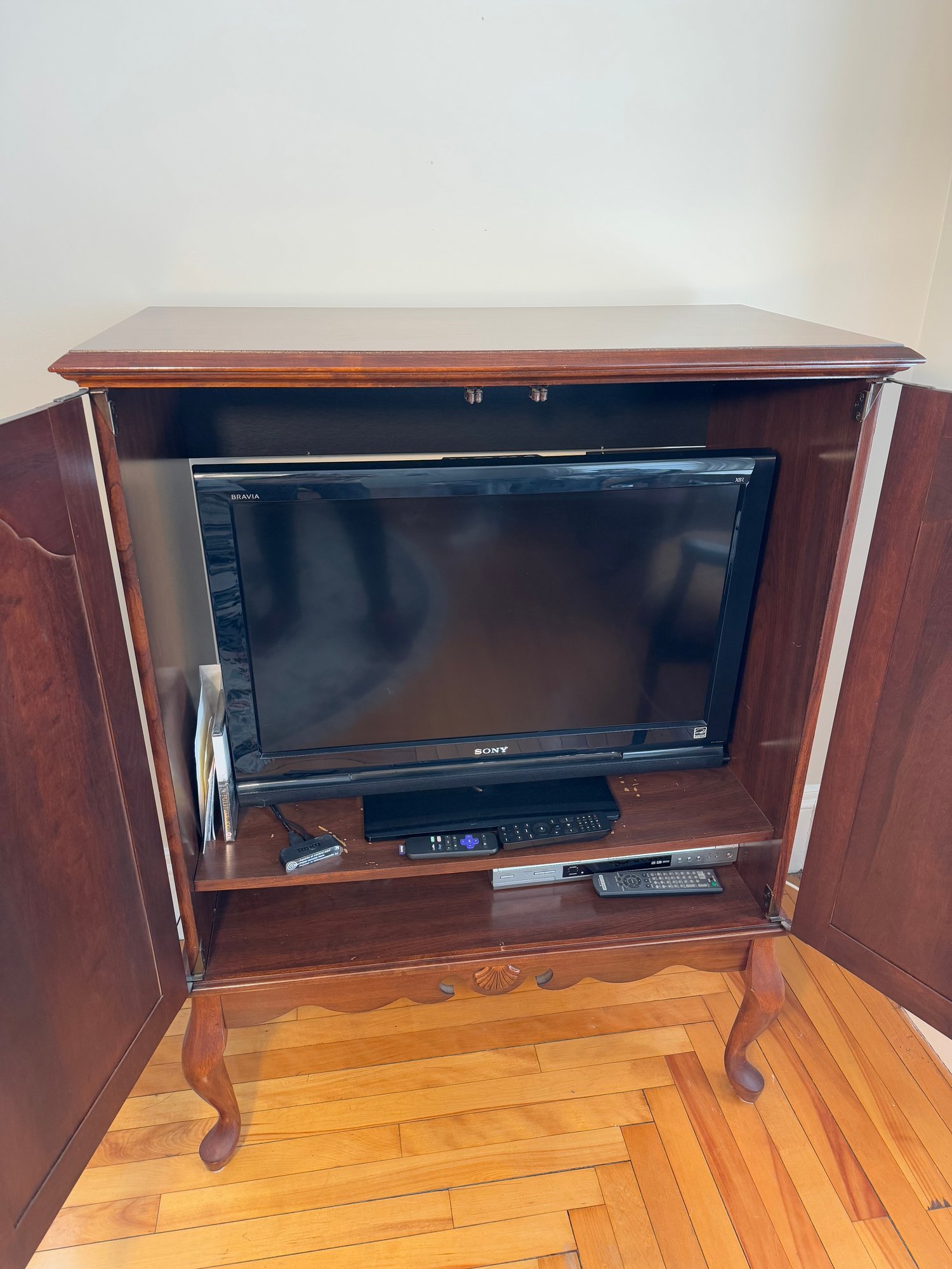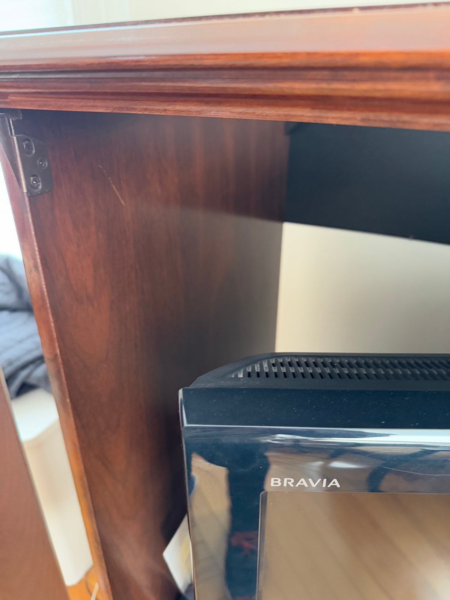 cabinet inside is approximately 33.5” long for reference of the size TV it can hold