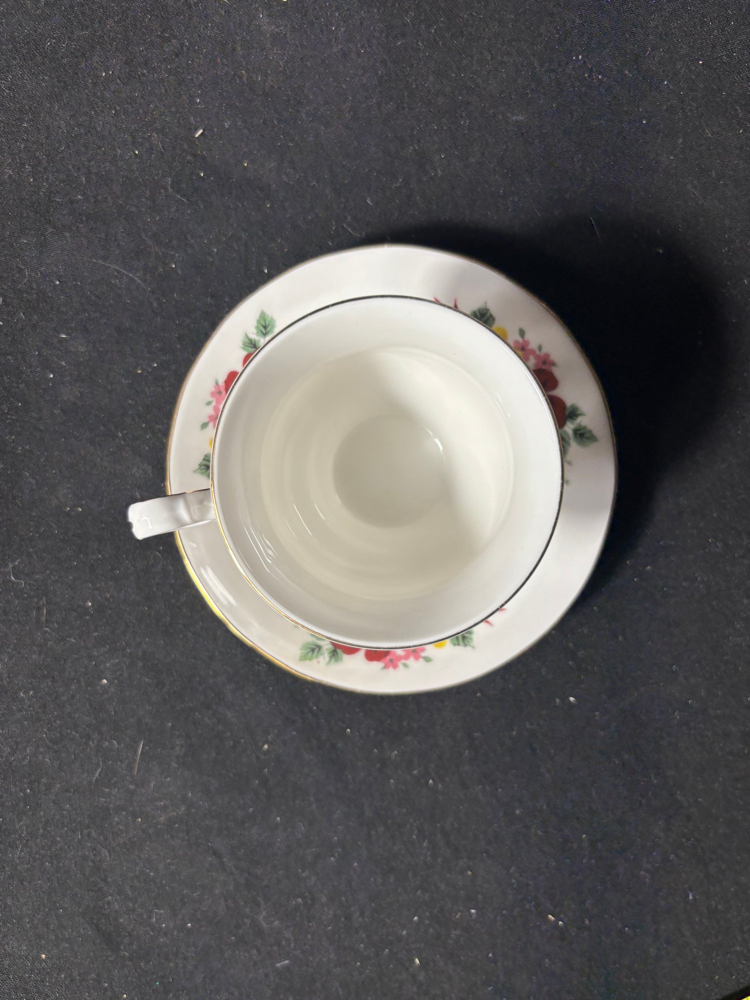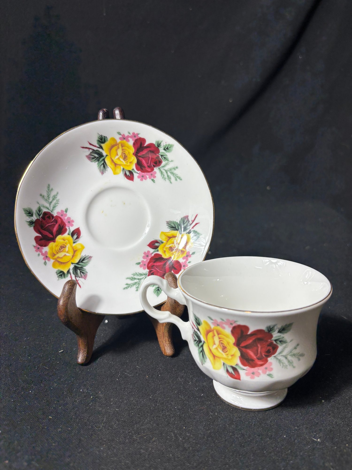 QueenAnne Yellow And Red Rose Tea Cup And Saucer