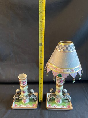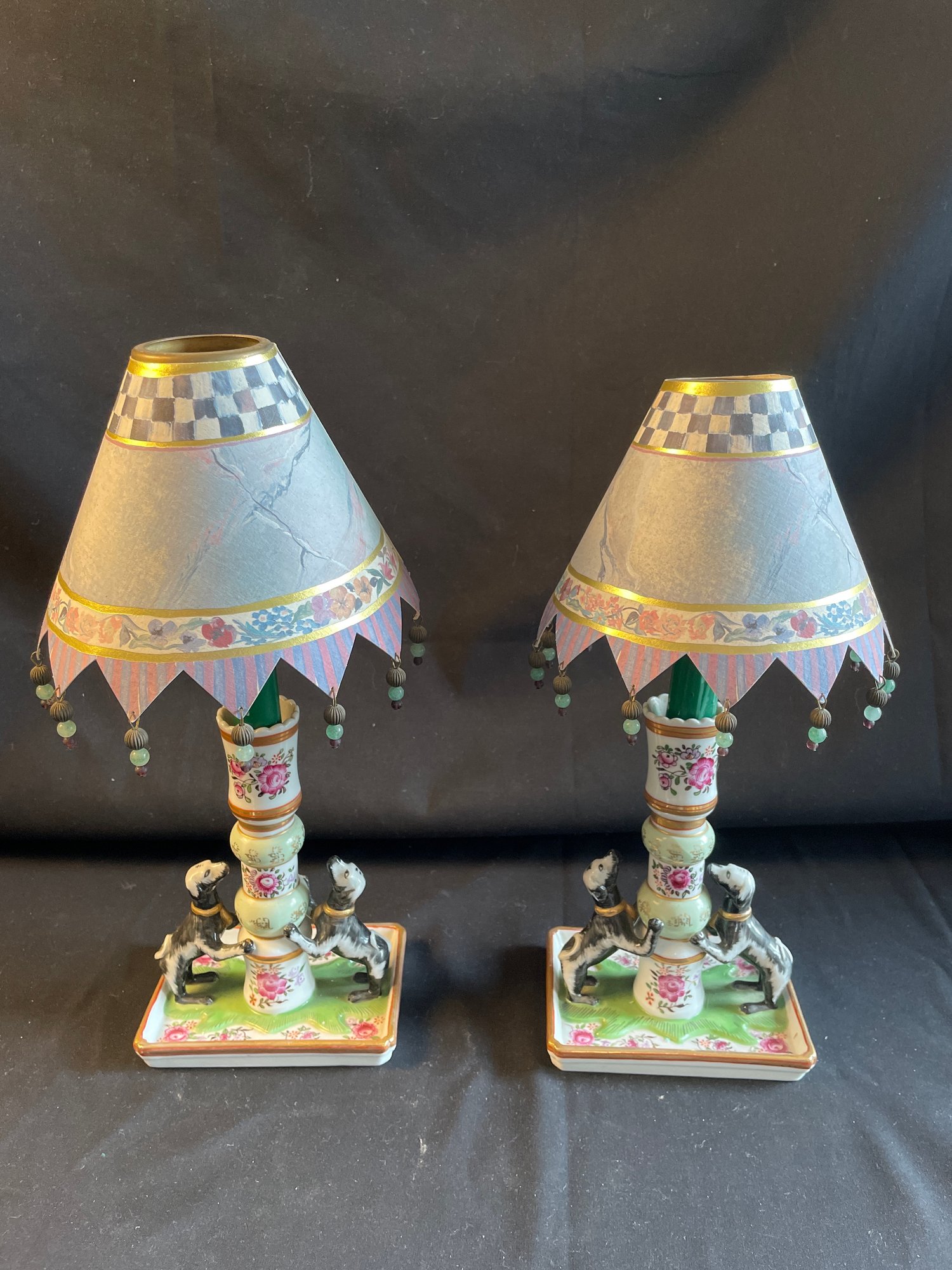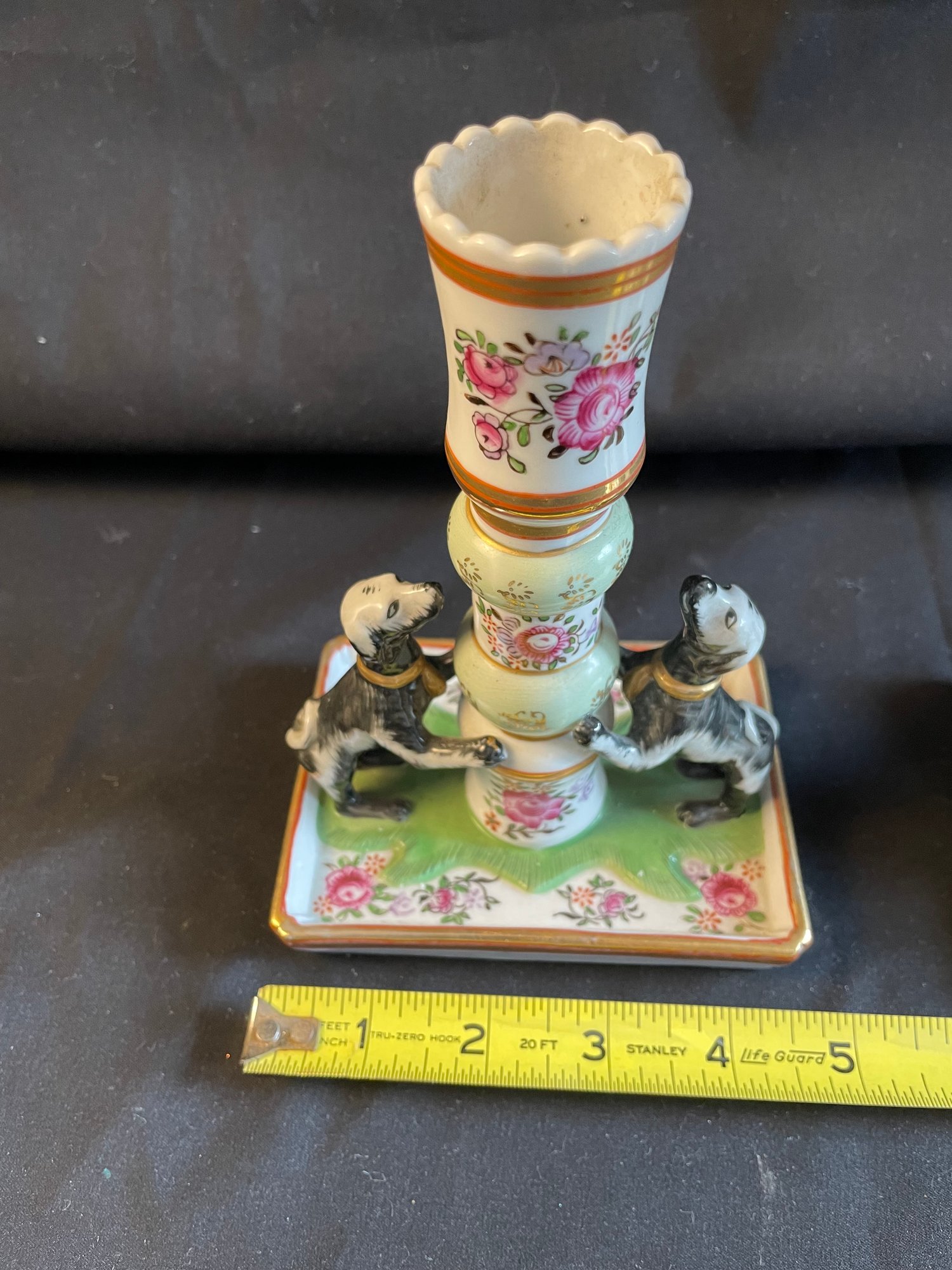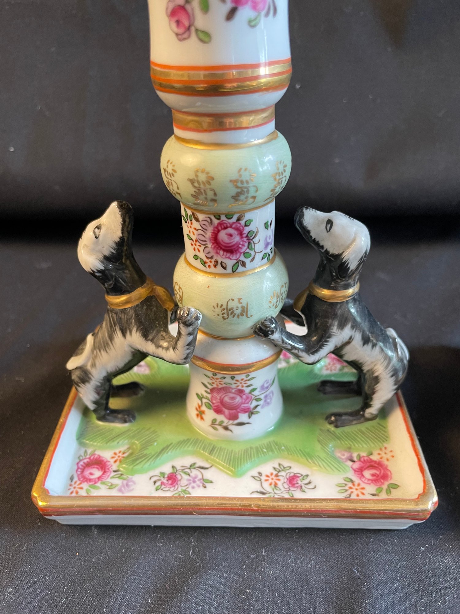 Pr Of Porcelain Candlesticks Dog Motif (L)