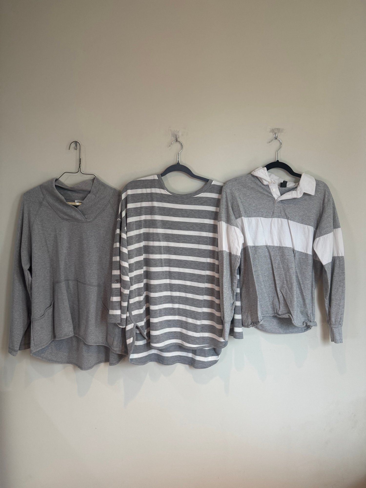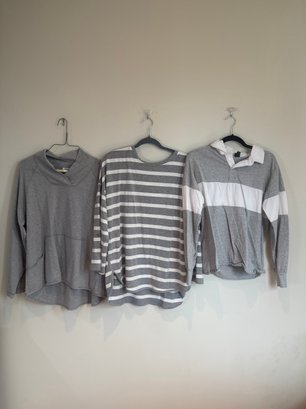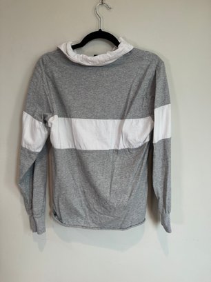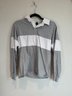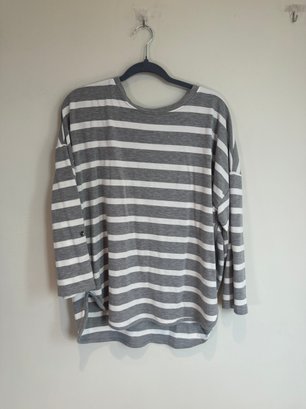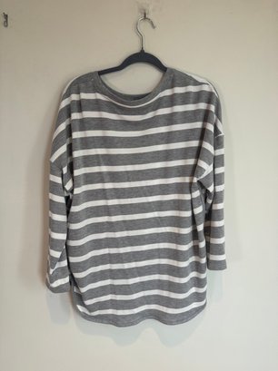 Style: gray and white striped long sleeve shirt